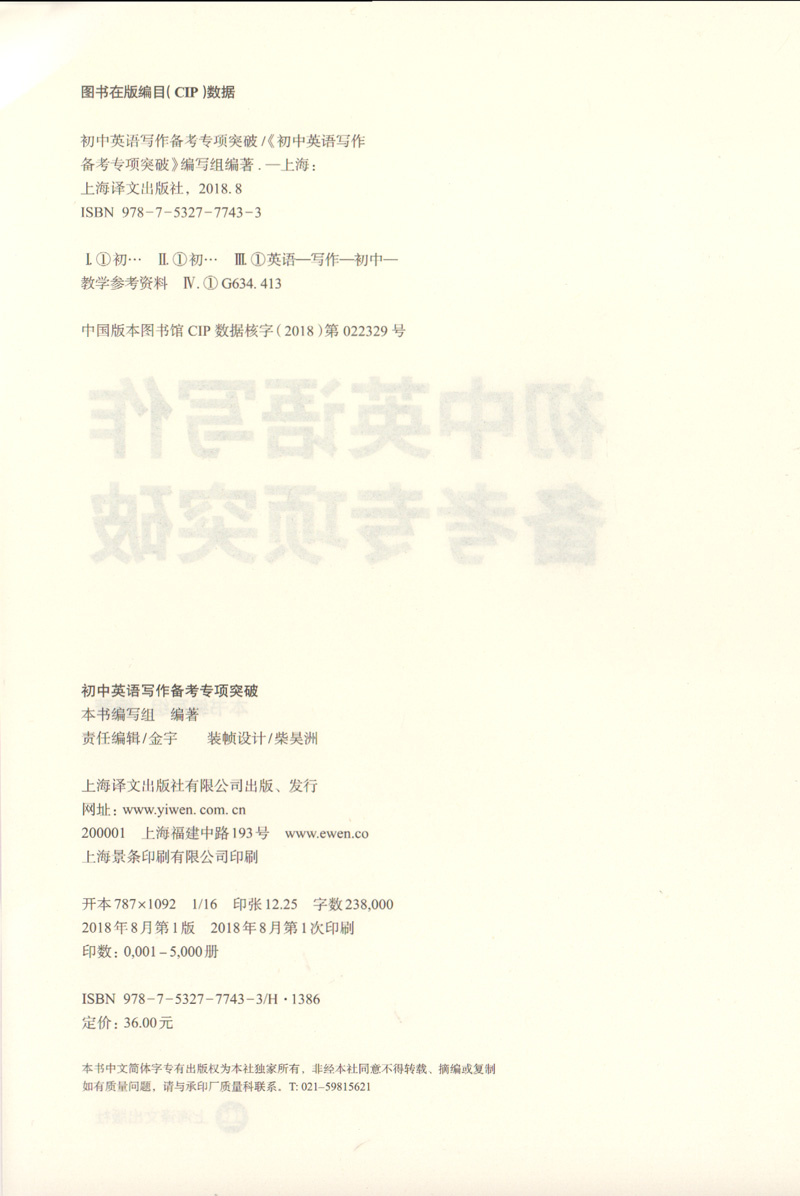 正版现货 初中英语写作备考专项突破 中考英语作文 上海译文出版社 初中英语写作大全 初中生优秀作文选冲刺2019中考高分作文书籍