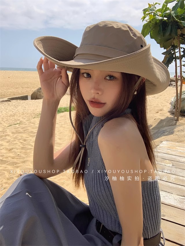 【西部牛仔帽子女夏季大檐】日系渔夫帽,防晒遮阳户外海边旅游登山帽,让我们一起戴上它,探索大自然的奥秘吧!