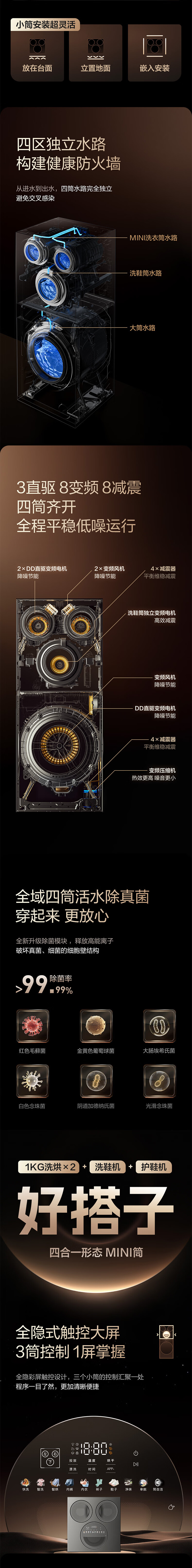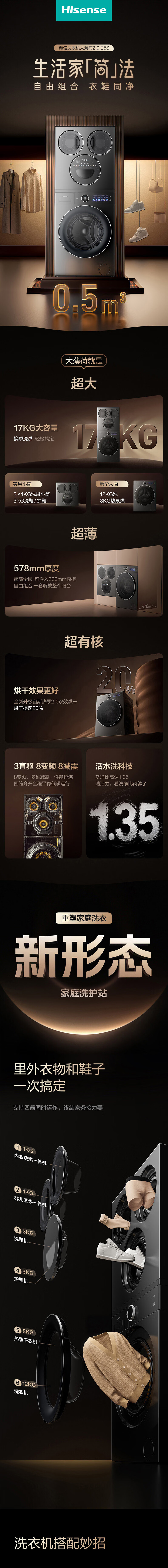 海信(Hisense)洗衣机大薄荷2.0E5S热泵洗烘多筒洗衣洗鞋机 分区洗全家筒懒人全自动WH120E5S+WV50G以旧换新补贴
