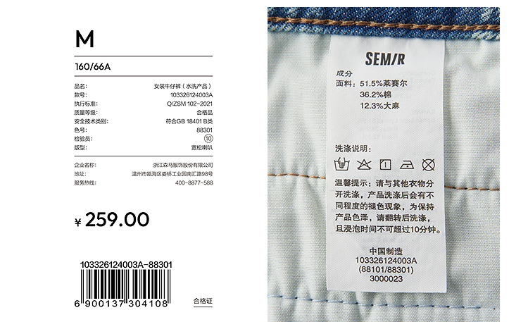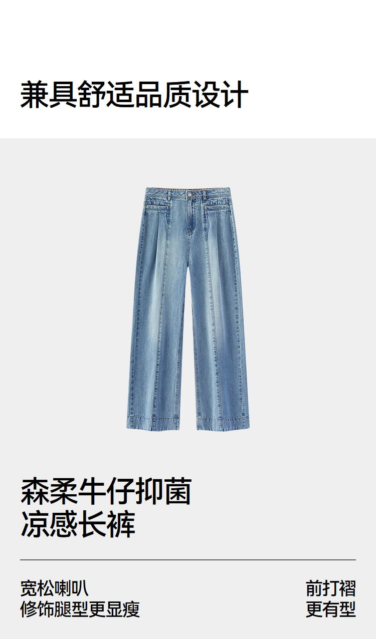 森柔|商场同款森马牛仔裤女夏季凉感抑菌宽松喇叭裤2026新款长裤