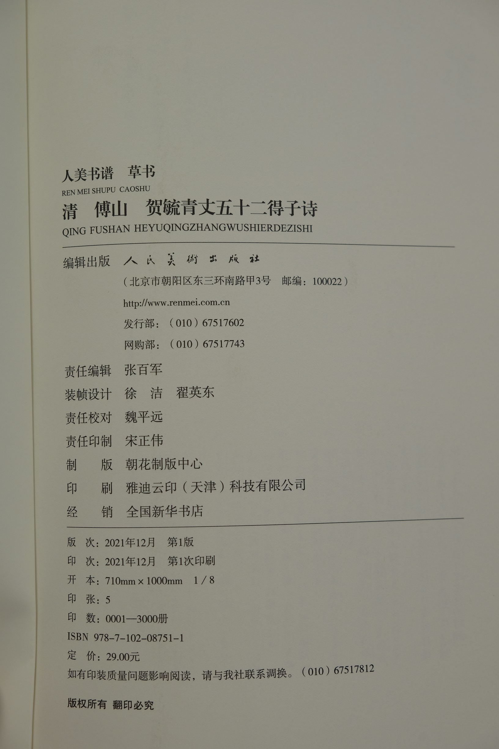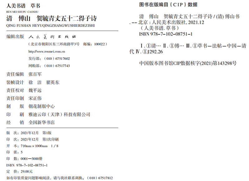人美书谱 草书 清 傅山 贺毓青丈五十二得子诗【现货包邮】RM0061