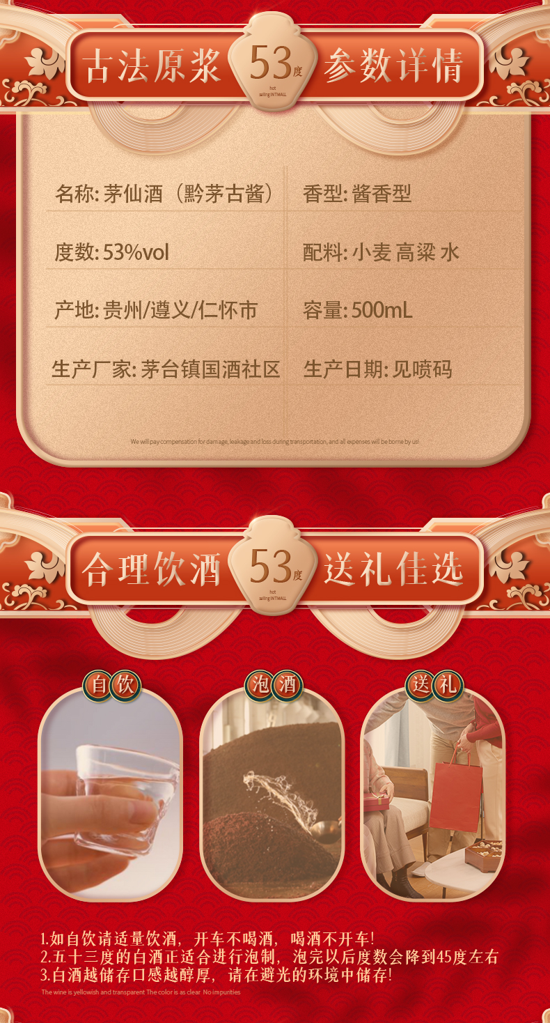 疯抢中!!贵州茅台集团经典53°酱香白酒【茅仙酒—黔茅古酱】500ml