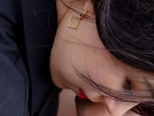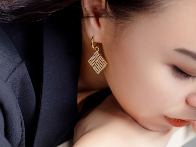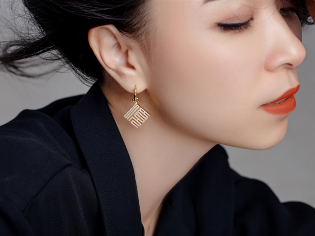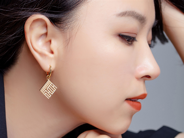 这款耳饰设计别致,是当下最潮酷的字符款设计,佩戴起来鲜明个性立现,但因中和了篆书的复古和文化感,完全不会过分浮夸。