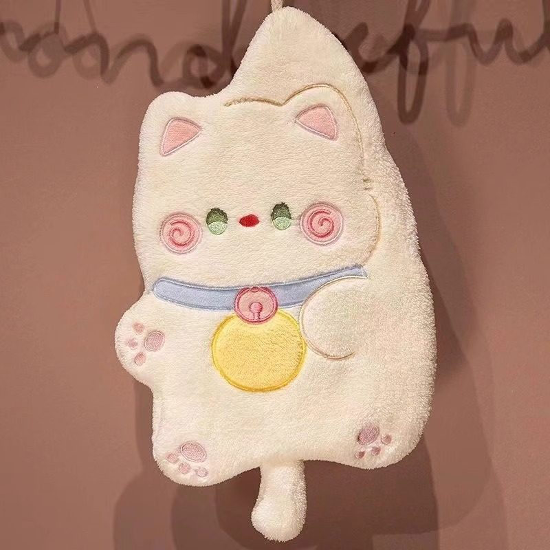 手帕速干加厚挂式不掉卡通绒强小方巾招财猫手巾可爱擦珊瑚吸水毛