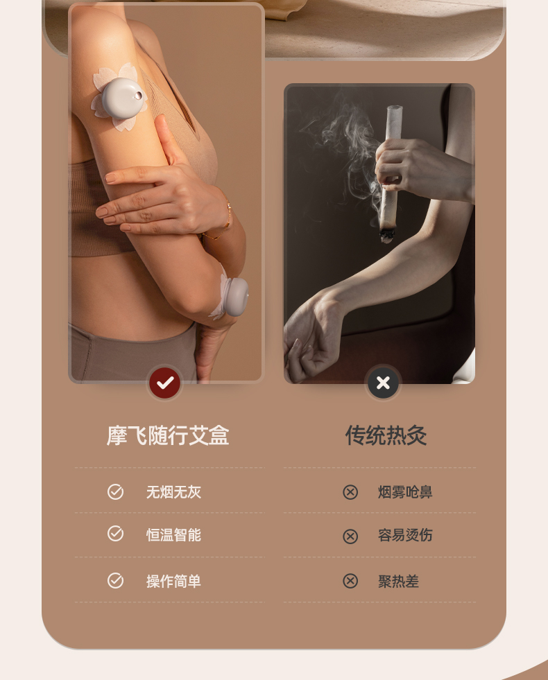 摩飞随行艾盒随身灸家用便携艾条柱全身无烟艾贴颈部按摩仪熏蒸仪
