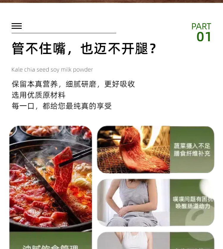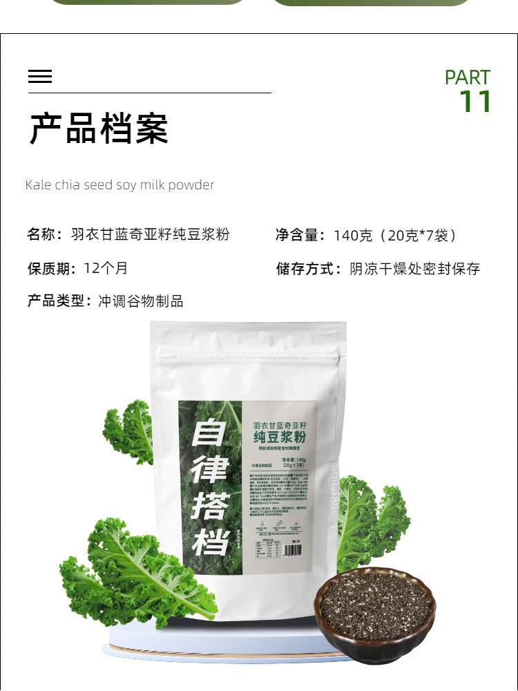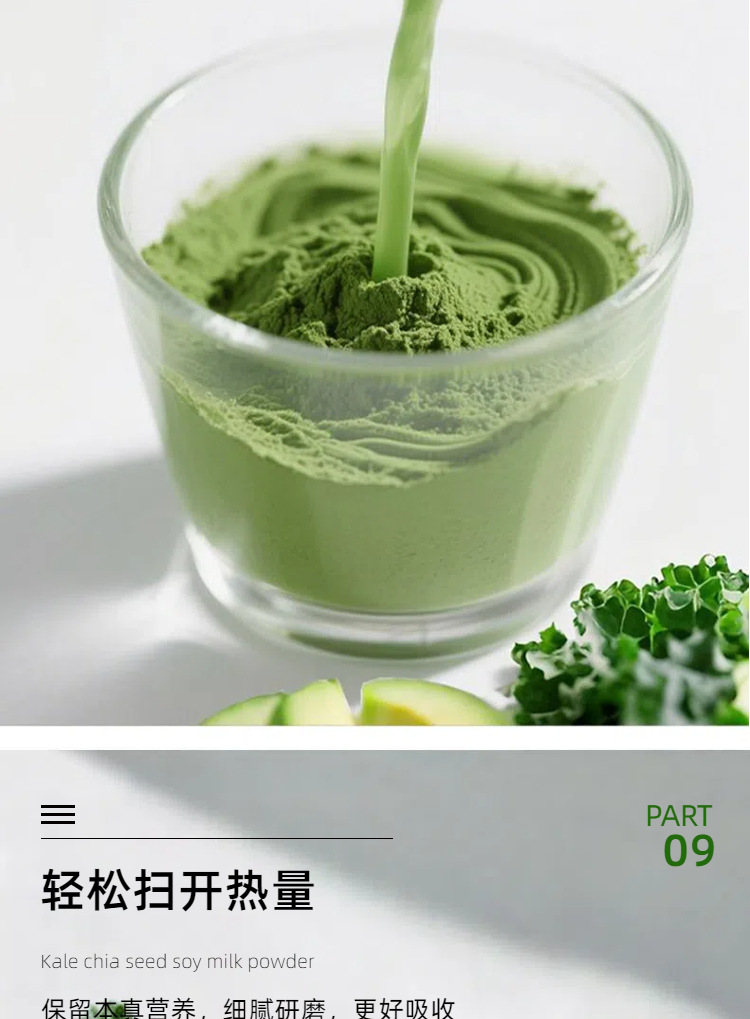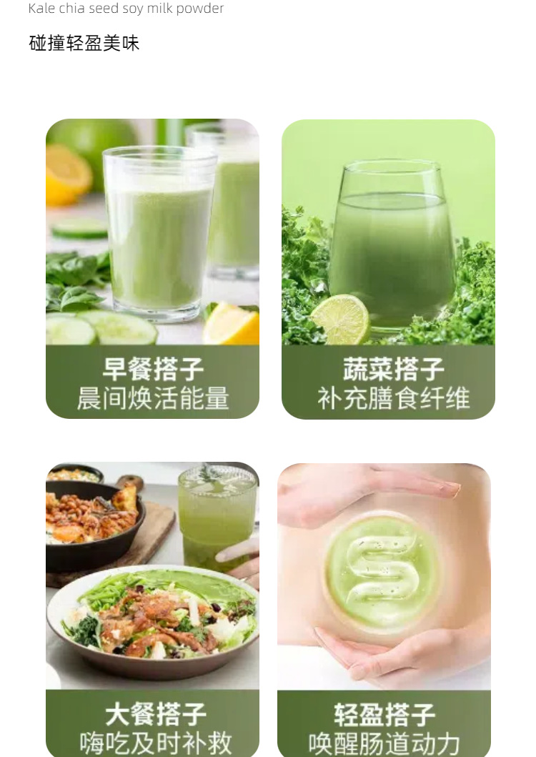 【羽衣甘蓝奇亚籽纯豆浆粉】官方正品植物浓缩,轻负担高营养,早餐伴侣随身携带,一口轻盈自然清爽方便袋装代餐冲饮140gQQ