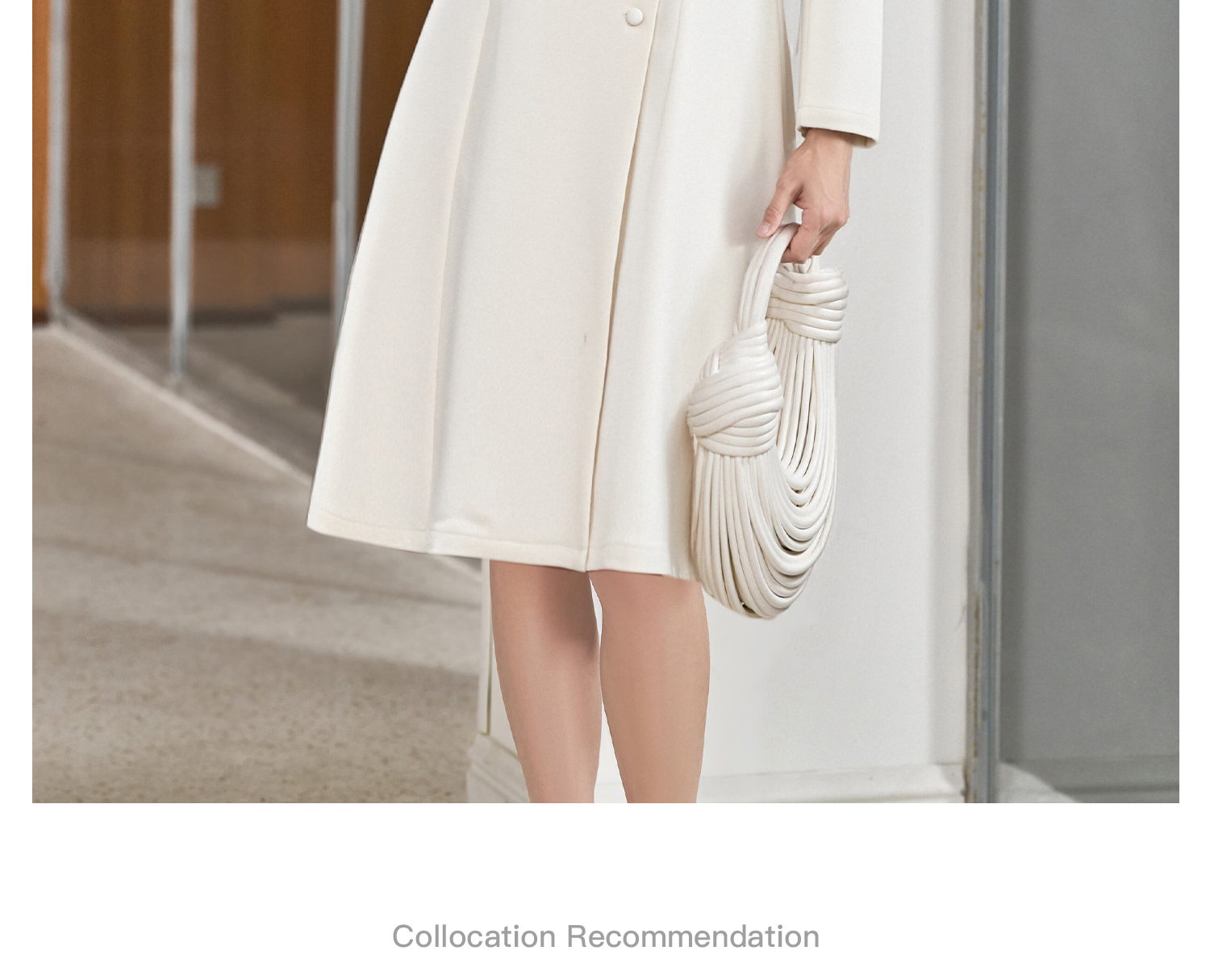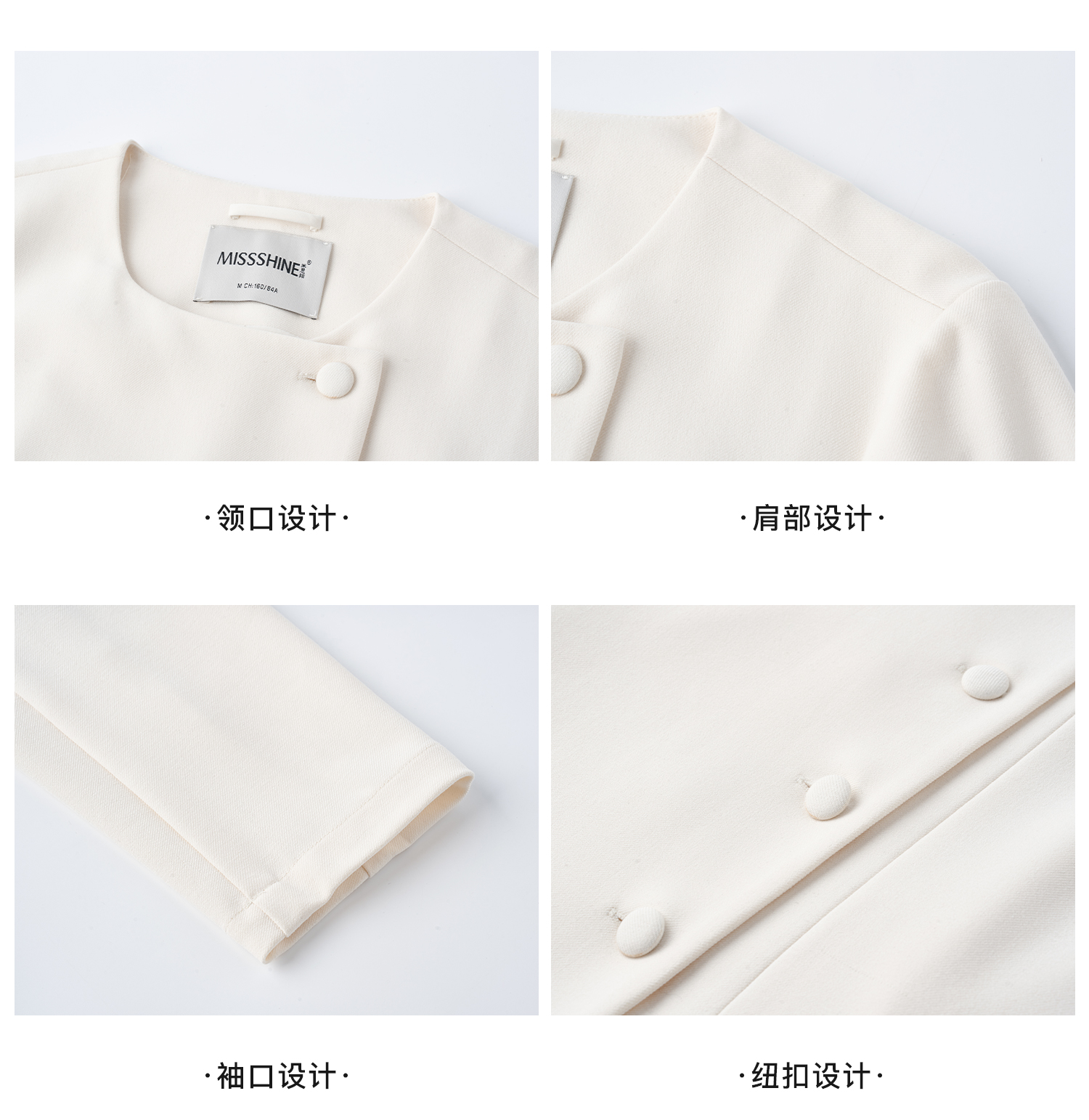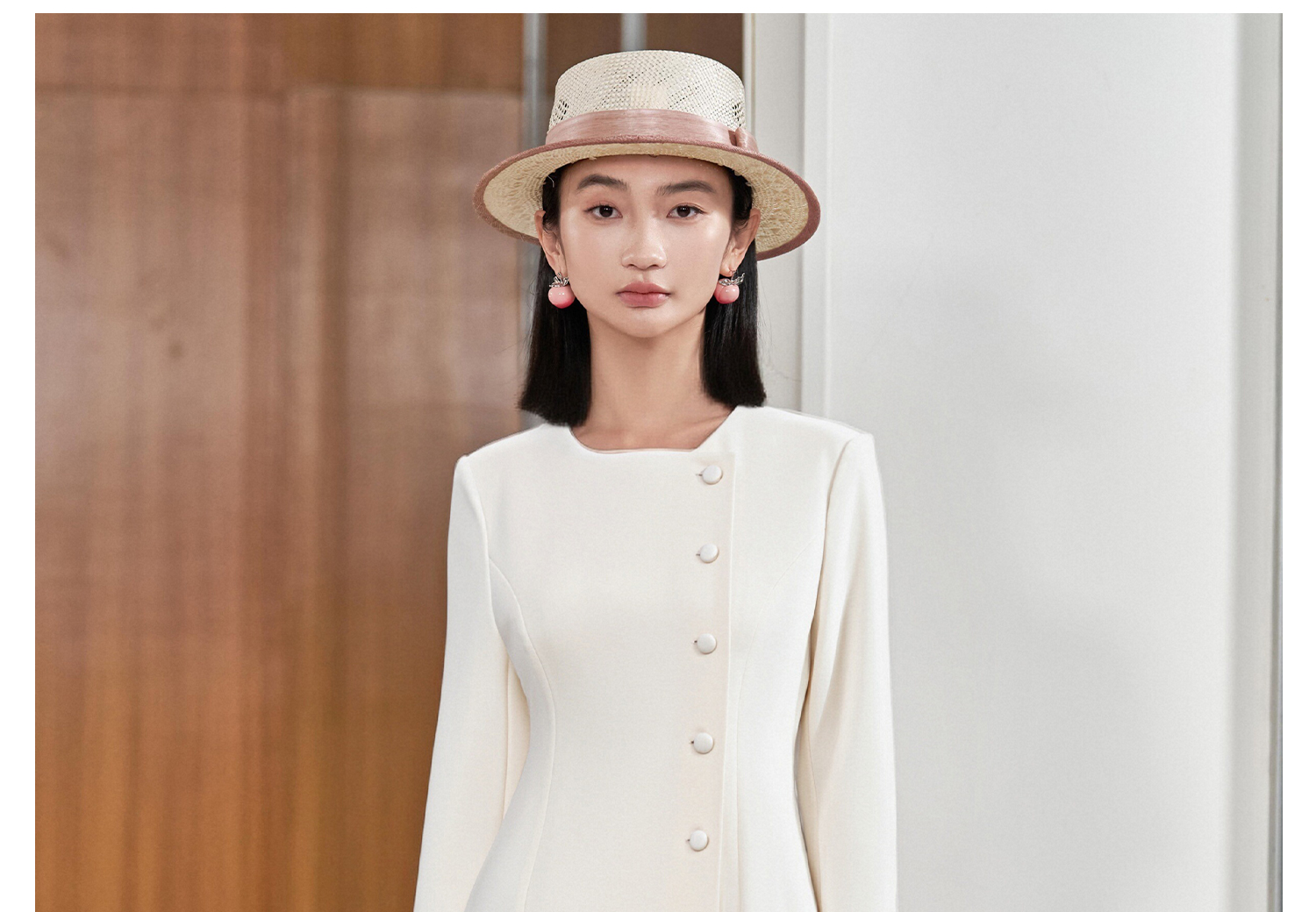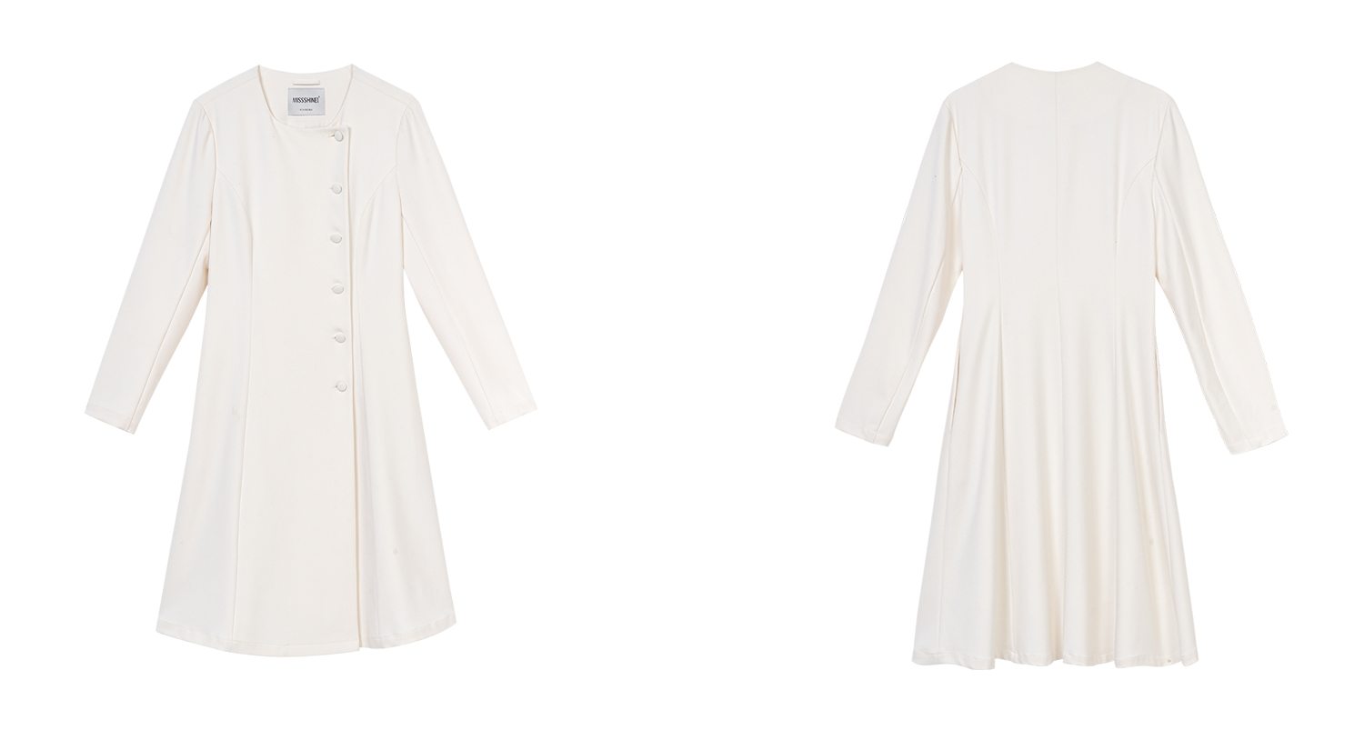 米思阳2026春季新款通勤优雅风收腰显瘦A字连衣裙圆领长袖不规则排扣裙子女4550