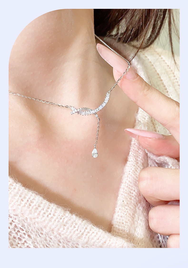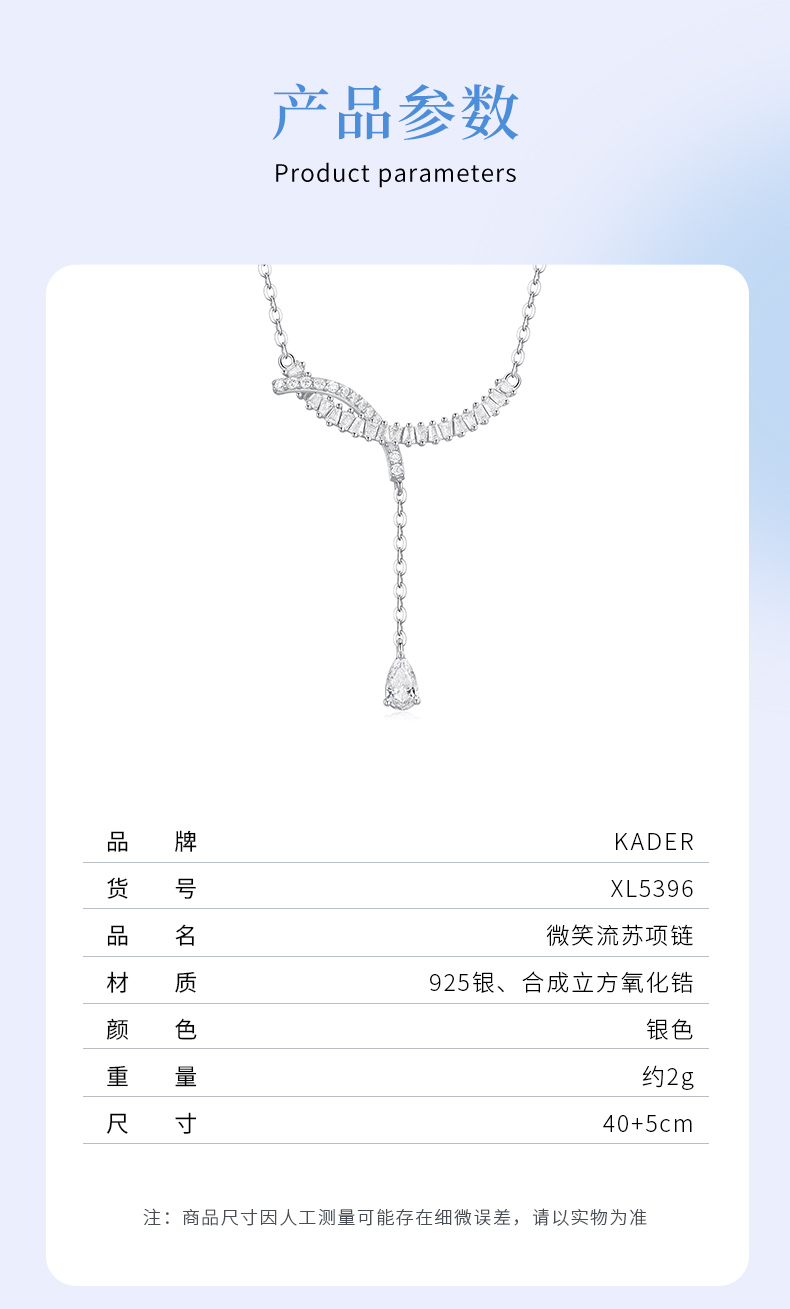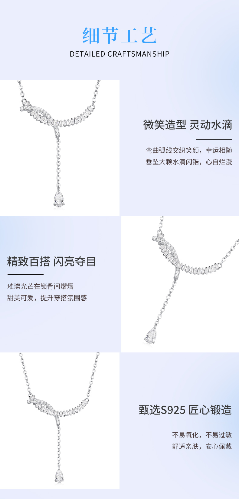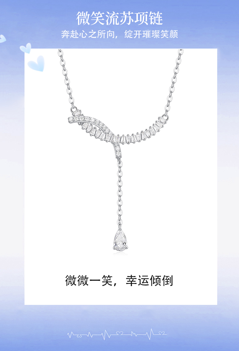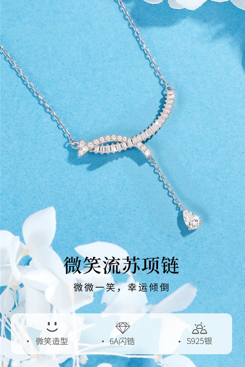 卡蒂罗KADER 微笑流苏项链 925银精致轻奢灵动流苏水滴小众设计高级氛围感锁骨链 极简日常简约大方
