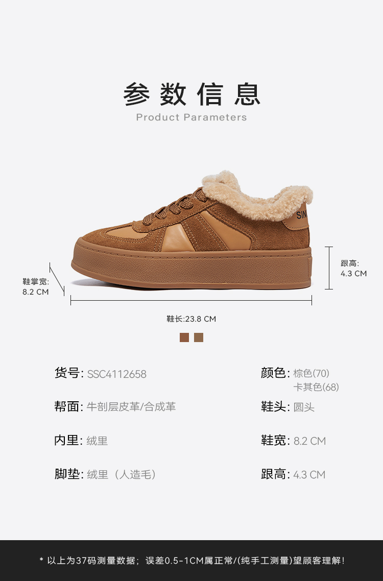 星期六休闲百搭复古厚底加绒德训鞋SSC4112658