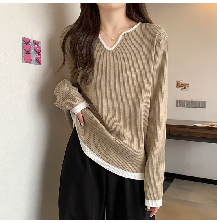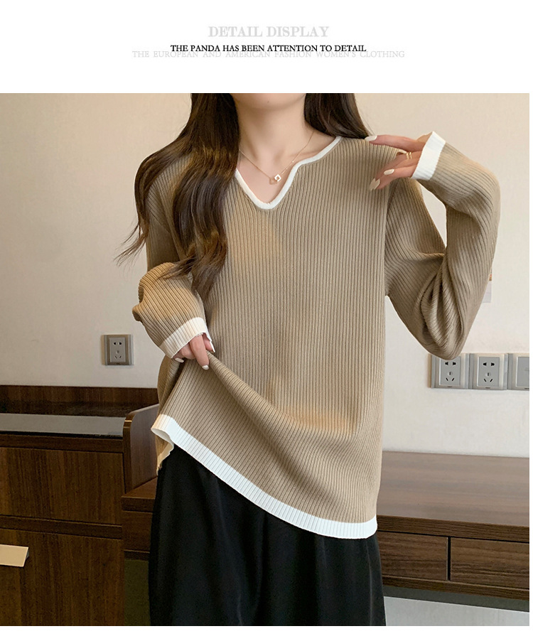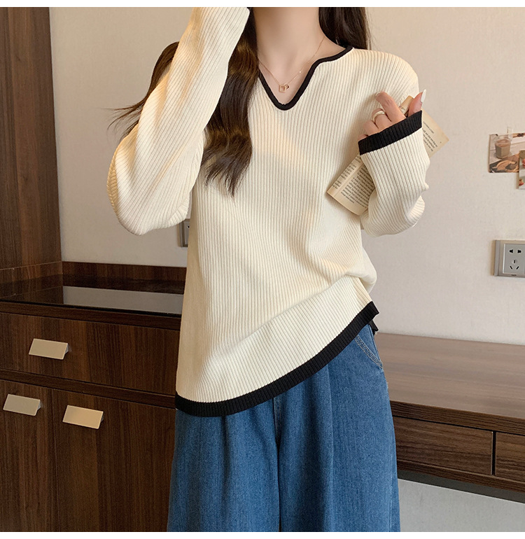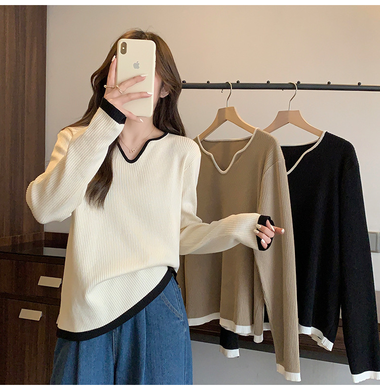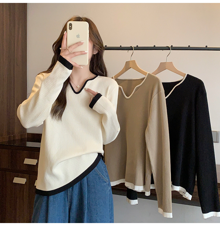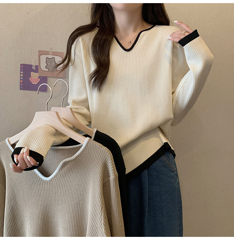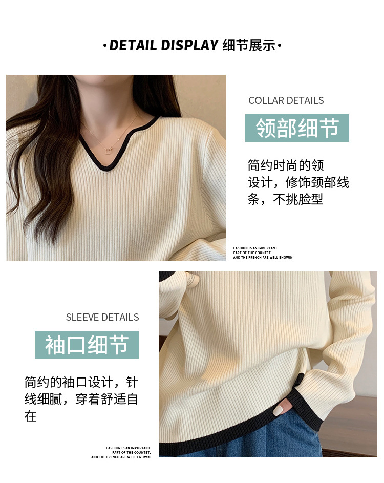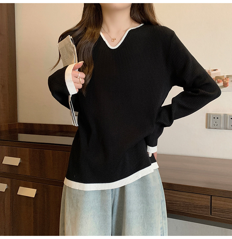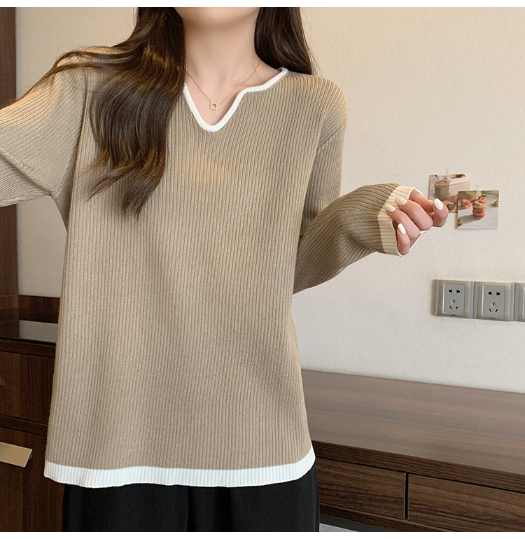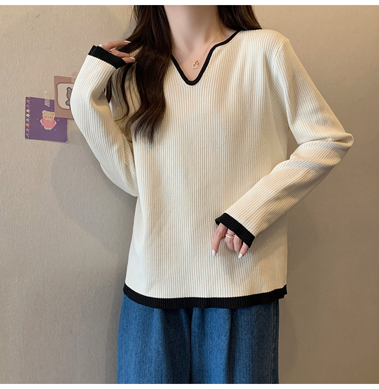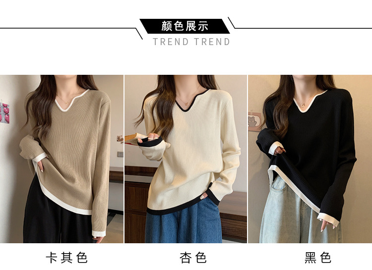 大码女装2025春装新款洋气V领针织衫胖mm宽松百搭毛衣打底衫
