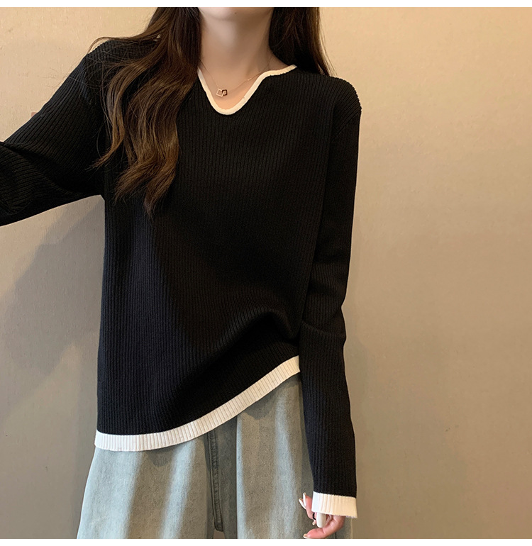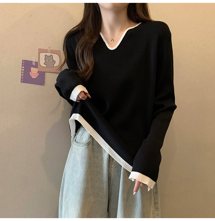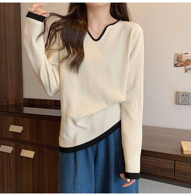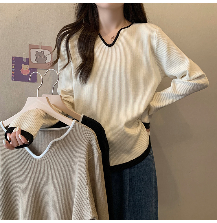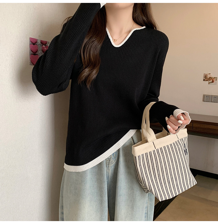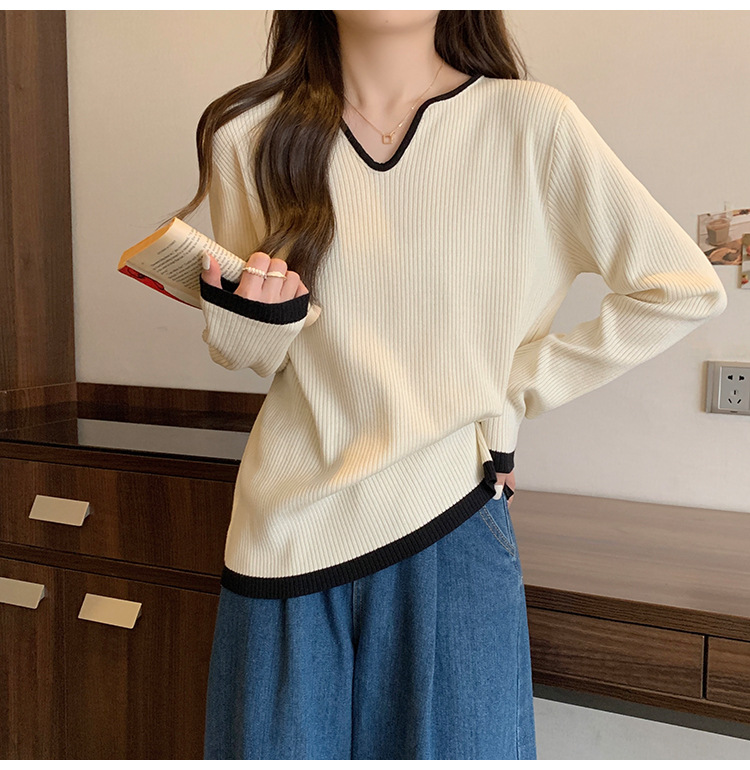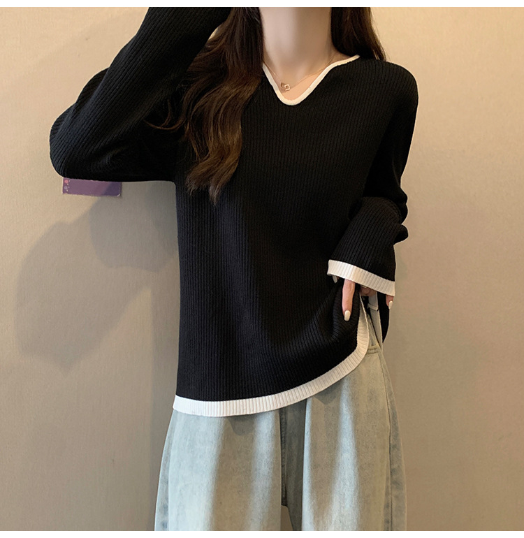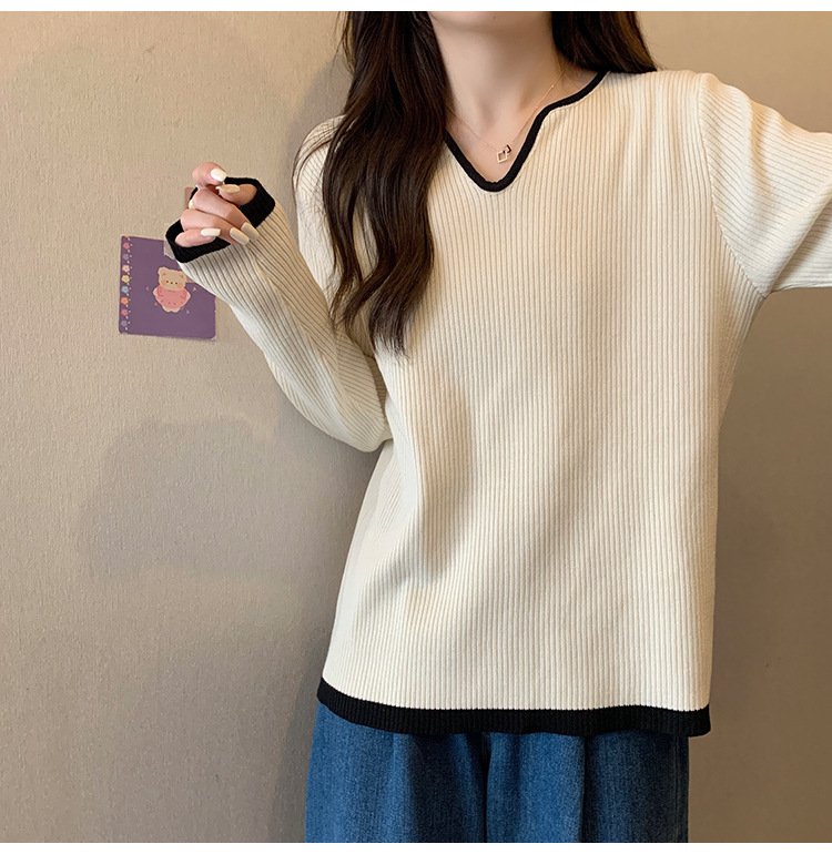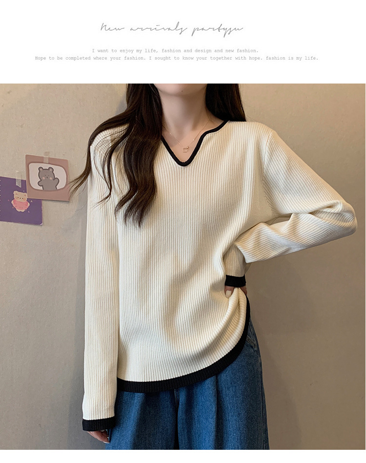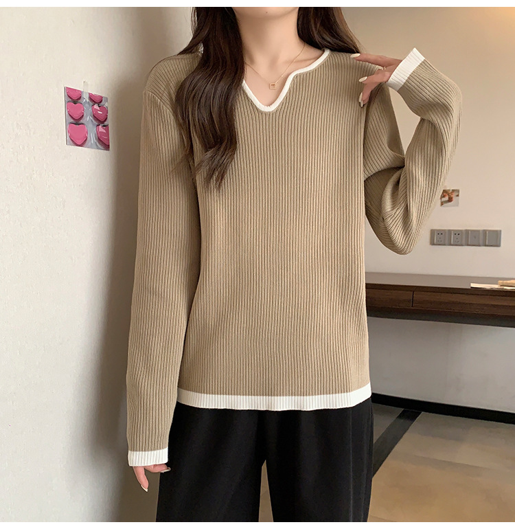 大码女装2025春装新款洋气V领针织衫胖mm宽松百搭毛衣打底衫