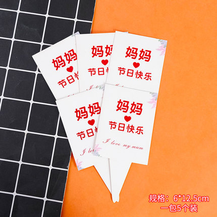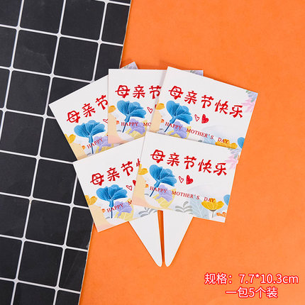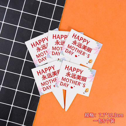 插件 母亲节系列 方形插卡 5支 感恩母亲节日快乐妈妈我爱你永远美丽插卡