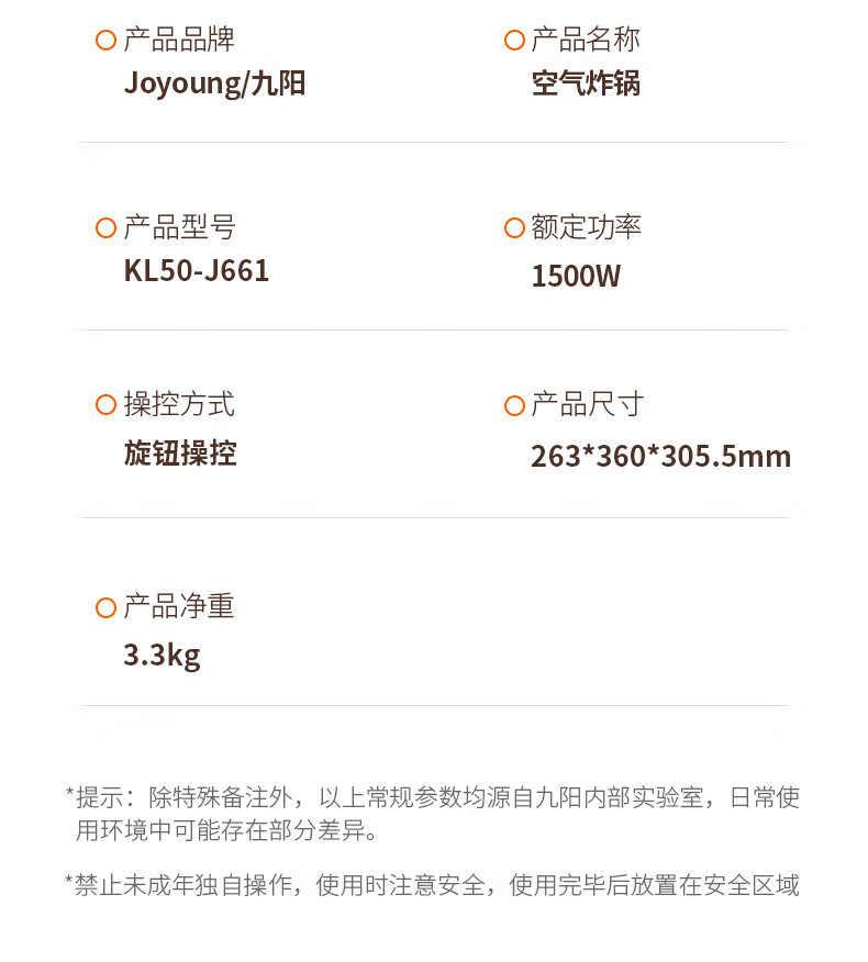九阳 空气炸锅KL50-J661
