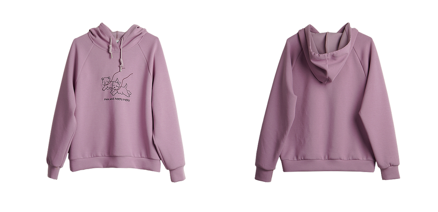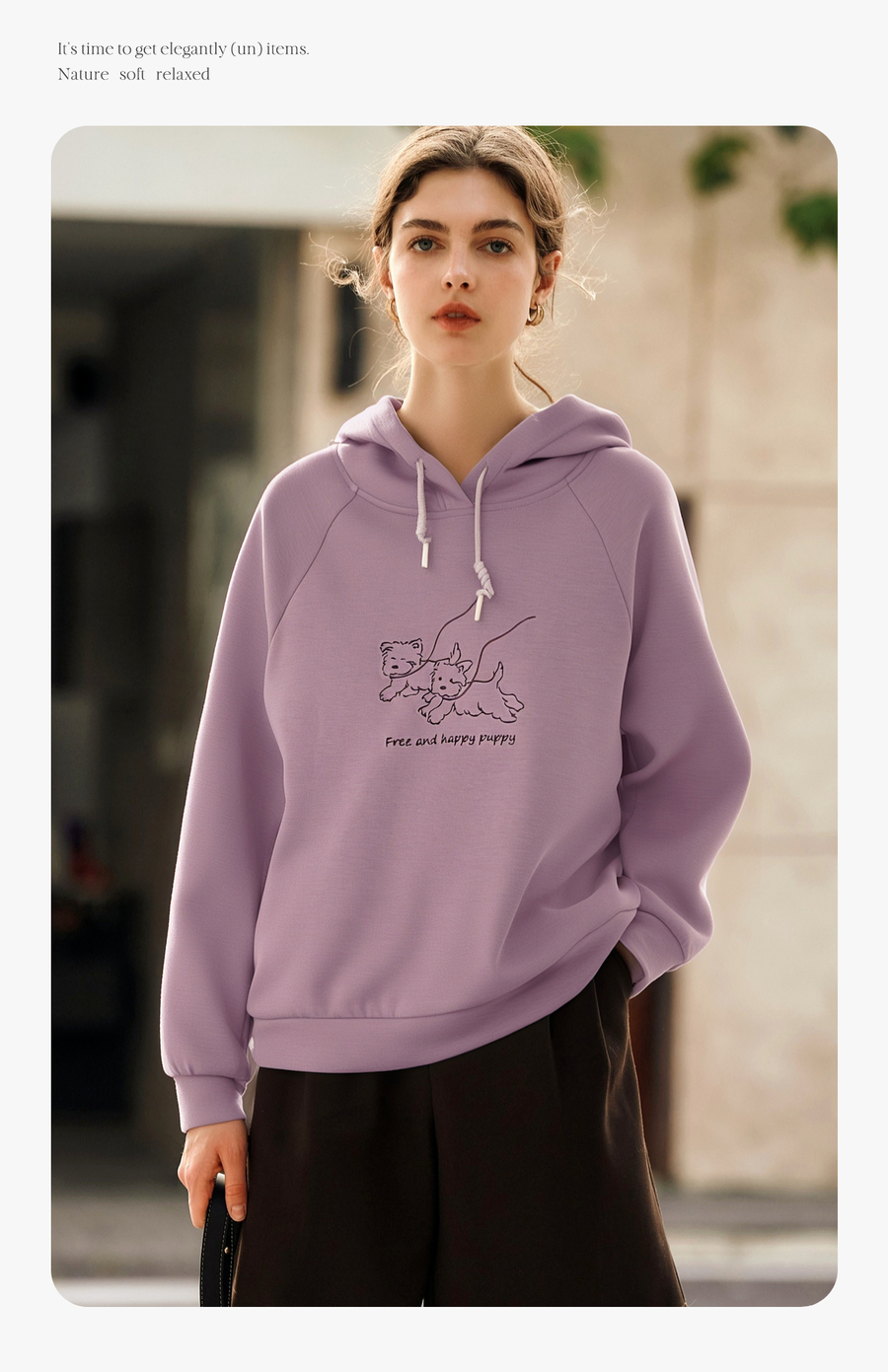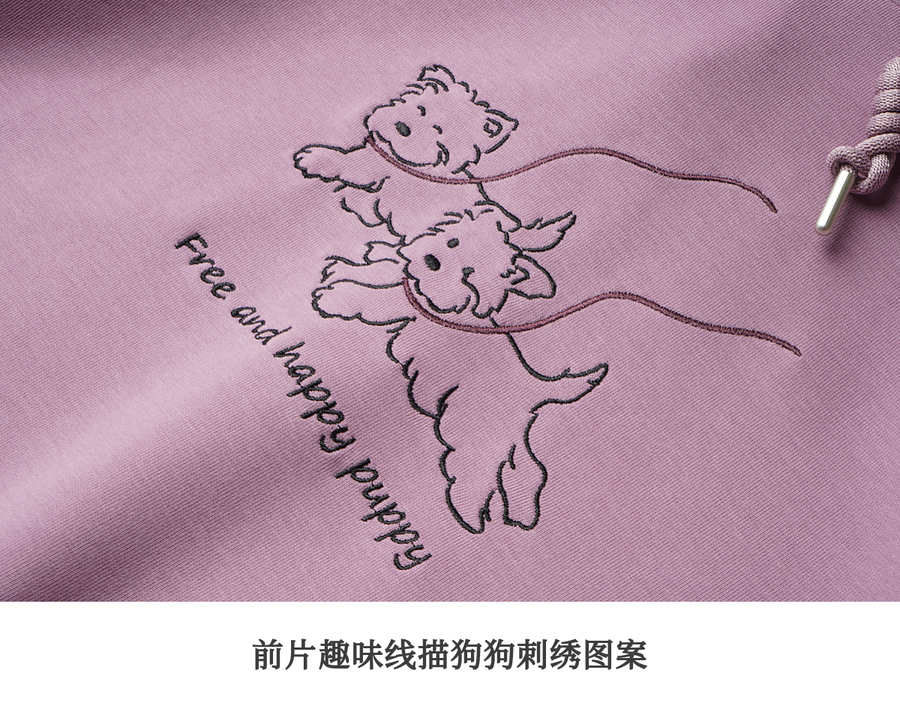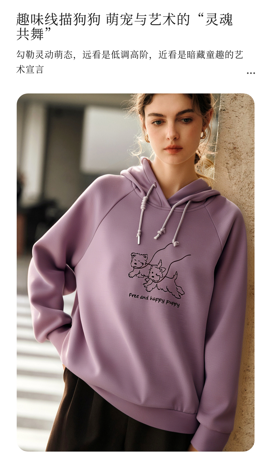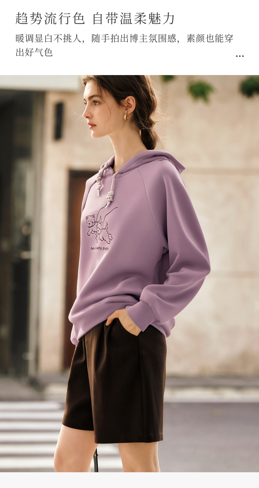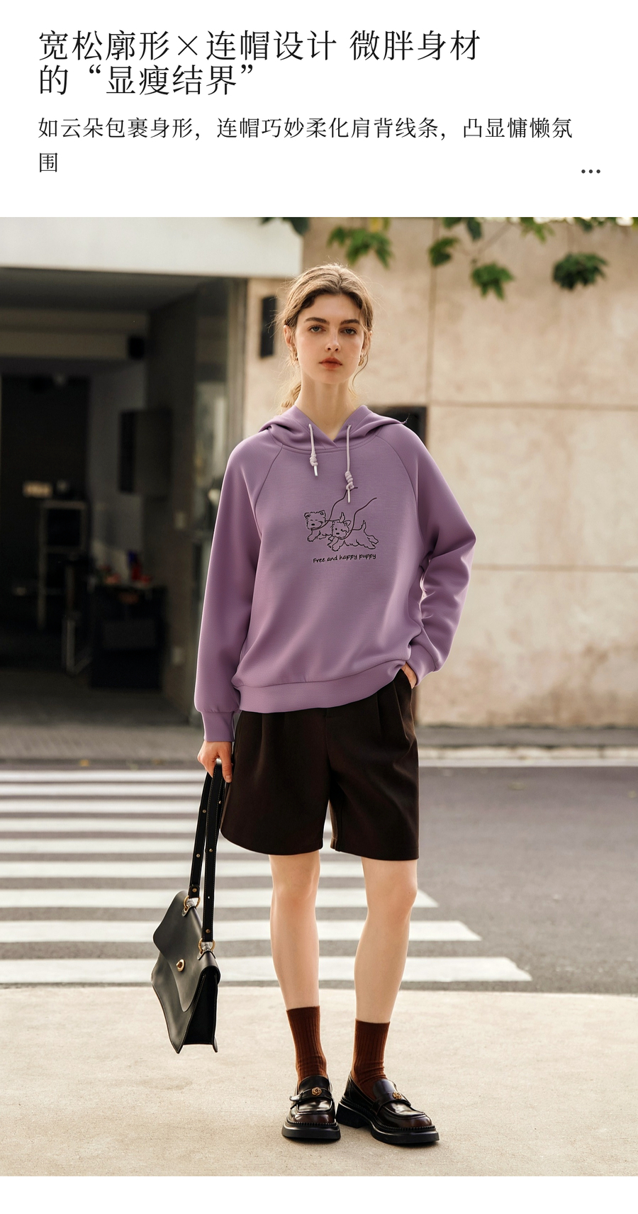 OLrain欧芮儿紫色连帽宽松卫衣2025秋季新款趣味卡通狗刺绣上衣
