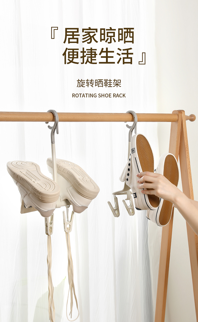 FaSoLa 家用多功能防风双钩阳台晒鞋架挂鞋子的晾鞋架可旋转收纳创意神器