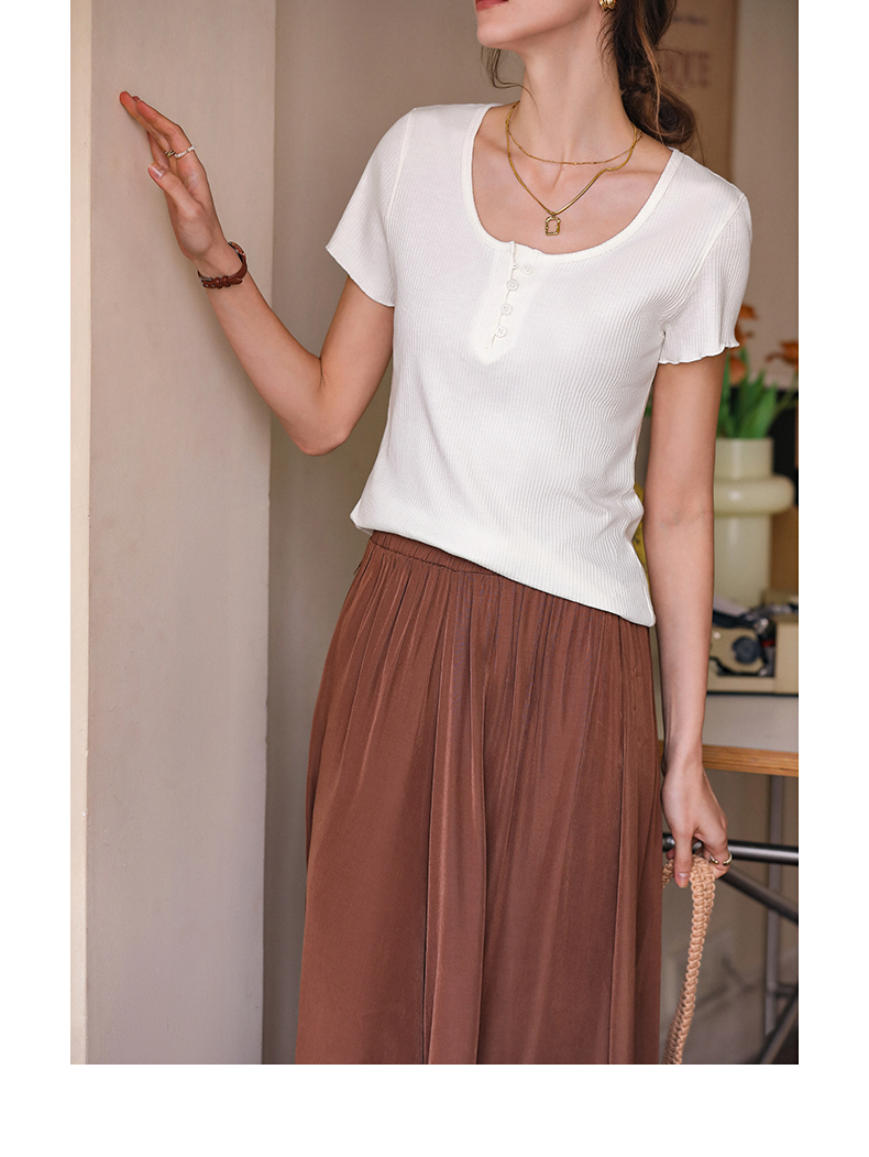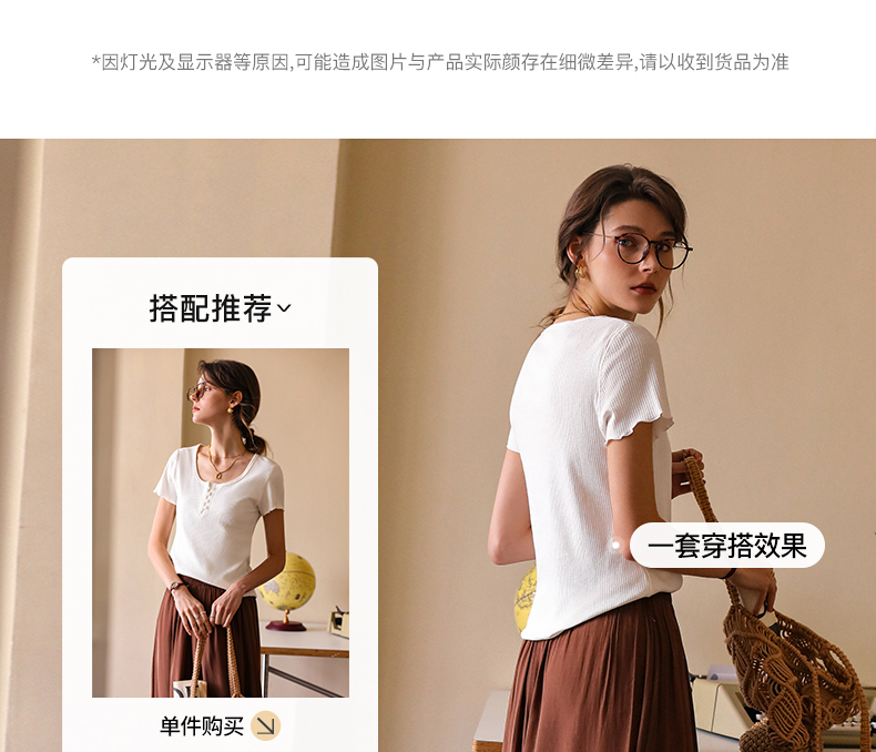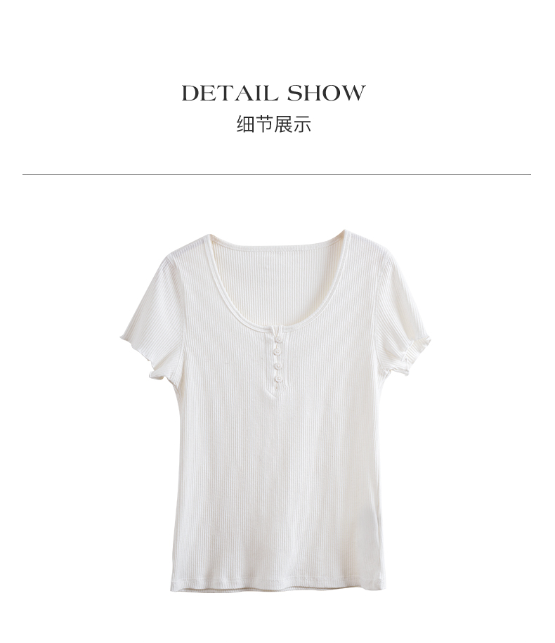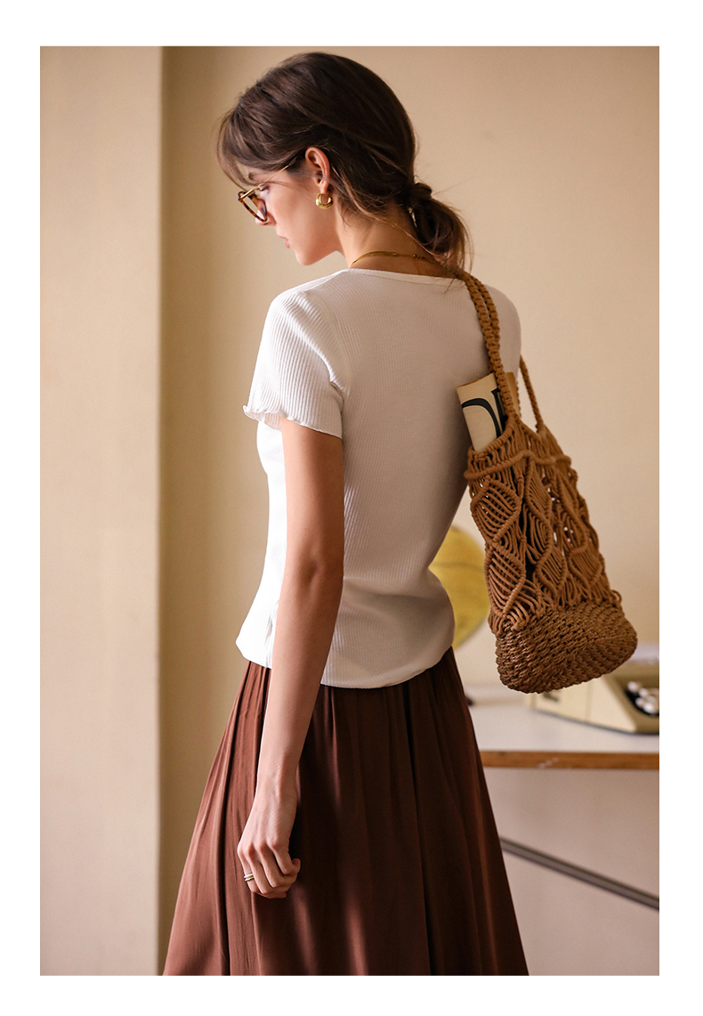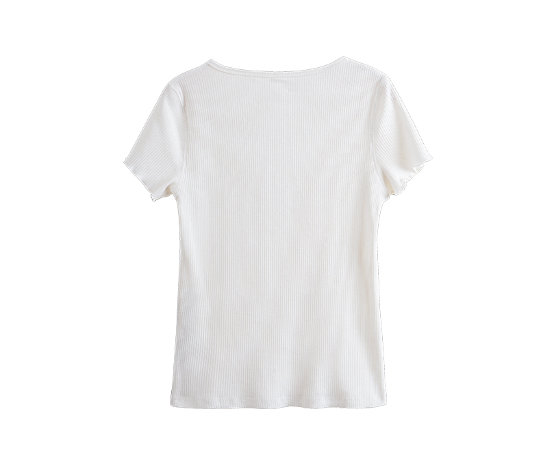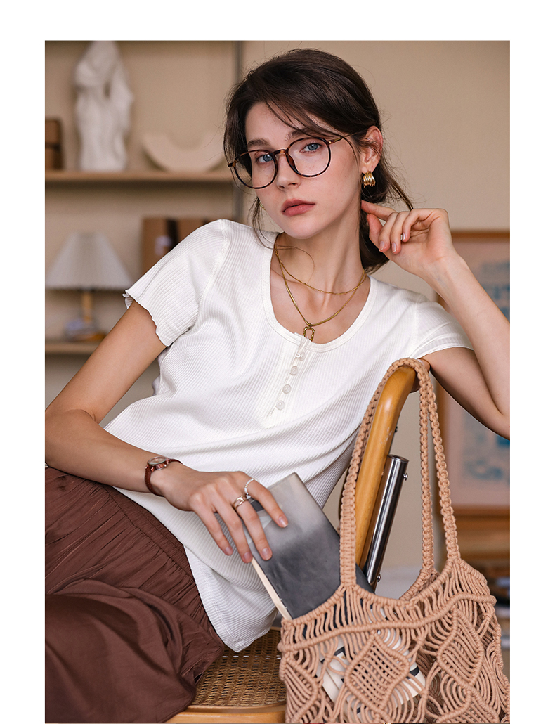 OLrain欧芮儿白色正肩T恤女早春2024新款简约百搭修身设计感短袖