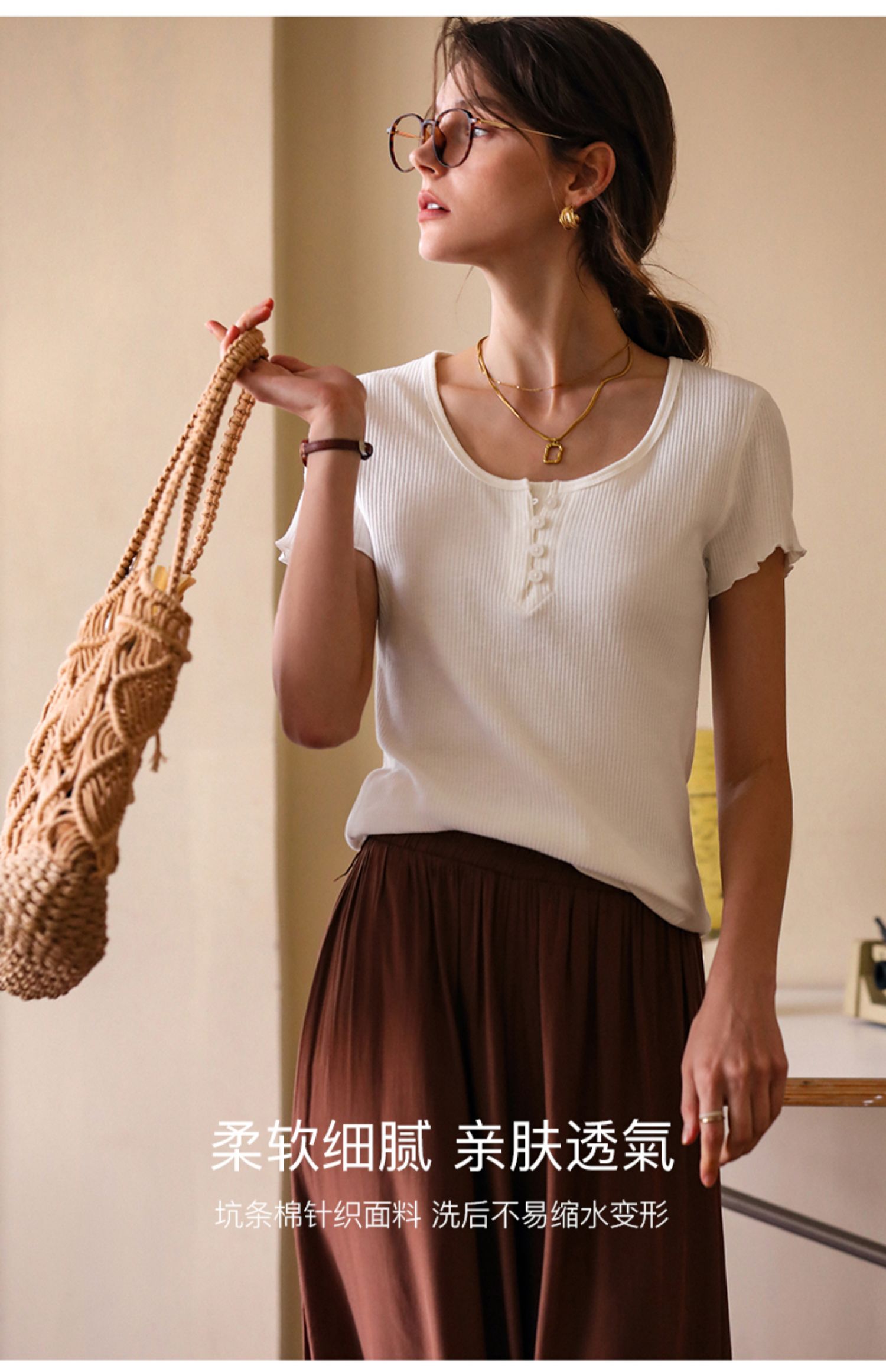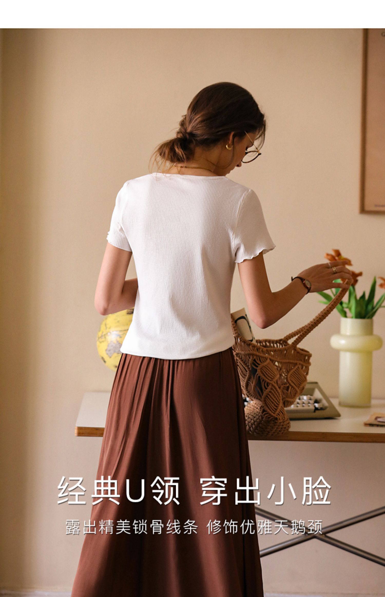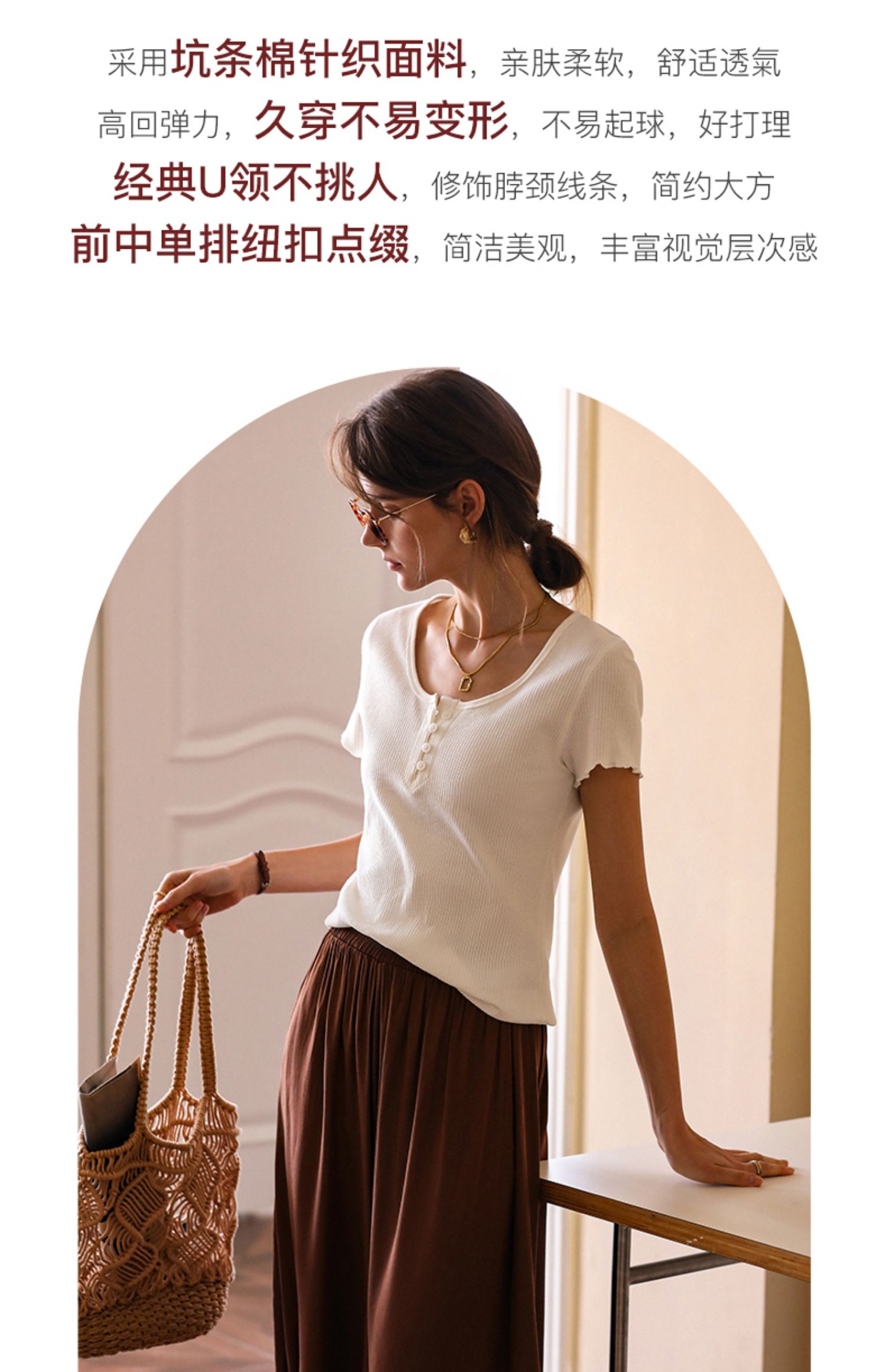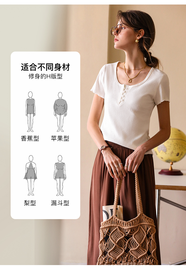 OLrain欧芮儿白色正肩T恤女早春2024新款简约百搭修身设计感短袖