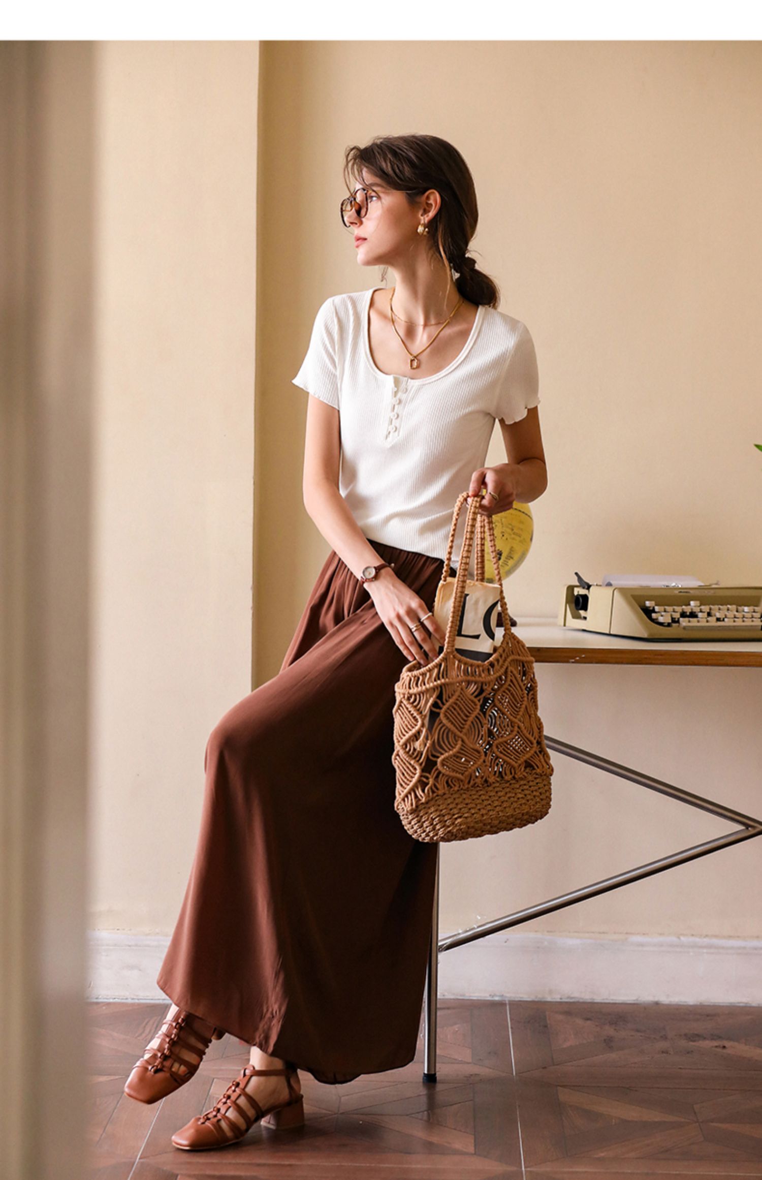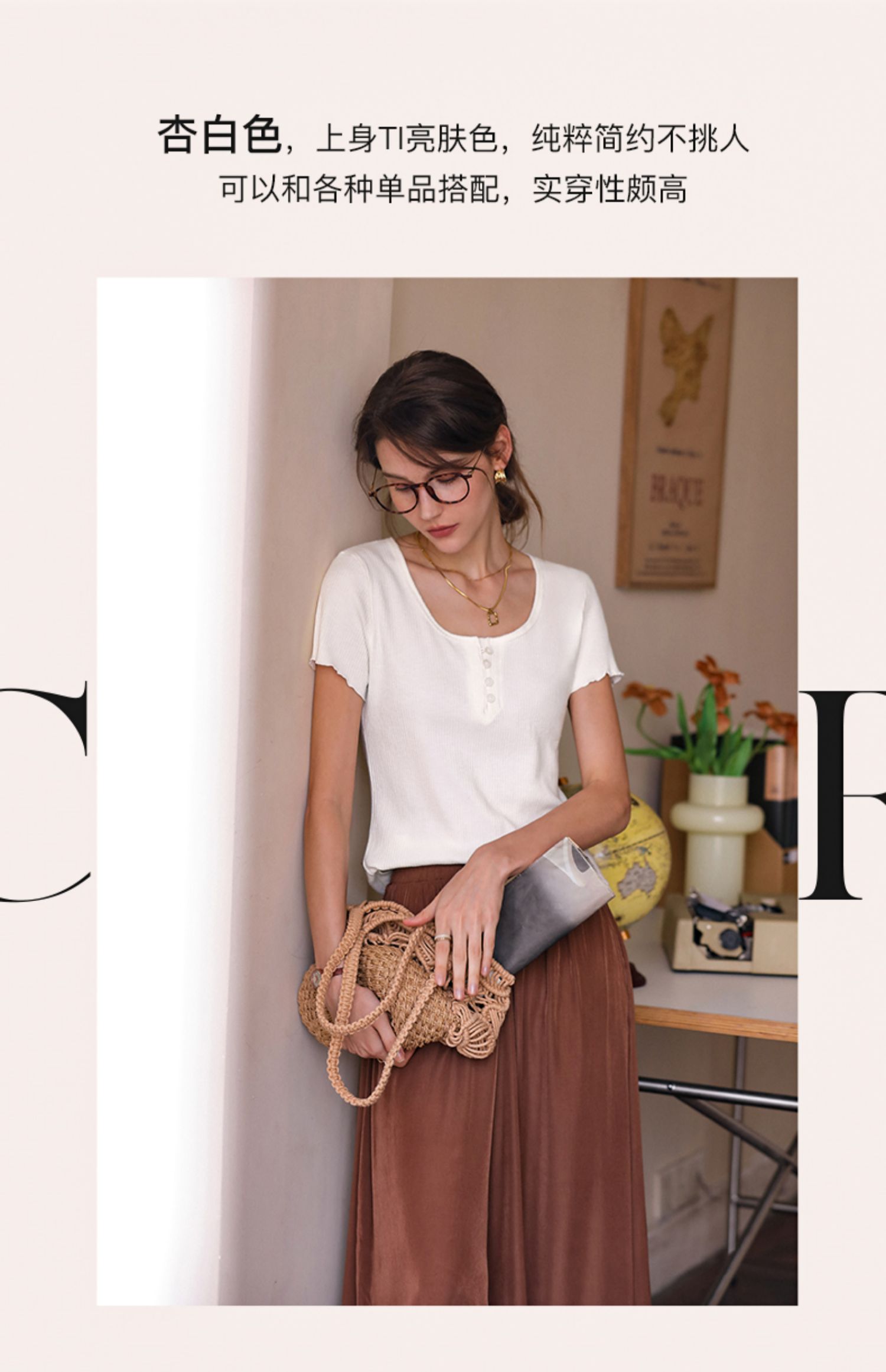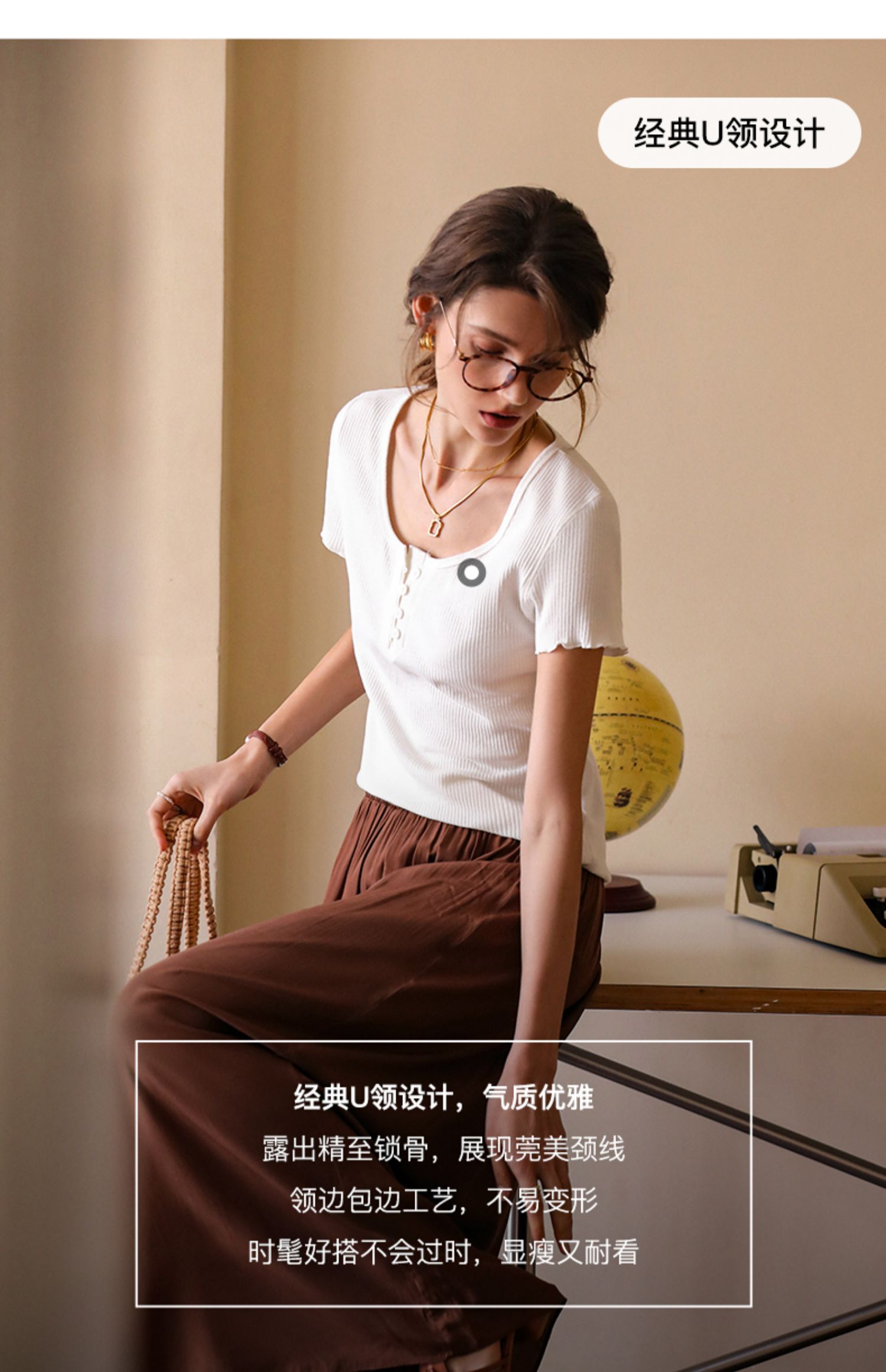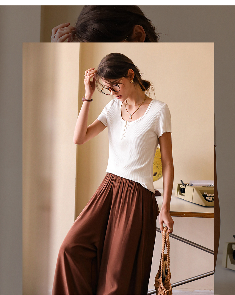 OLrain欧芮儿白色正肩T恤女早春2024新款简约百搭修身设计感短袖