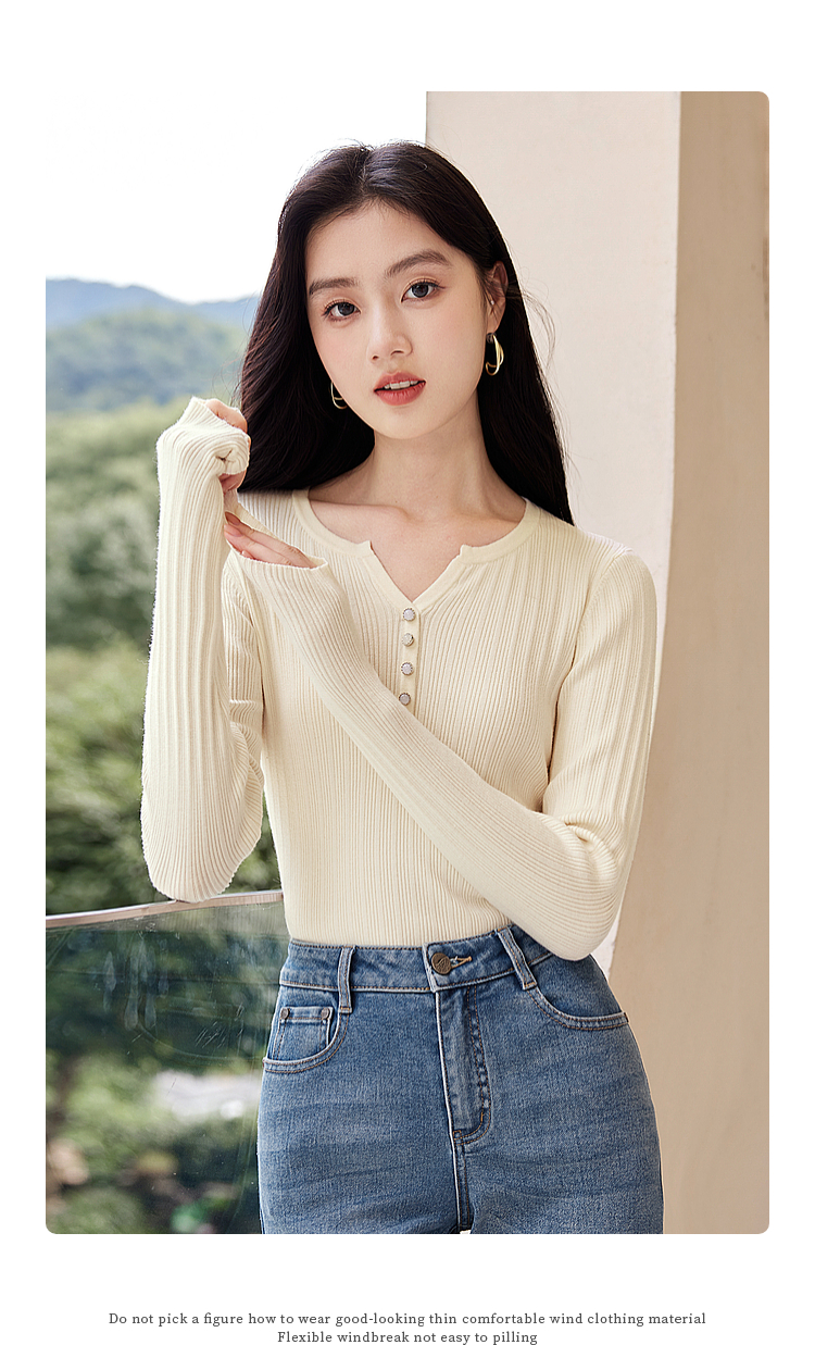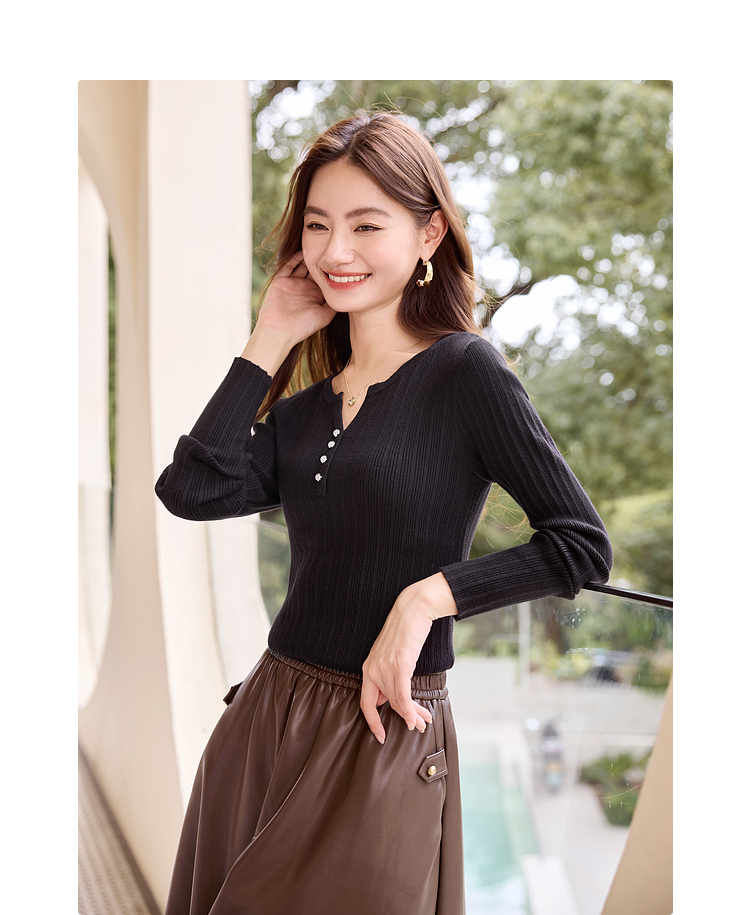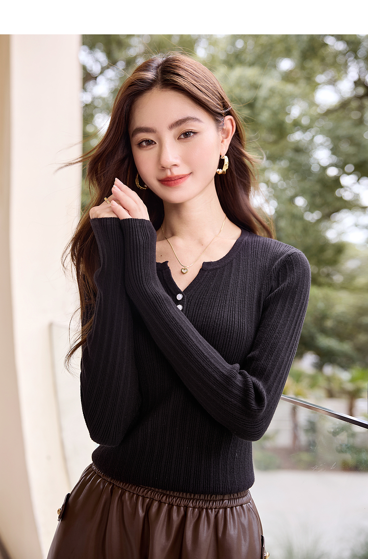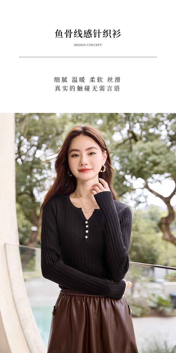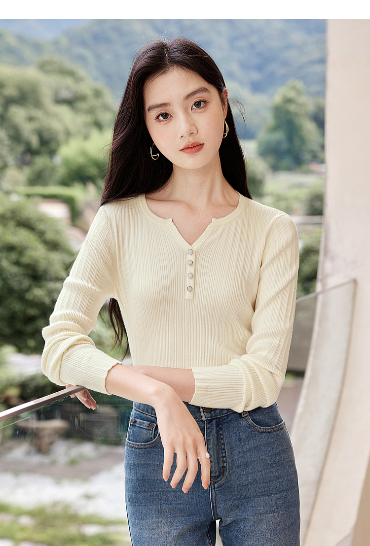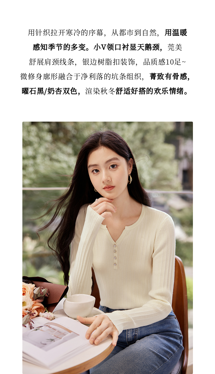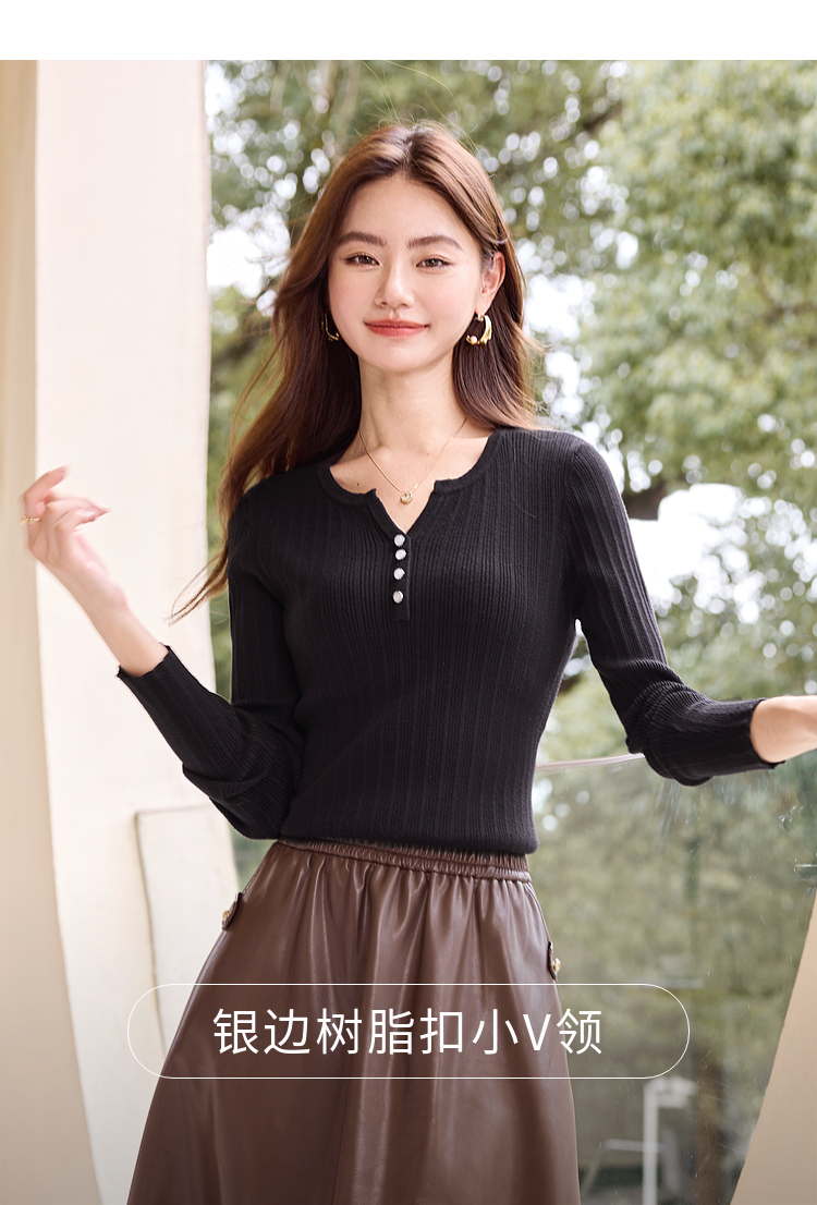 【年终特卖】熙世界法式小V领针织打底衫内搭2025秋季新款修身毛衣长袖上衣