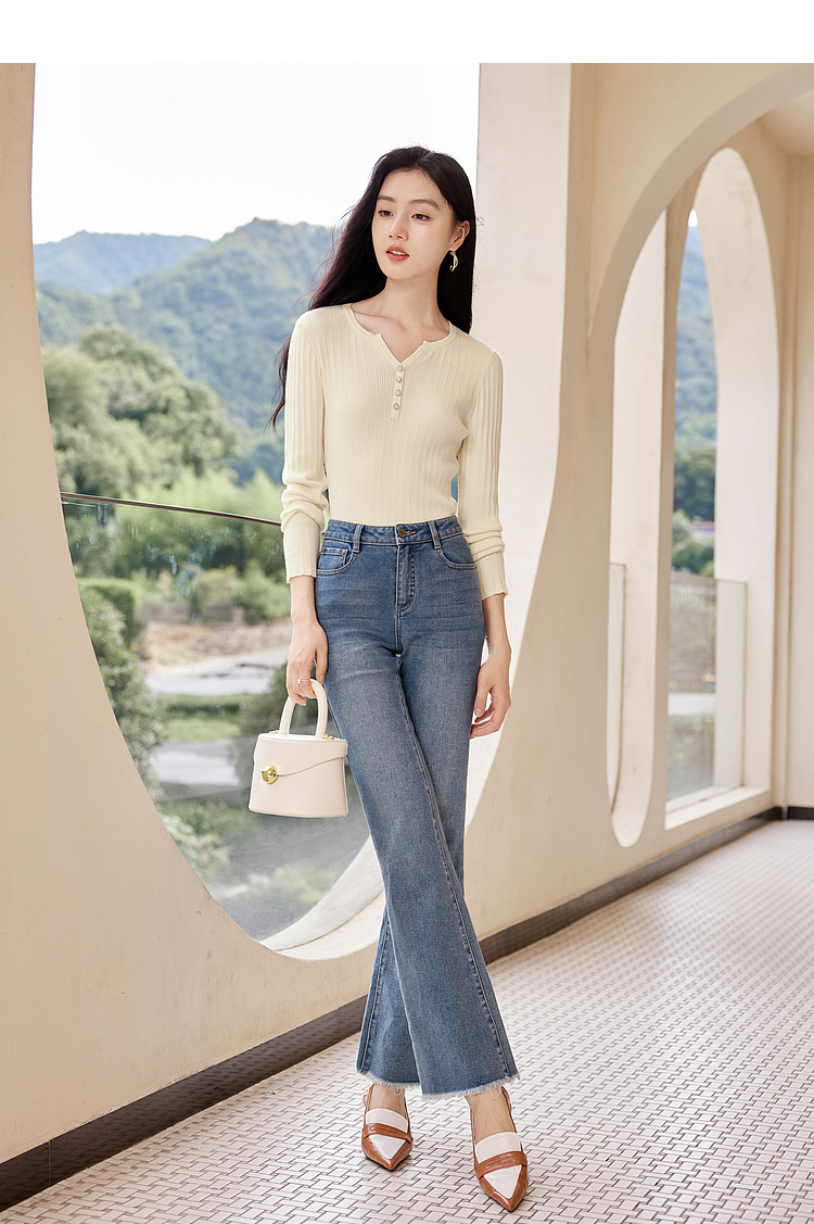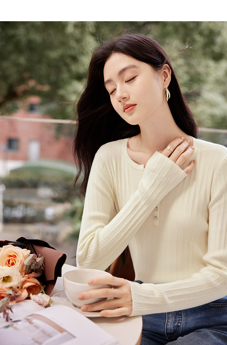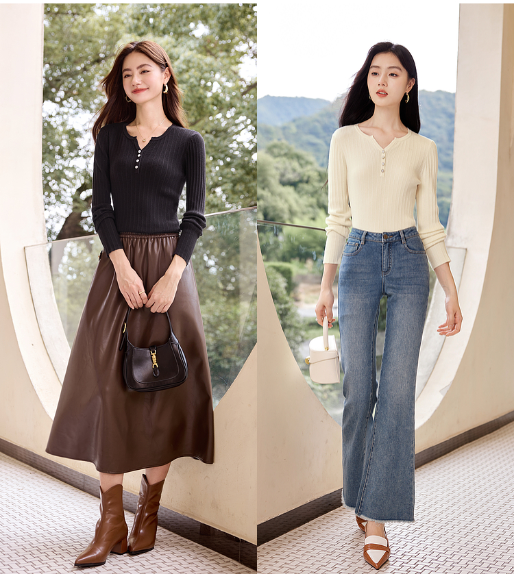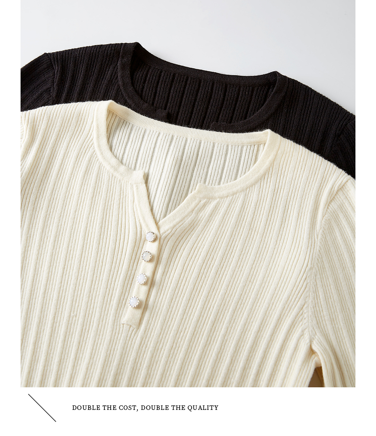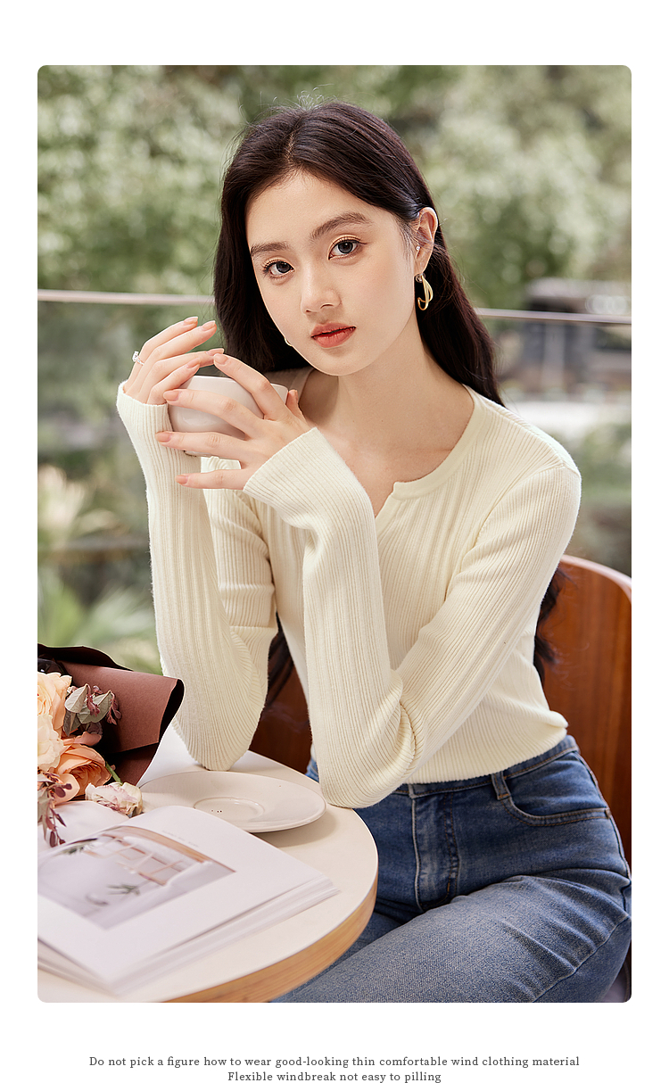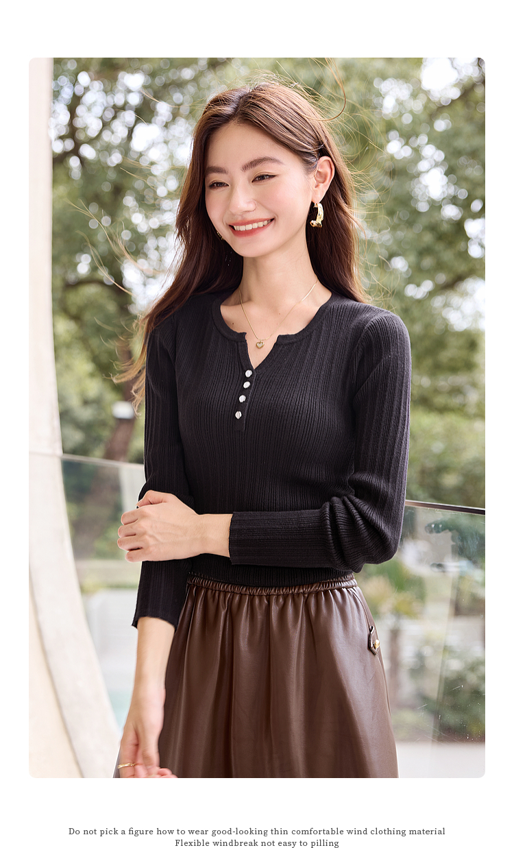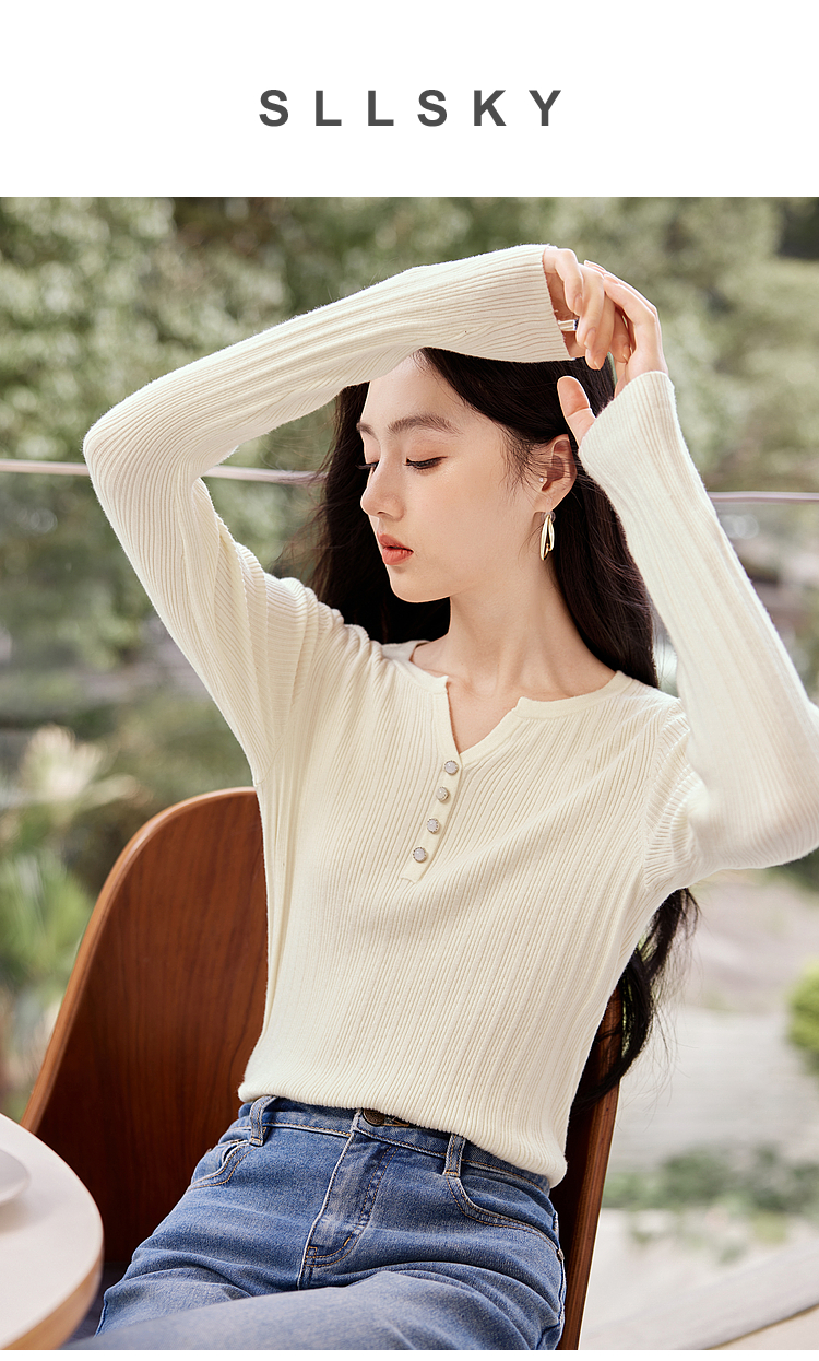 【年终特卖】熙世界法式小V领针织打底衫内搭2025秋季新款修身毛衣长袖上衣