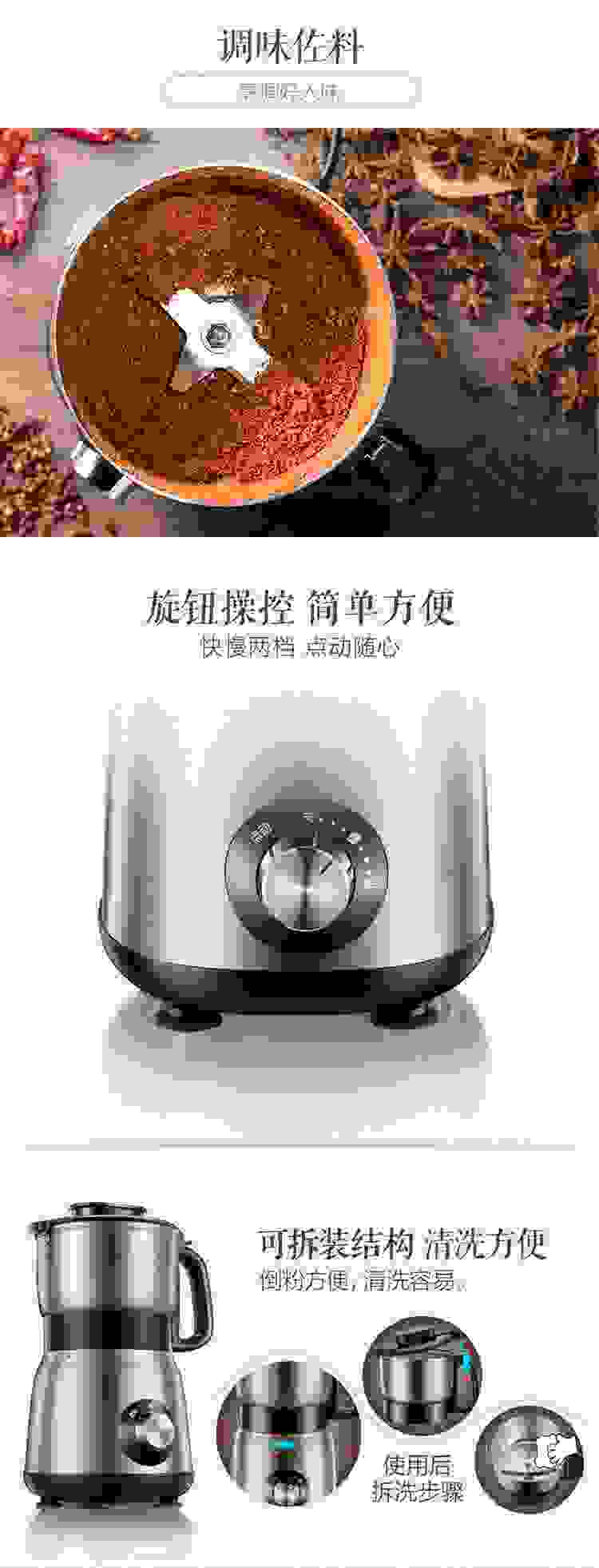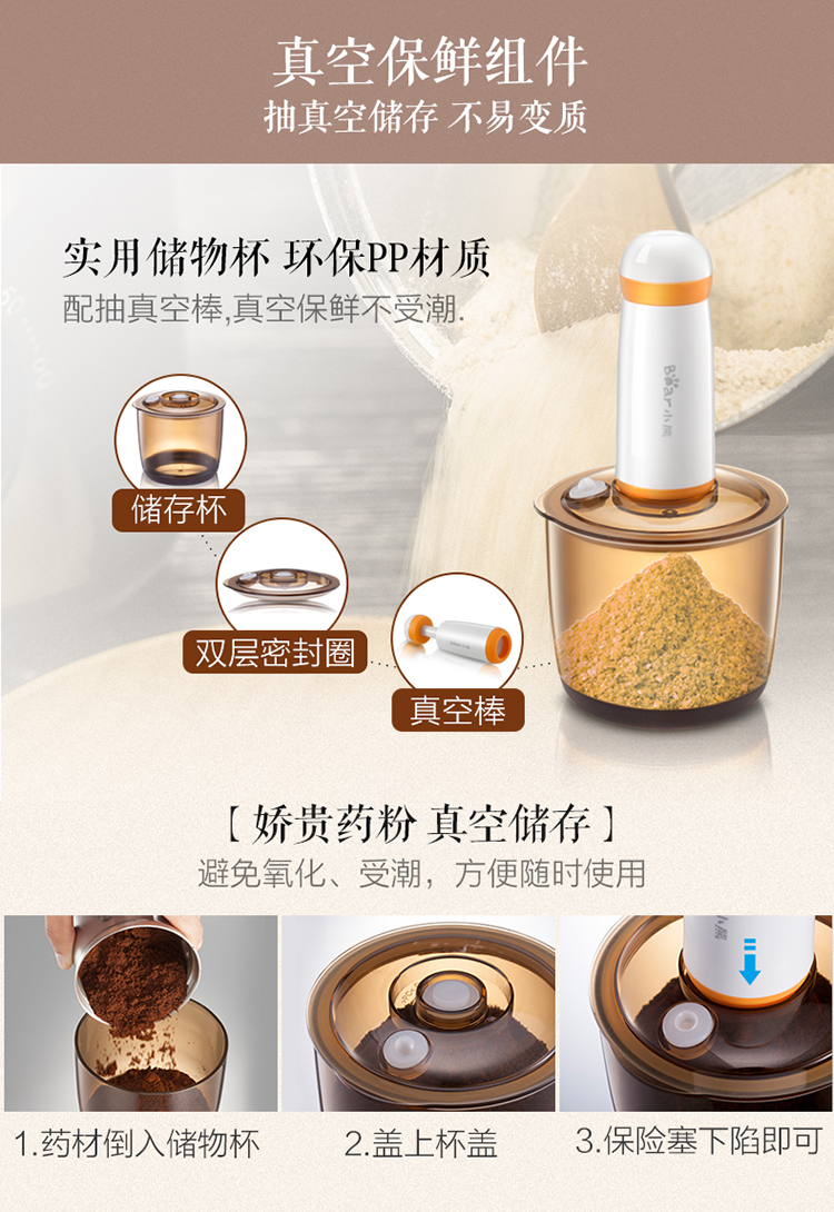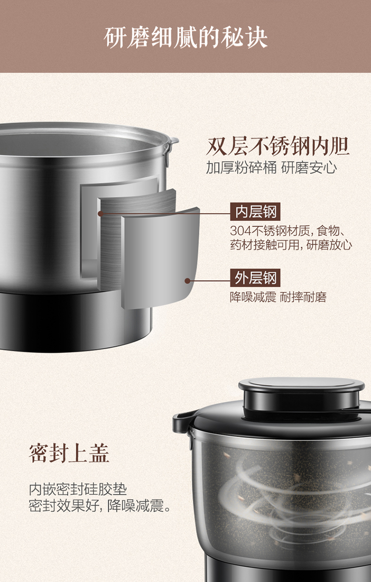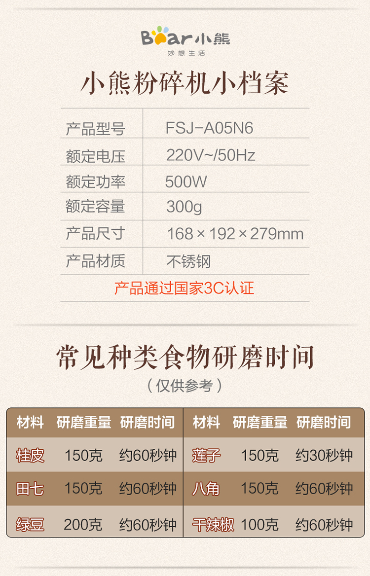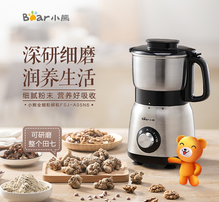 小熊(Bear)研磨机磨粉机家用小型料理机五谷杂粮干粉碎药材不锈钢打粉机厨房大容量粉碎机FSJ-A05N6