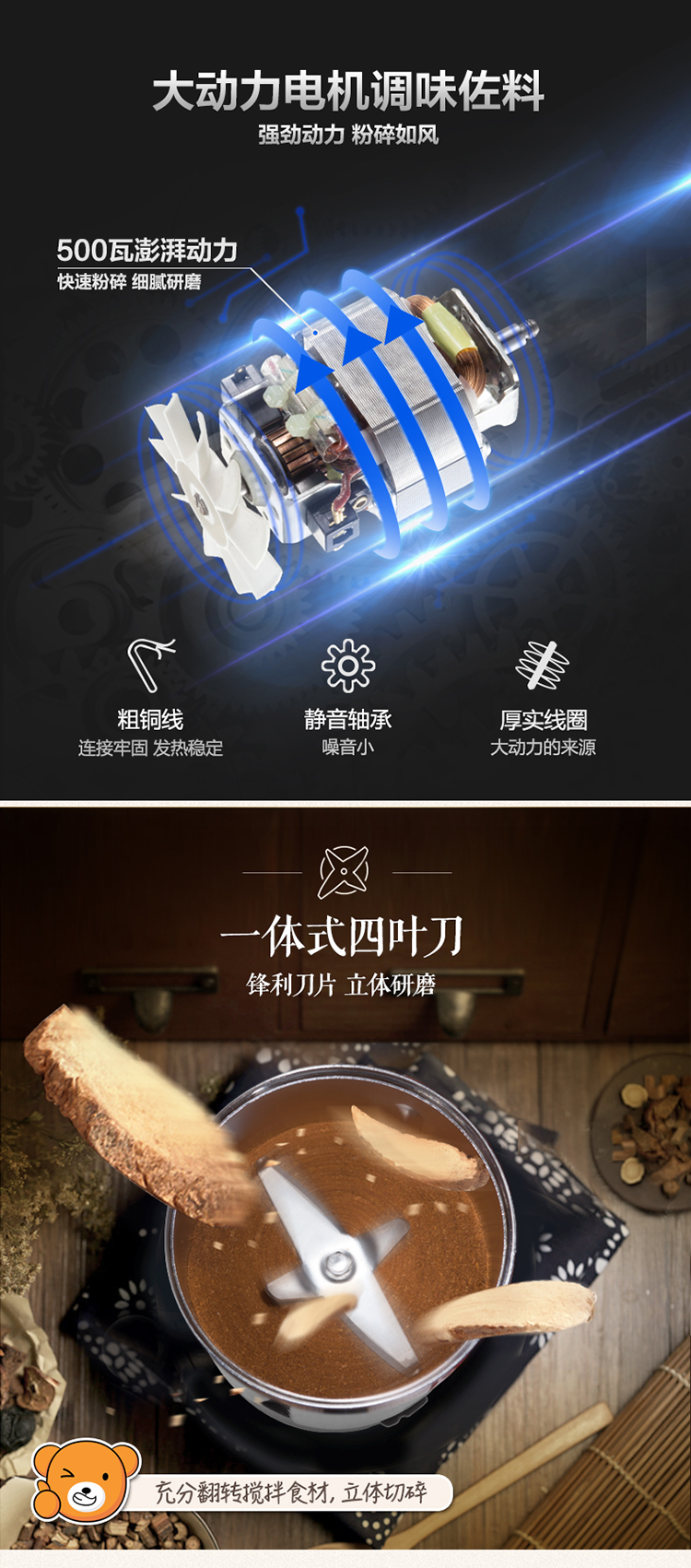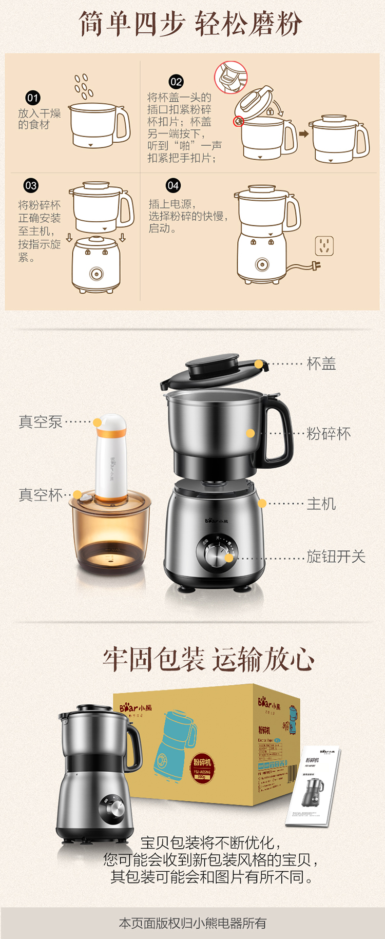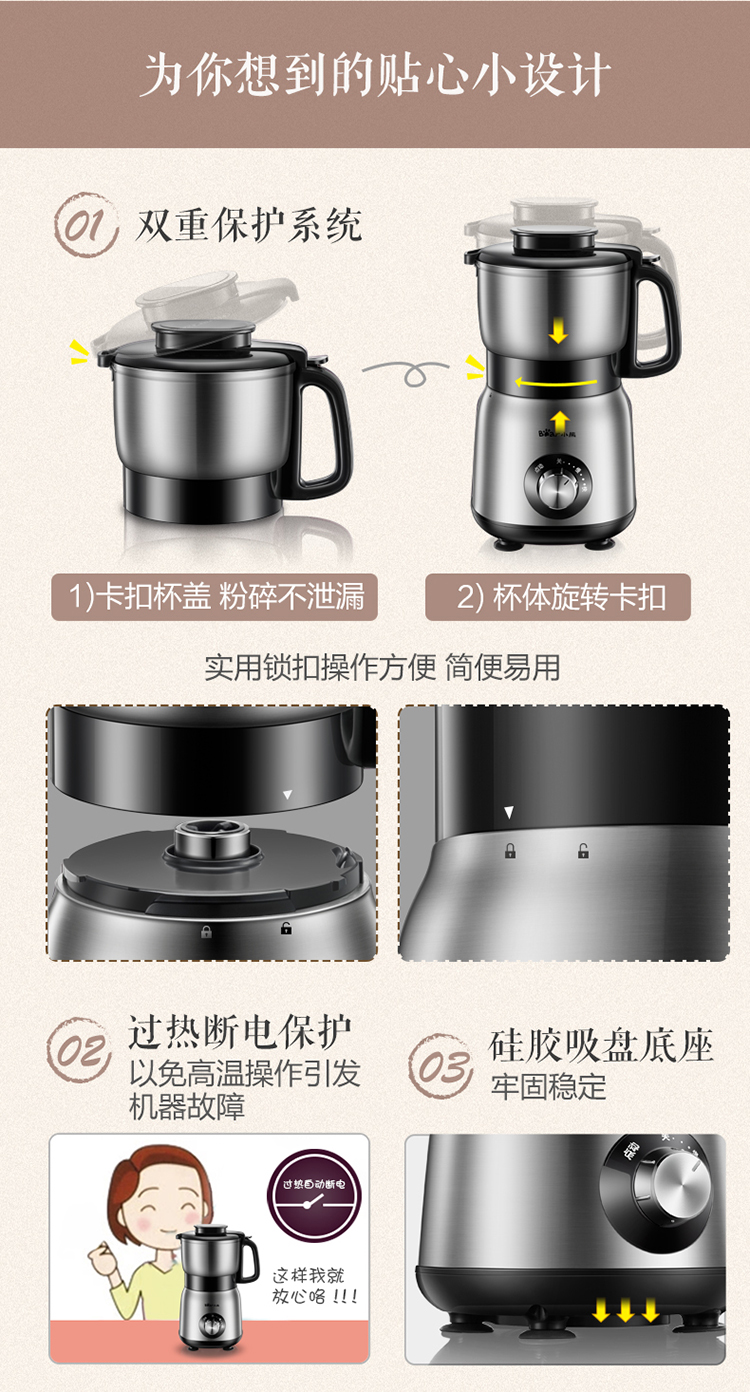 小熊(Bear)研磨机磨粉机家用小型料理机五谷杂粮干粉碎药材不锈钢打粉机厨房大容量粉碎机FSJ-A05N6