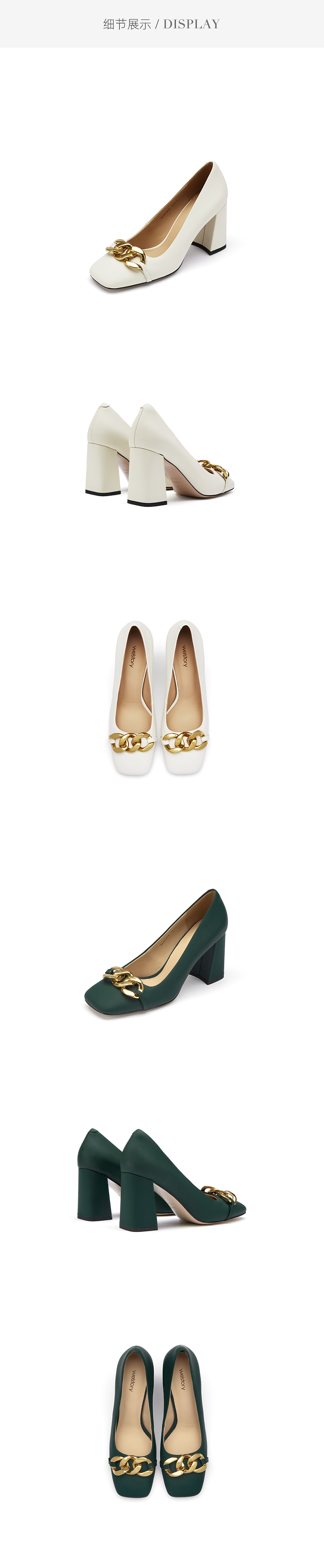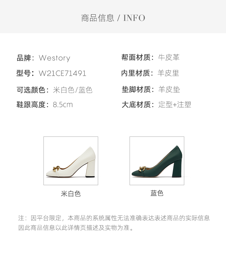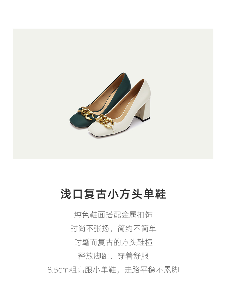 westory2021秋季新品气质复古小方头粗跟高跟鞋W21CE71491