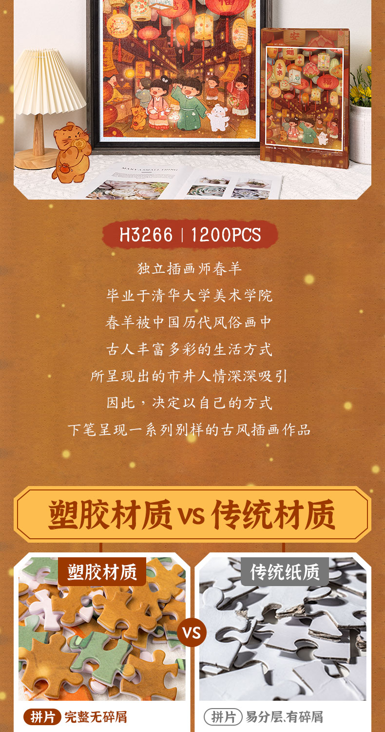 【折扣商品 不退不换】1200片 平面塑料拼图 H3266 春羊-华灯初上