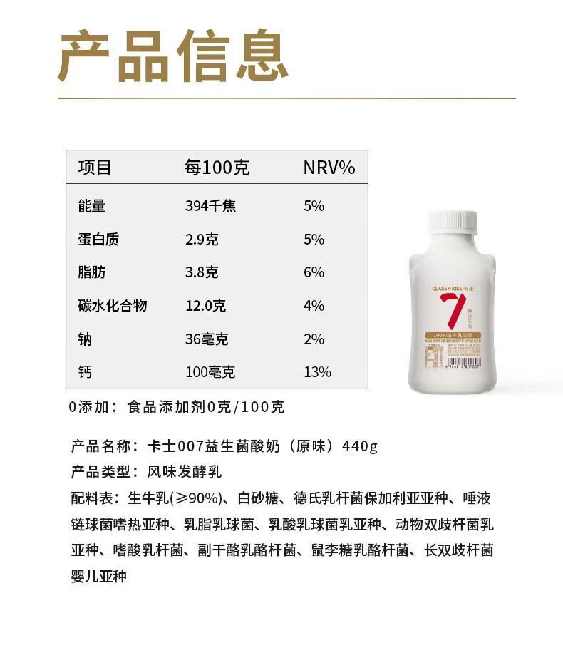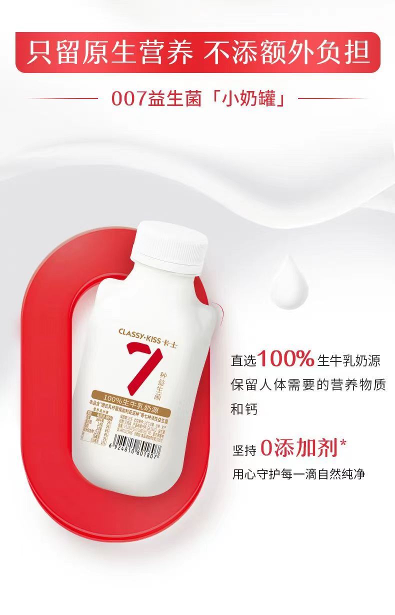 卡士 007小奶罐0添加原味酸奶440ml*6瓶 只发江浙沪皖 7种活性益生菌低温酸奶 48小时发货