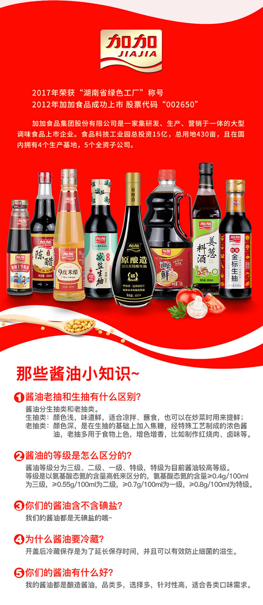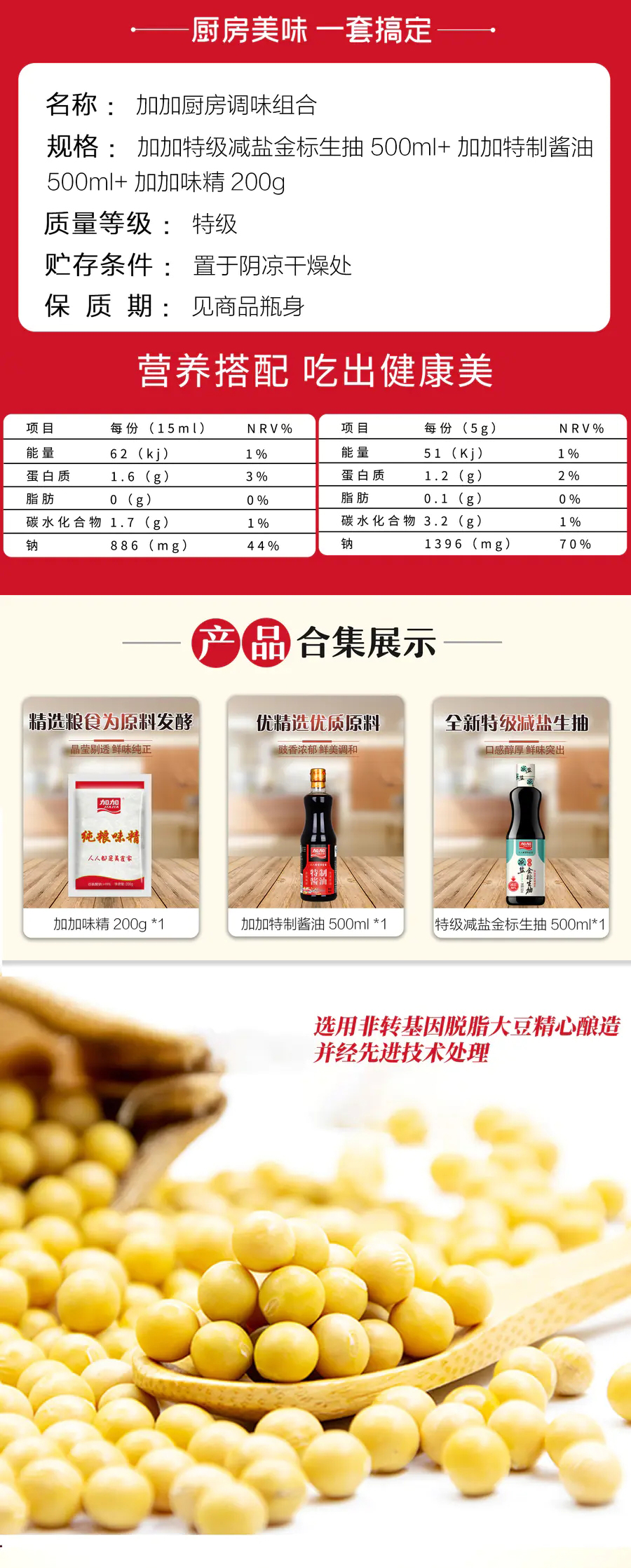加加 组合二:500ml减盐金标生抽+500ml特制酱油+200g味精