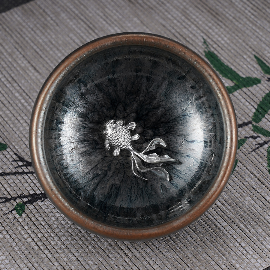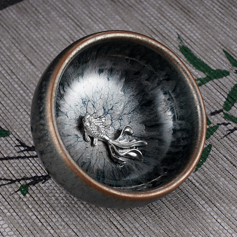 子佩集S990银【河清海晏】茶具【HH001】金鱼茶杯摆件2312 商品图0