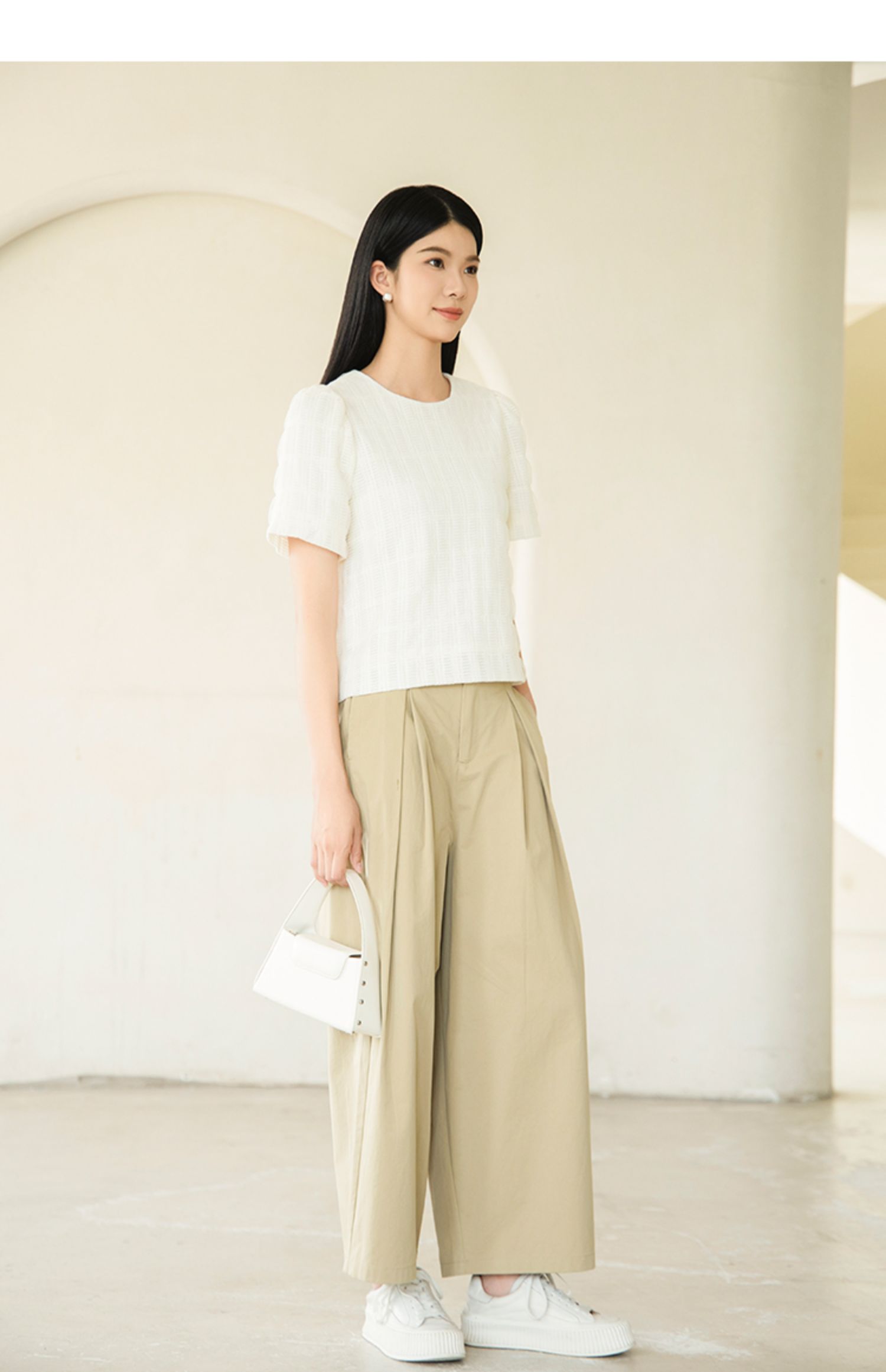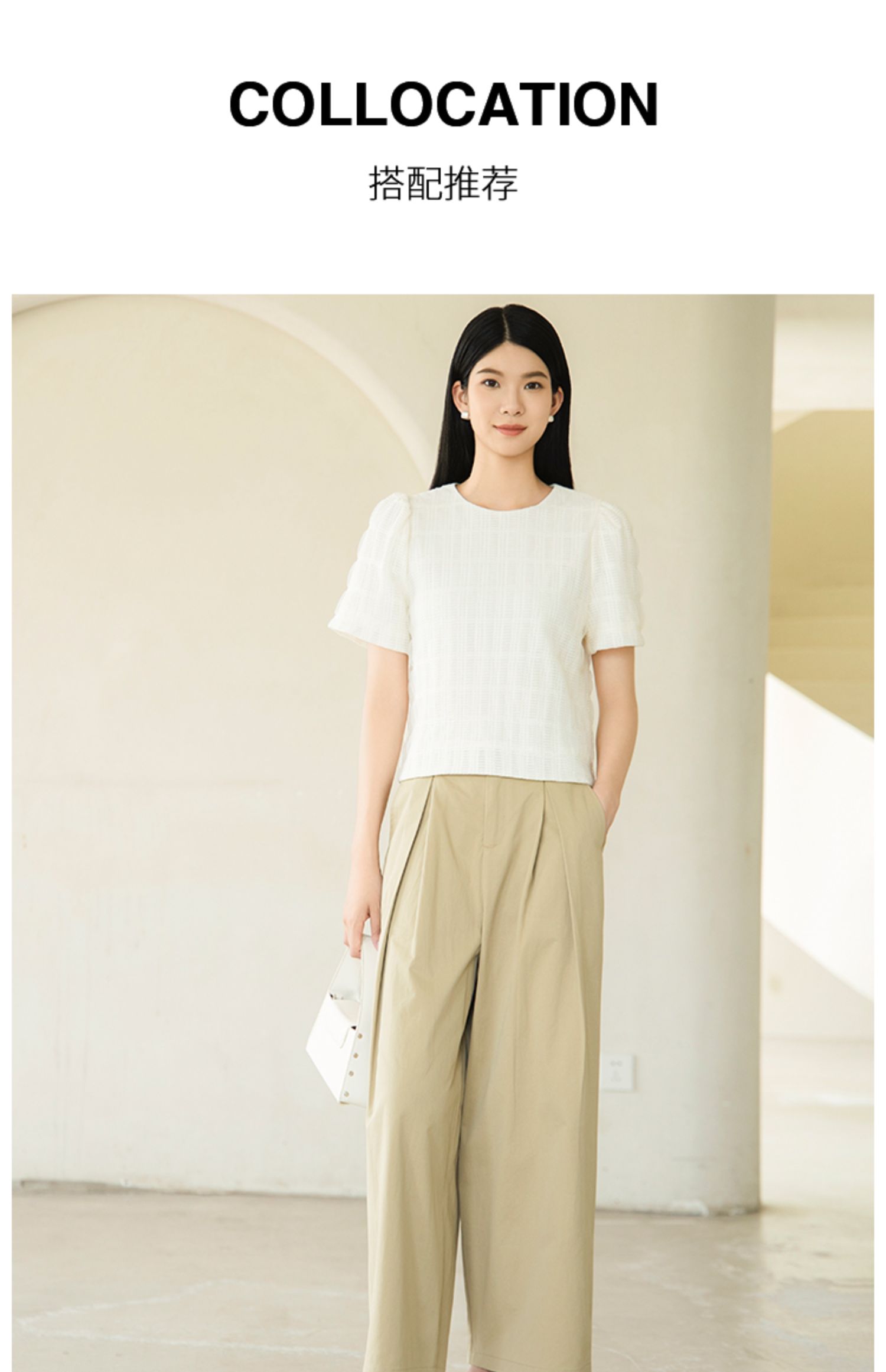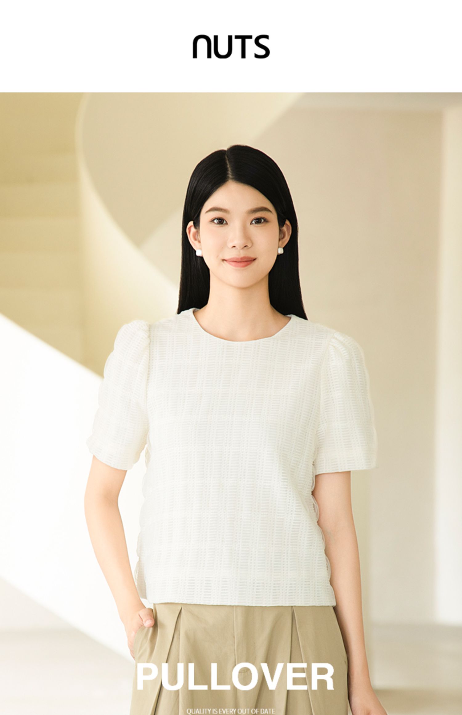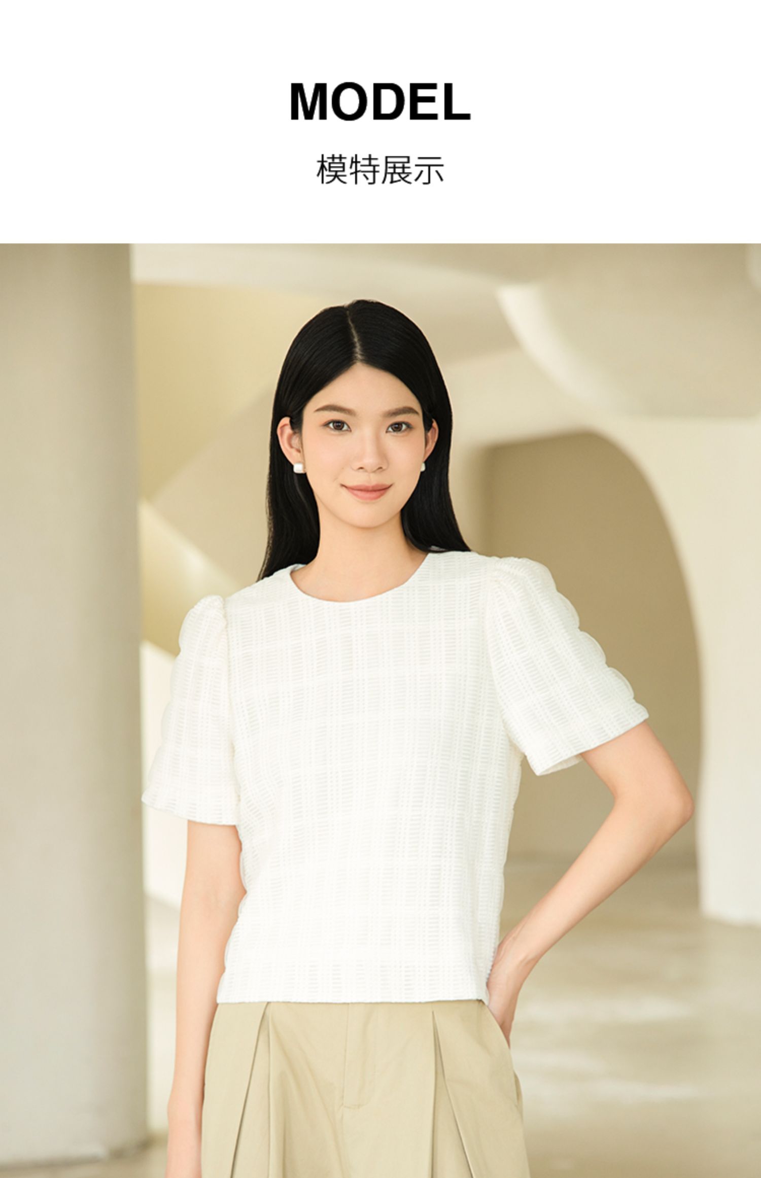 NUTS秋季新款白色圆领简约直筒泡泡袖套头衬衫衫女4320111A1