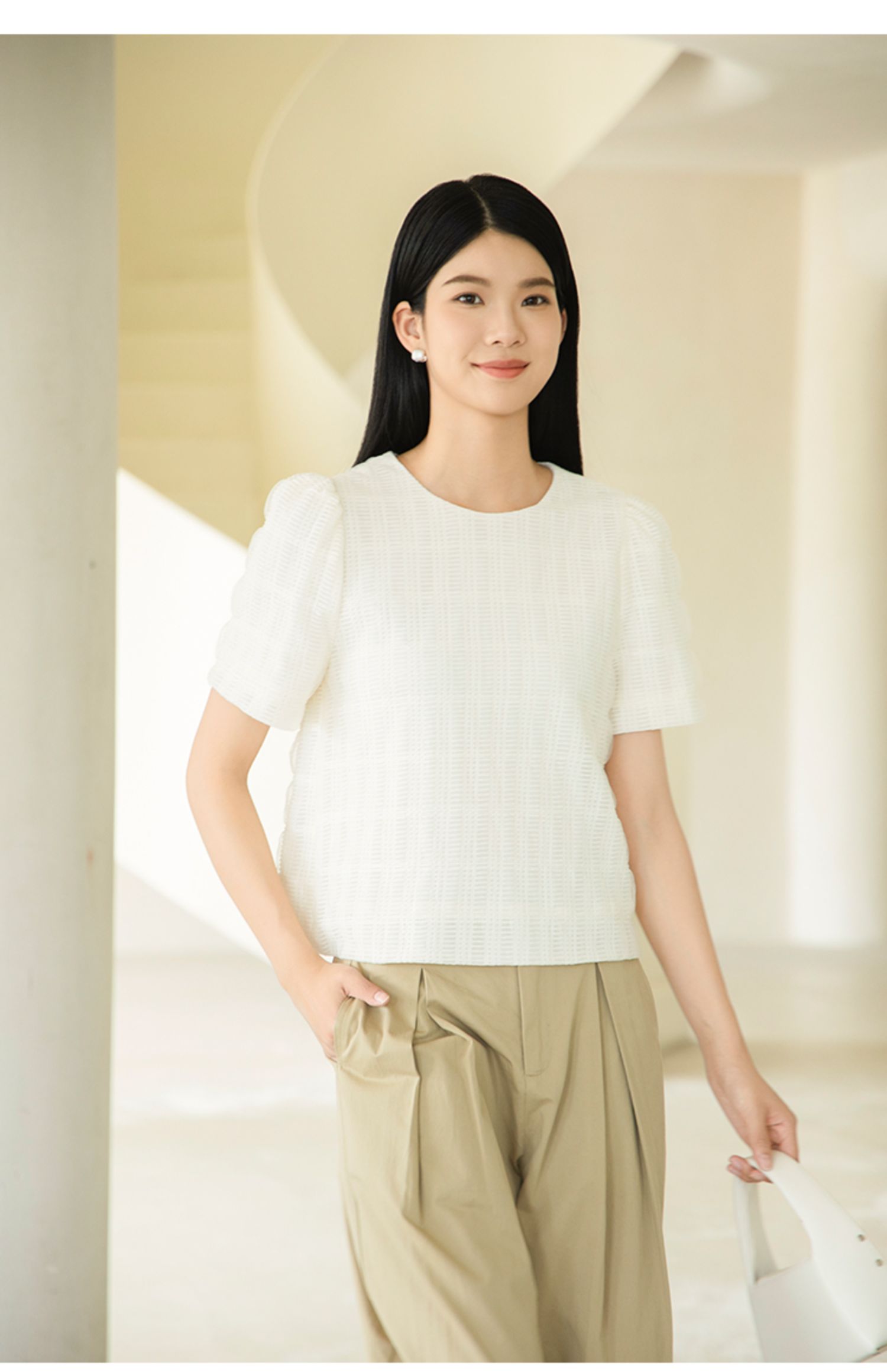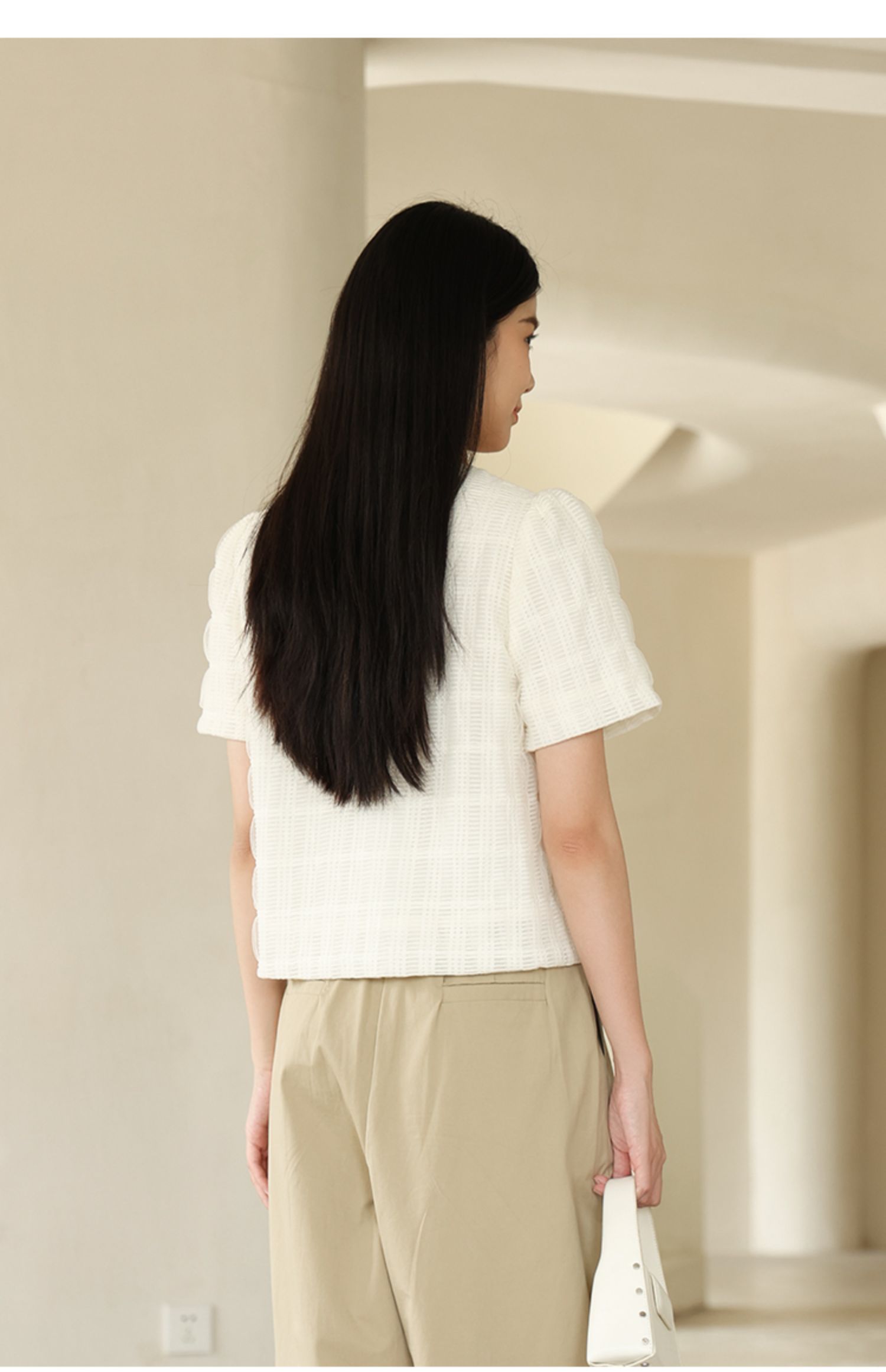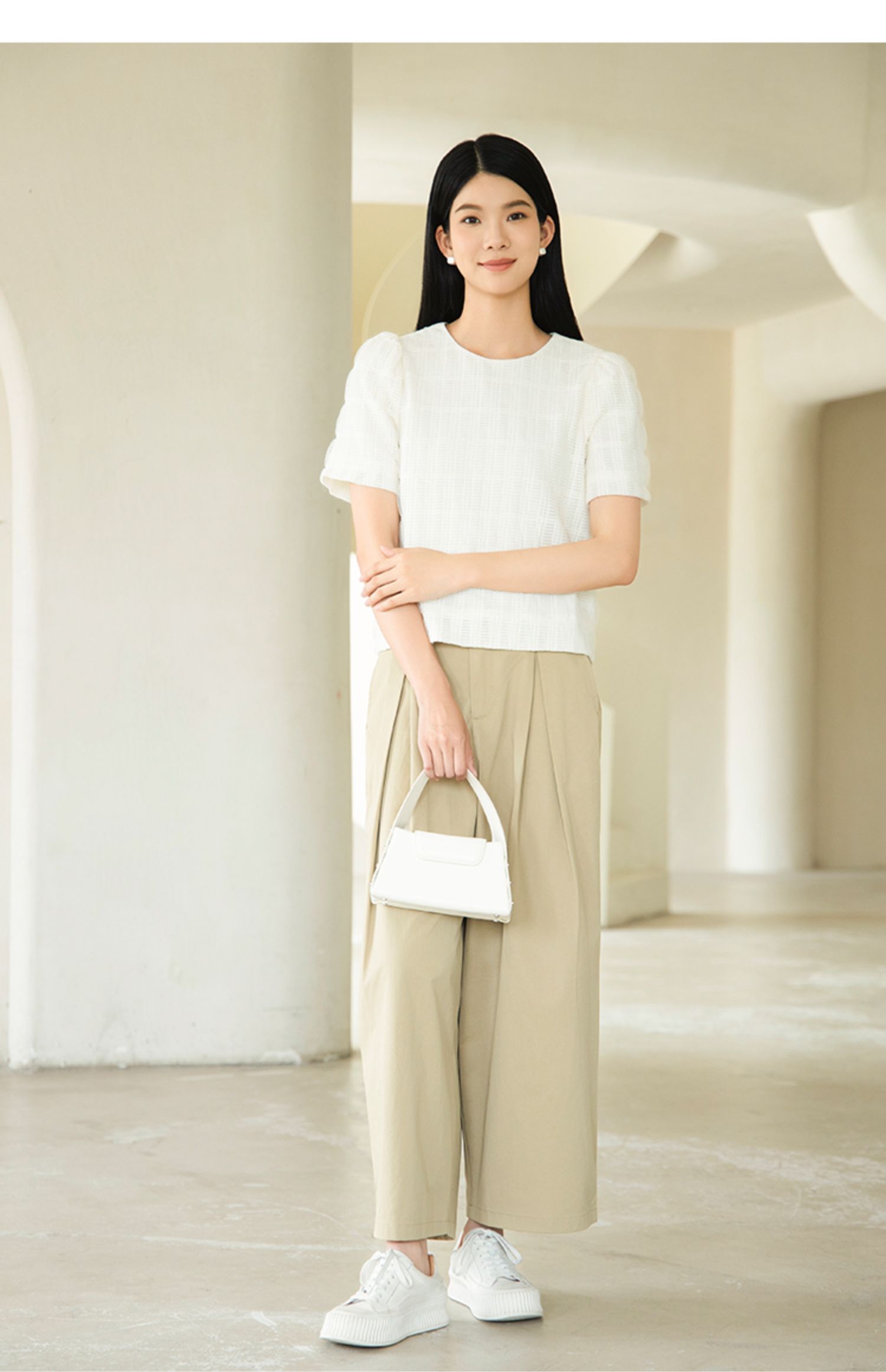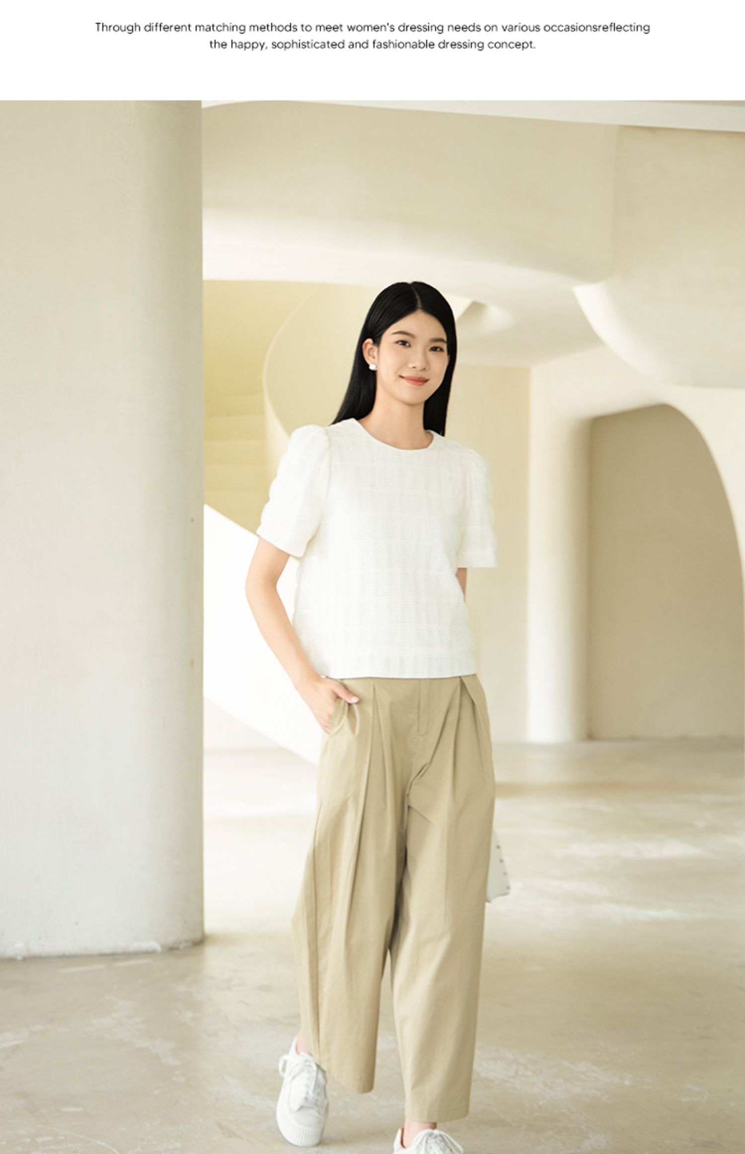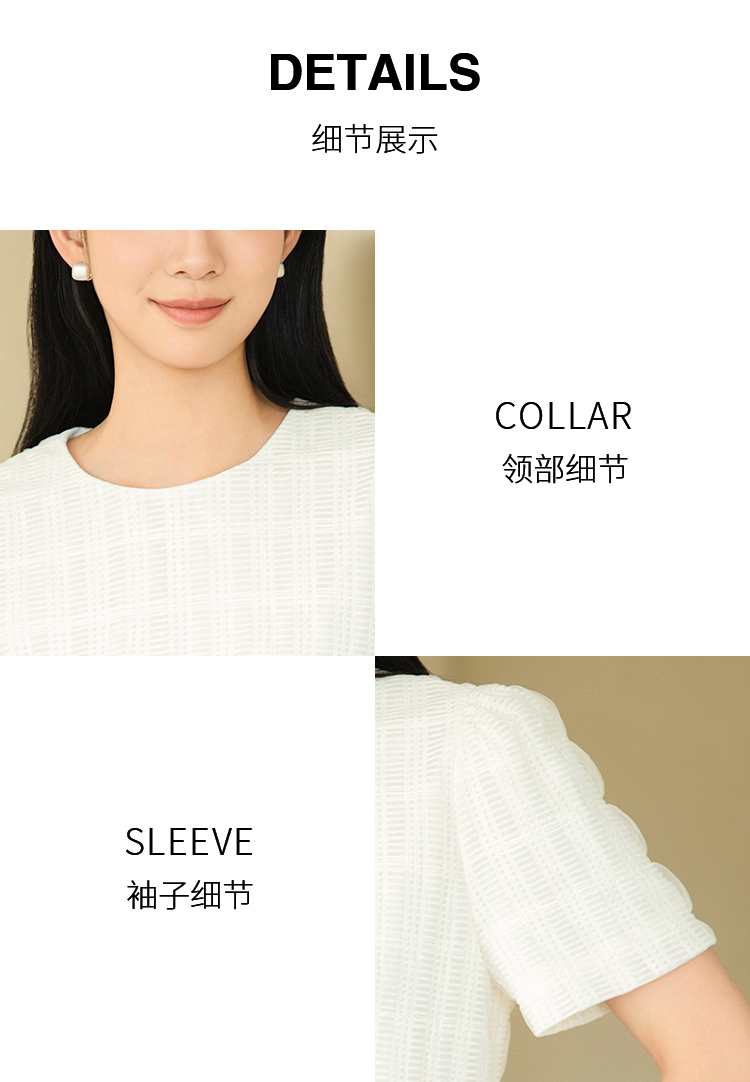 NUTS秋季新款白色圆领简约直筒泡泡袖套头衬衫衫女4320111A1