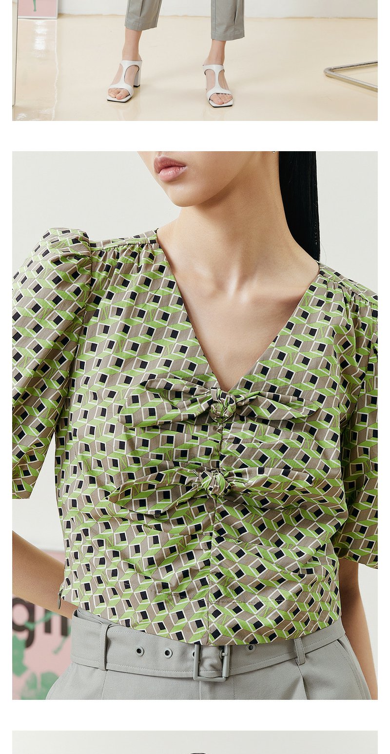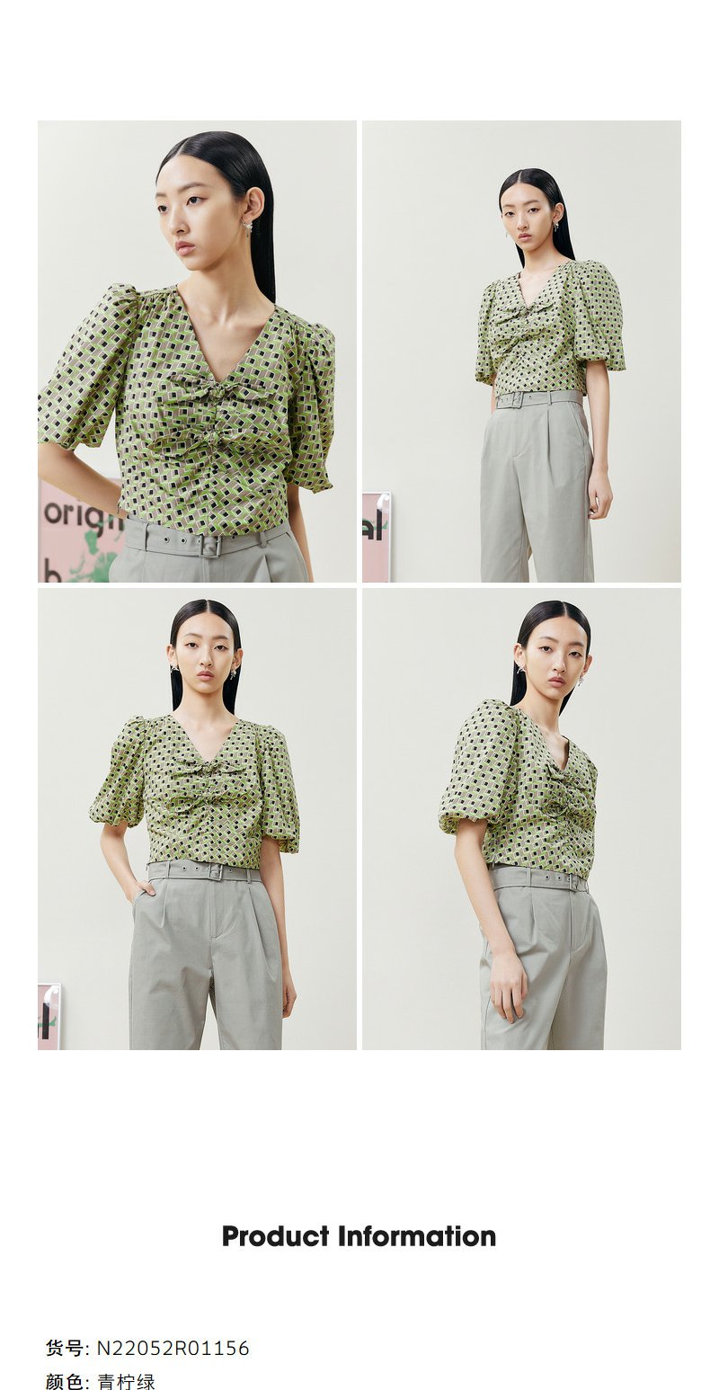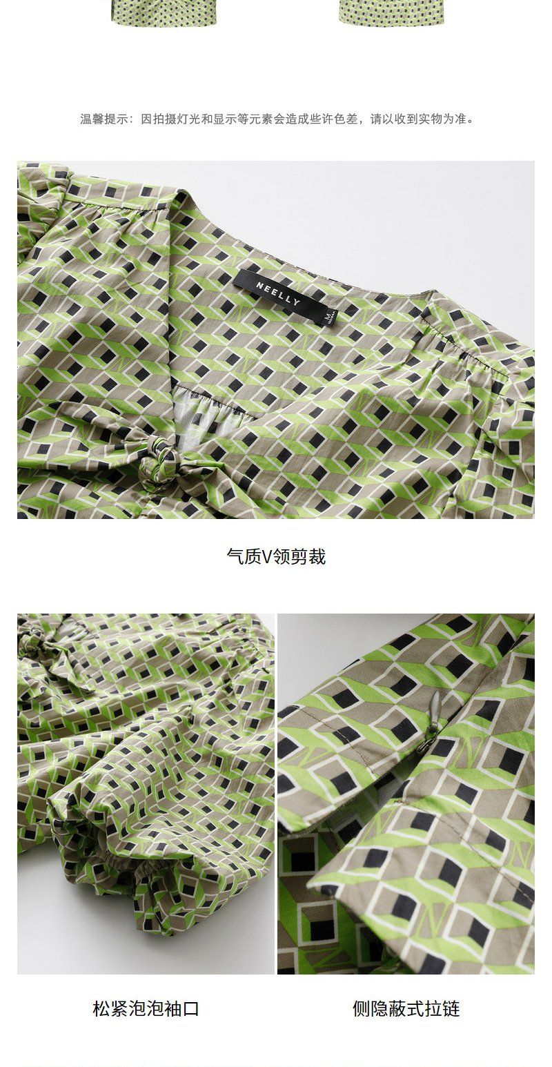 NEELLY纳俪商场同款V领泡泡袖衬衫女胸前蝴蝶结显瘦套头上衣百搭N22052R01156