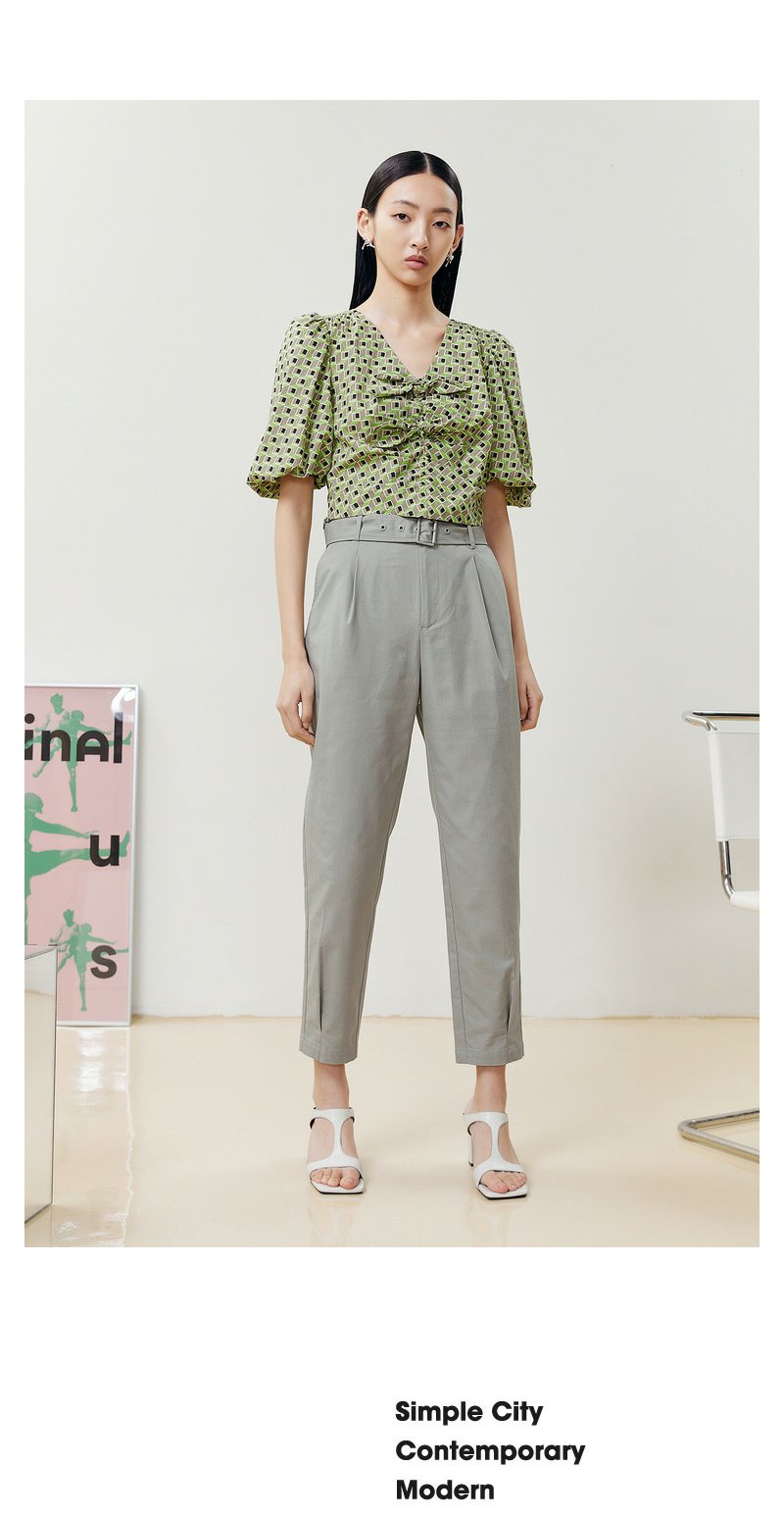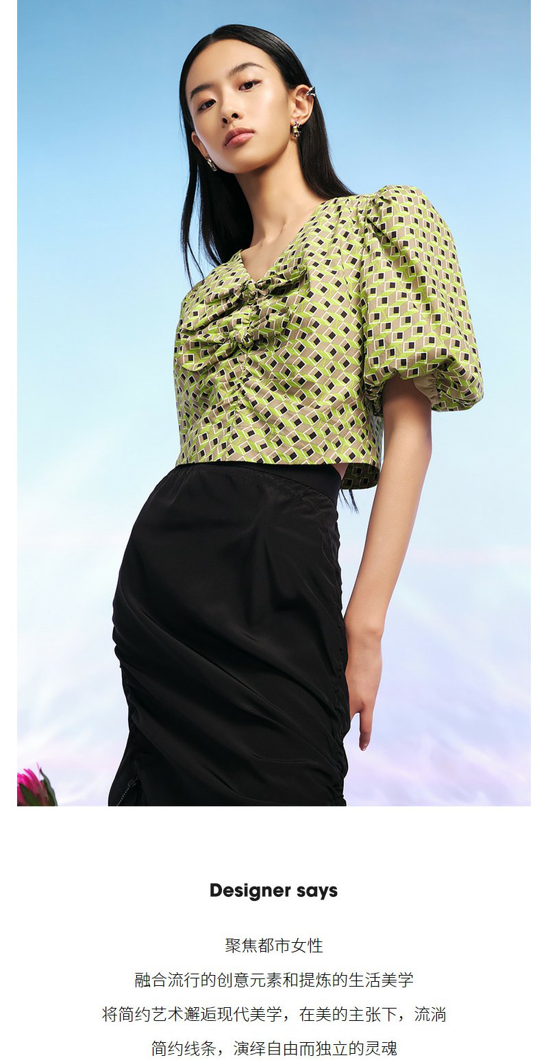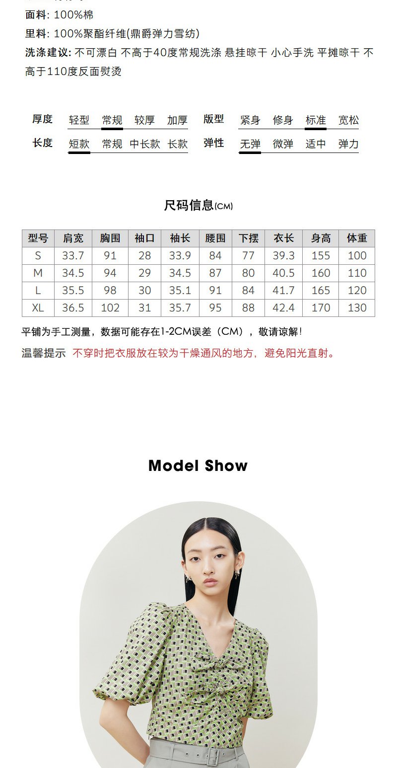 NEELLY纳俪商场同款V领泡泡袖衬衫女胸前蝴蝶结显瘦套头上衣百搭N22052R01156