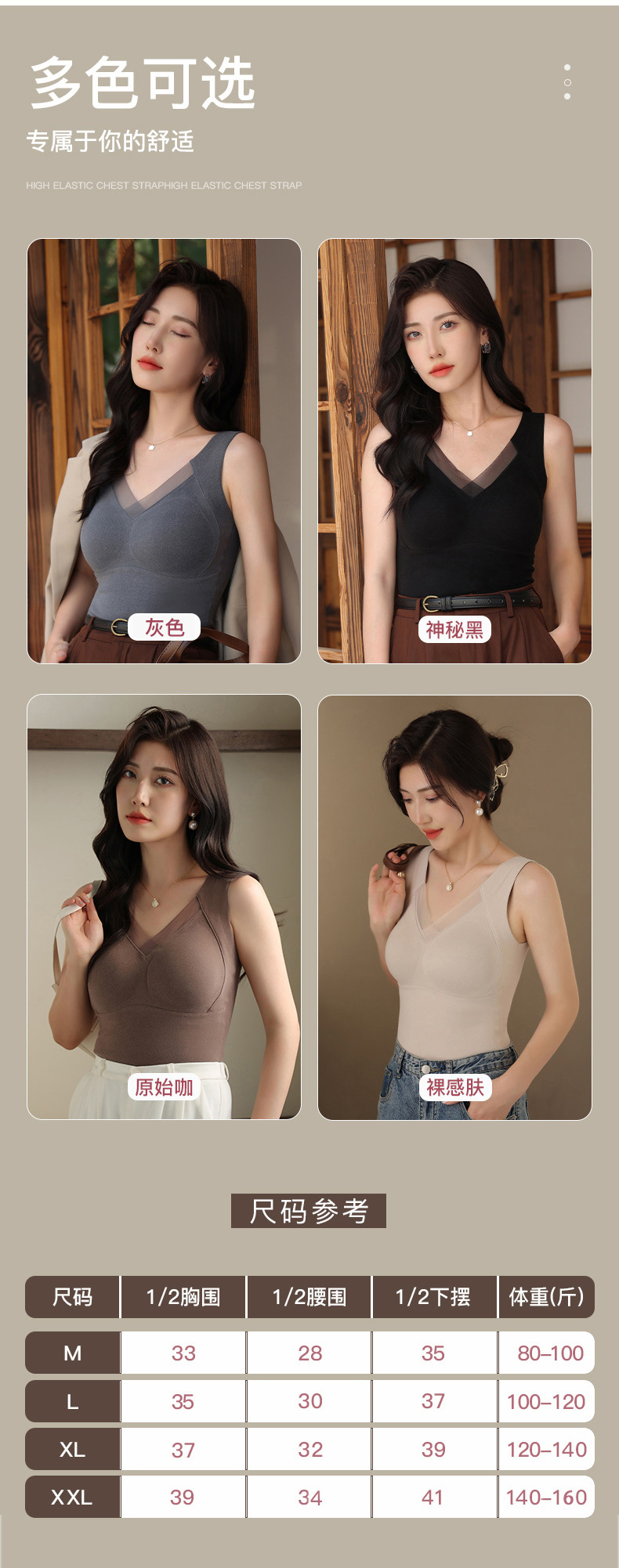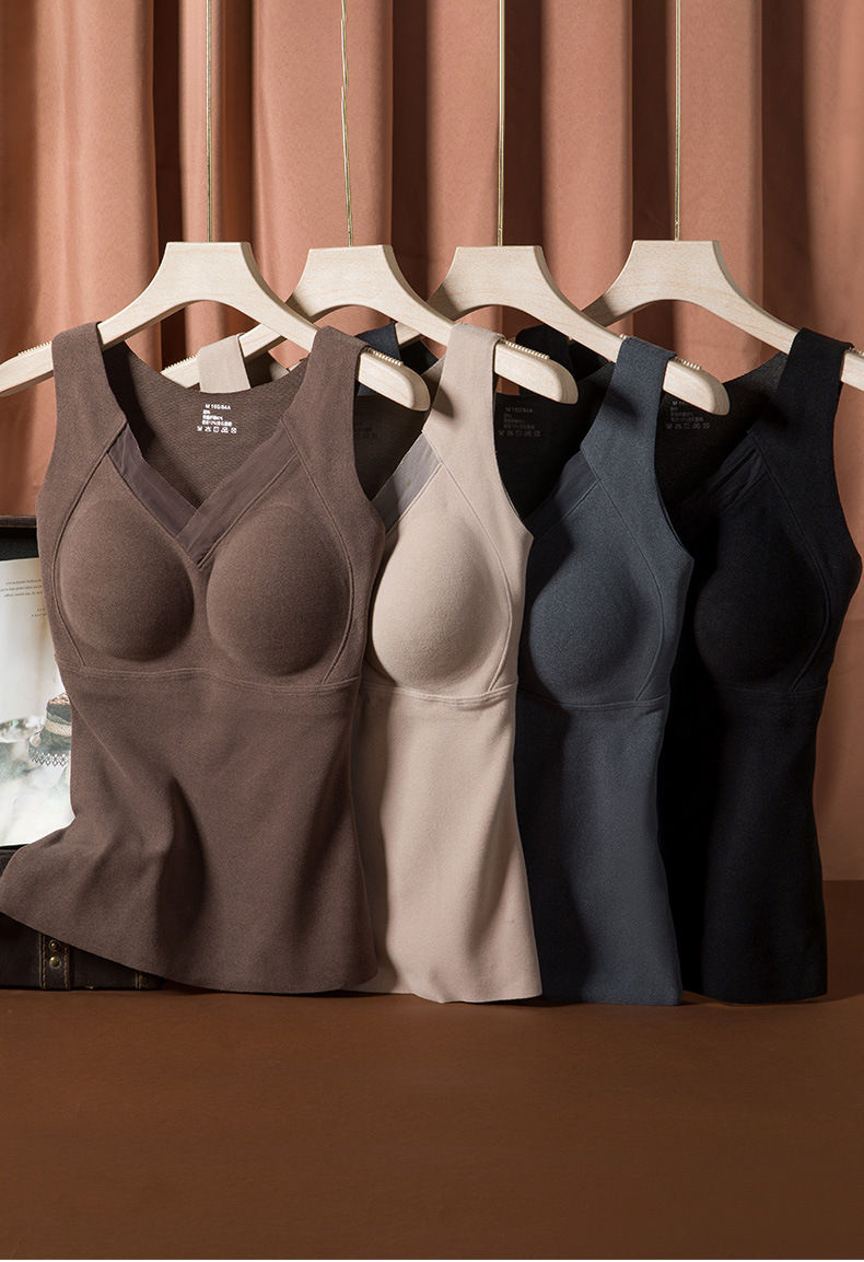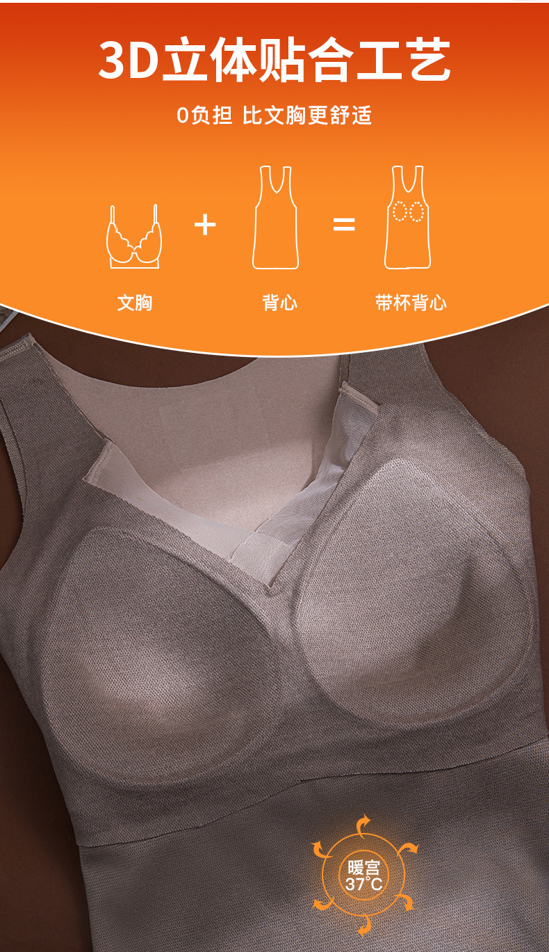 3D石墨烯秋冬【无痕保暖背心】固定杯免文胸 美背自发热内衣女可机洗