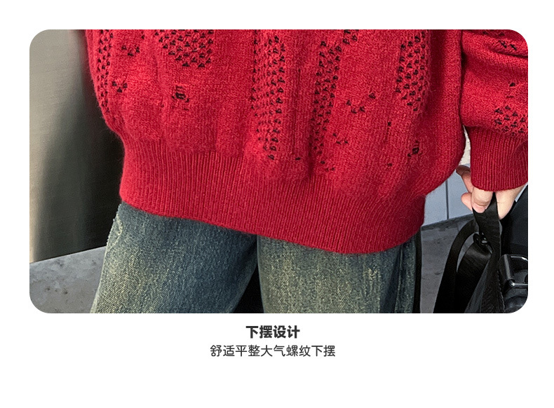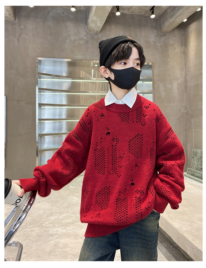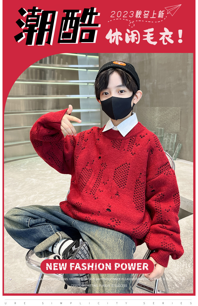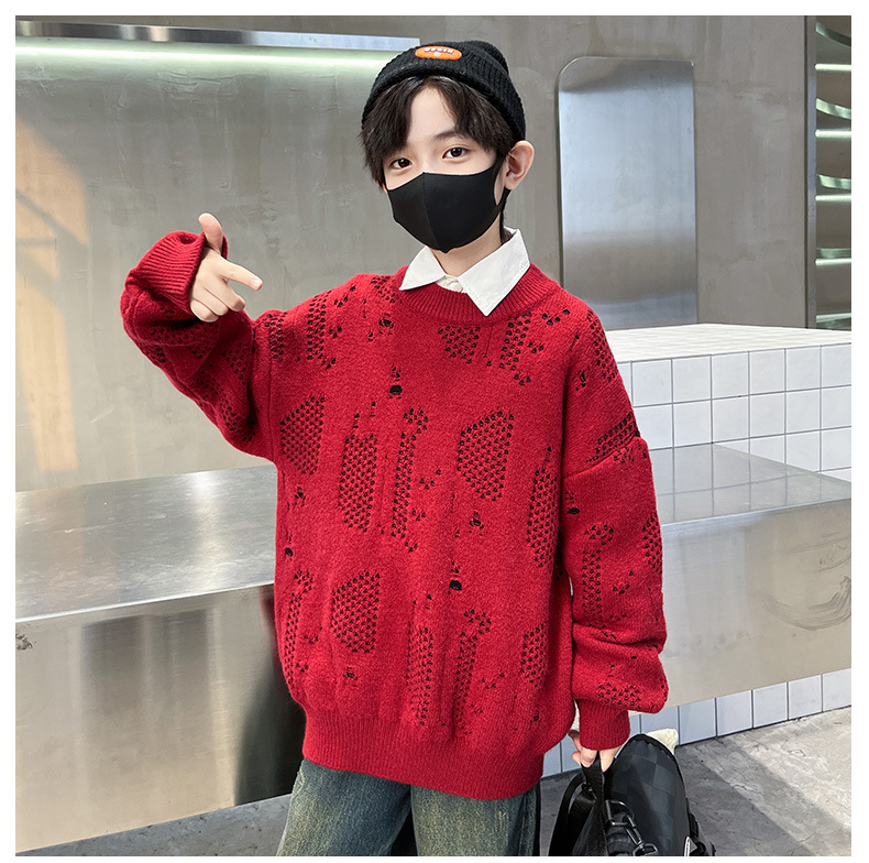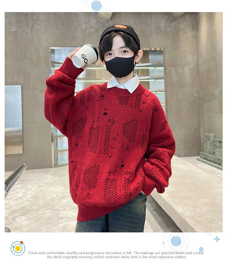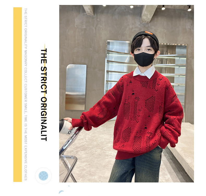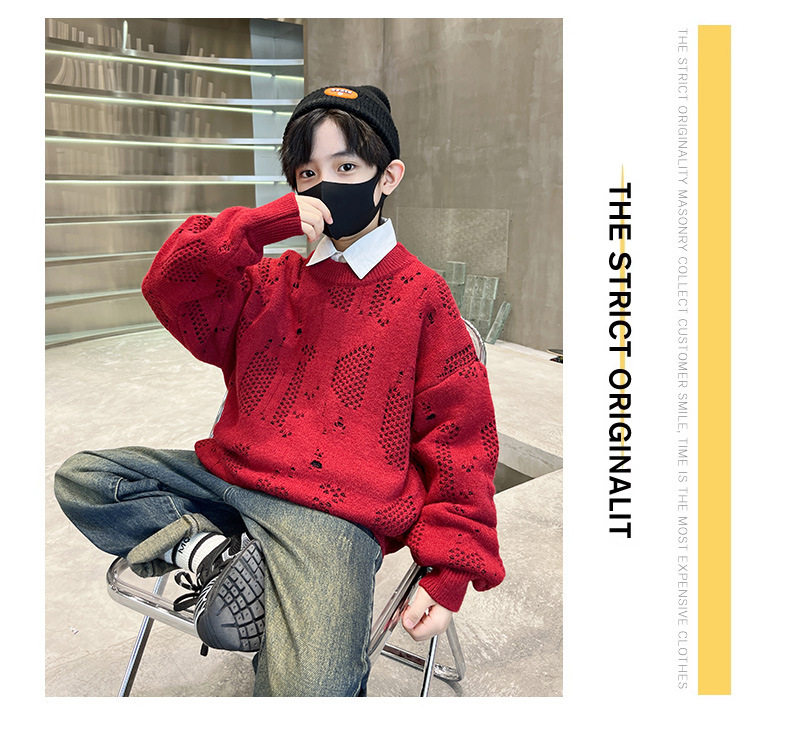 【宽松版型,随性自然!】男童加厚毛衣2023新款,秋冬款中大童儿童男孩冬季红色打底衫冬装潮,展现了现代儿童时尚潮流的风采,无论是日常穿搭还是参加各种场合!