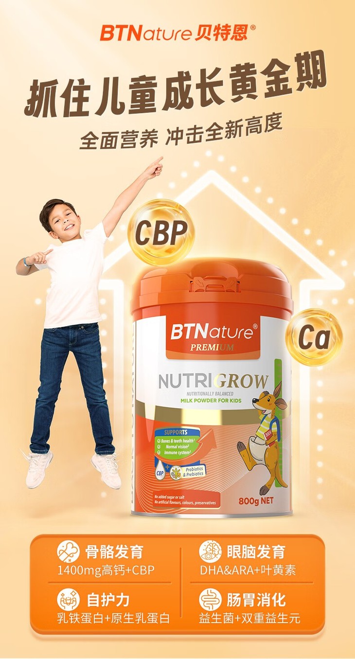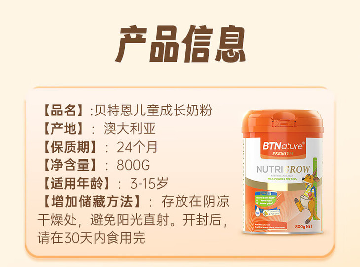 【保税】BTNature贝特恩儿童成长奶粉800g/罐