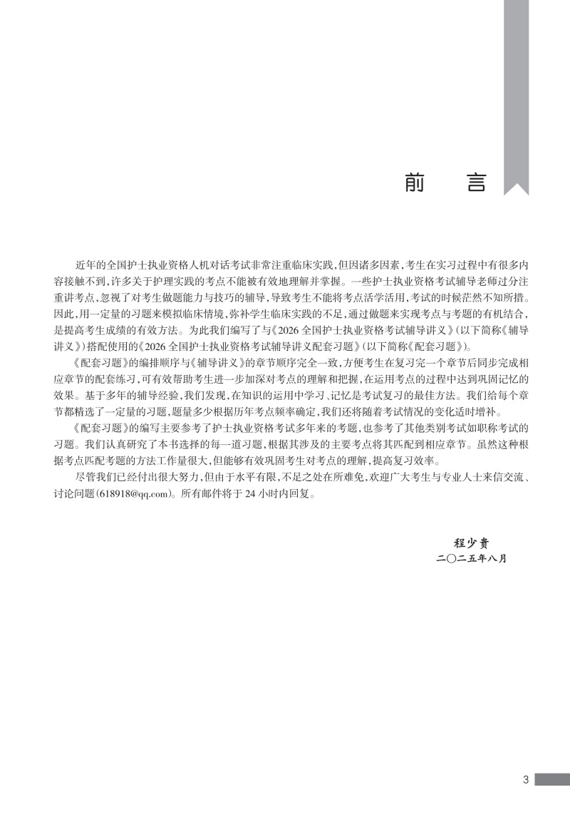 2026全国护士执业资格考试辅导讲义配套习题 程少贵 齐向飞 主编 考试用书 2026护士考试 9787117385831人民卫生出版社