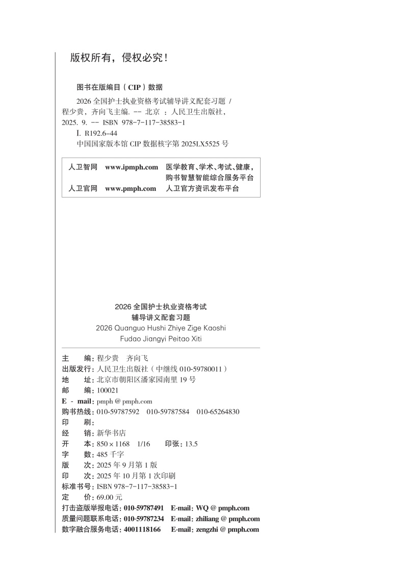 书名:2026全国护士执业资格考试辅导讲义配套习题