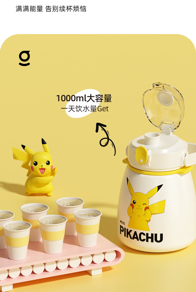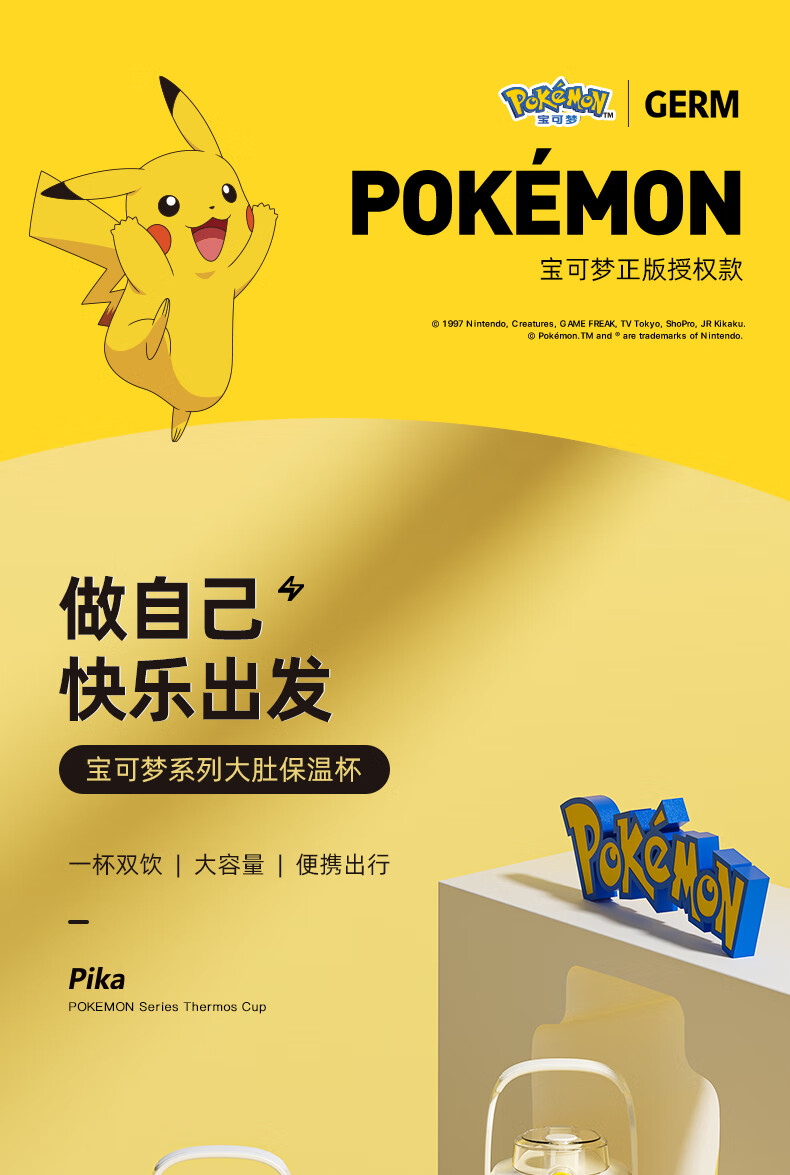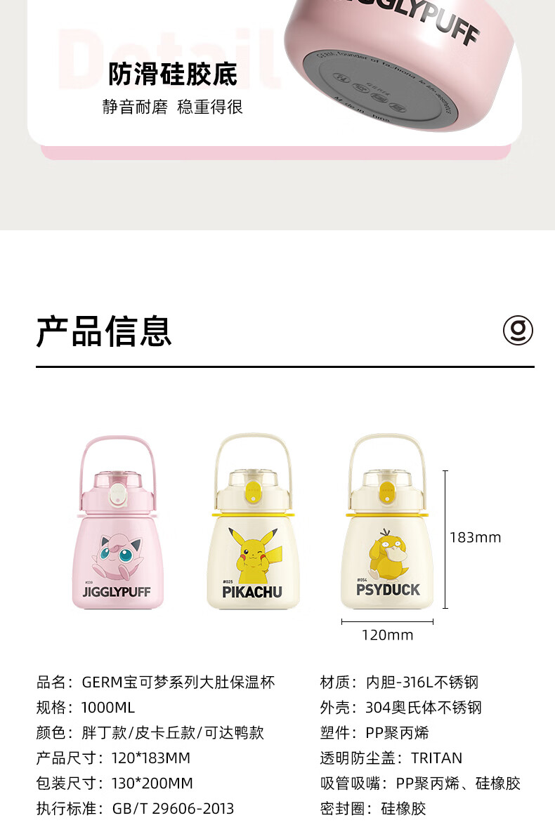 格沵(germ)宝可梦联名款大肚保温杯大容量小学生出游便携水杯1000ML
