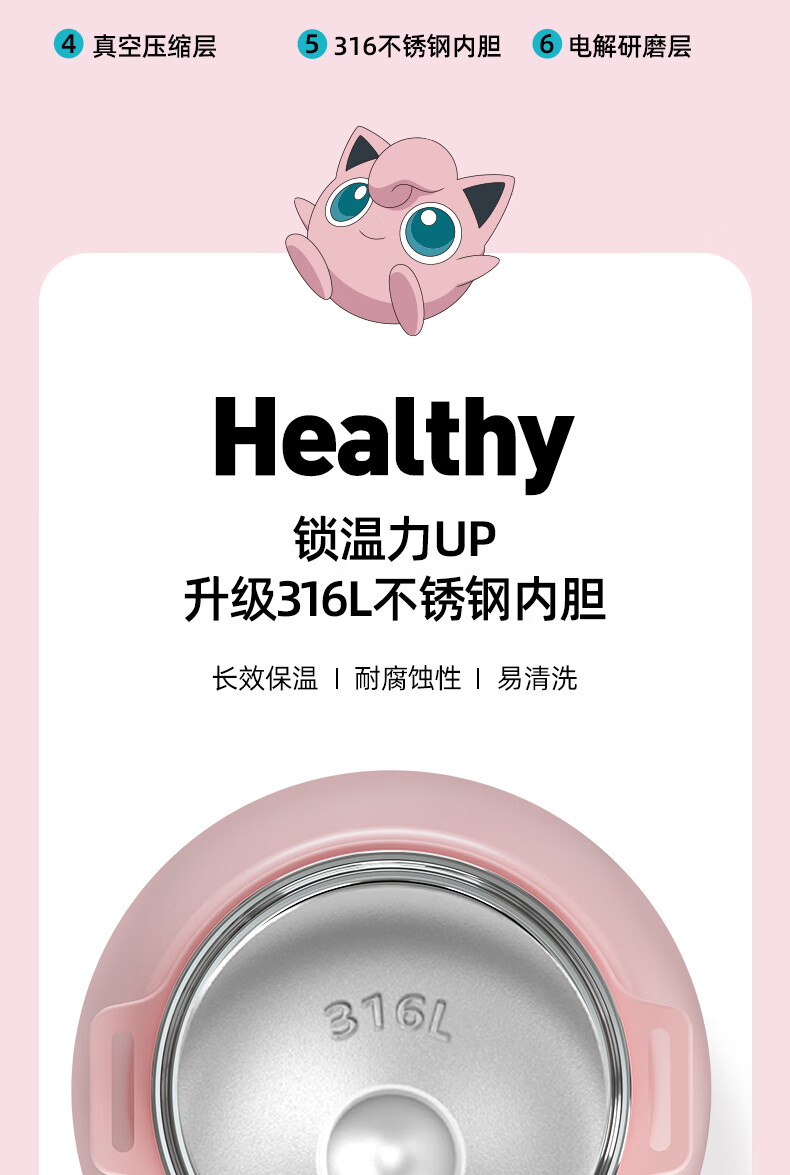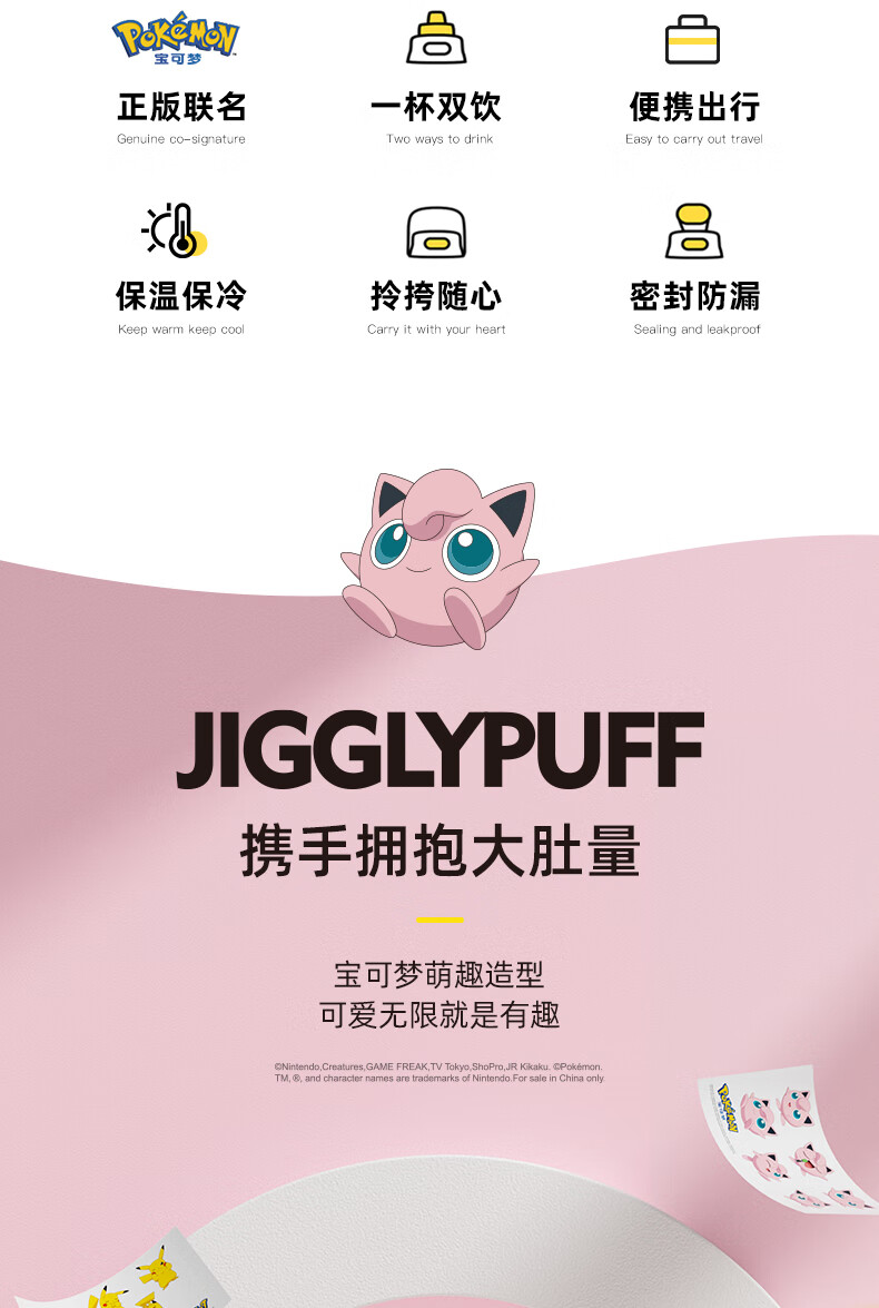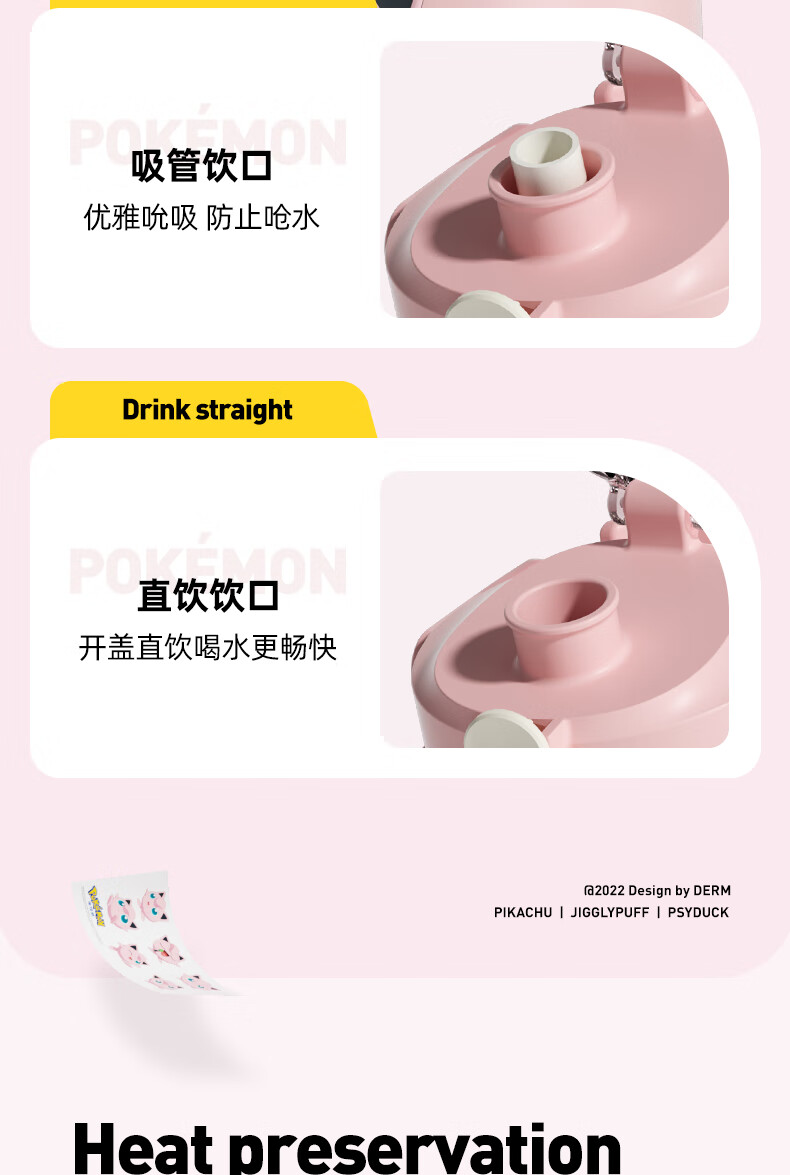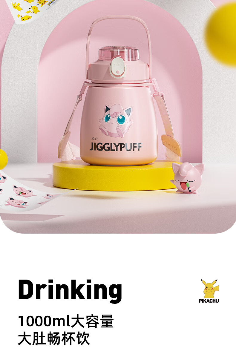 格沵(germ)宝可梦联名款大肚保温杯大容量小学生出游便携水杯1000ML