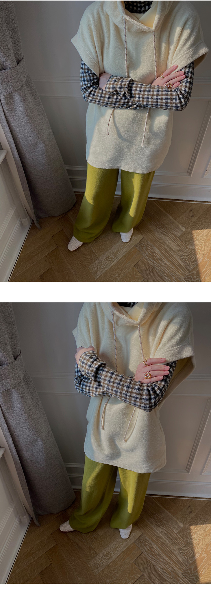 HIDEMI色织格纹厚款针织中高领弹力打底上衣