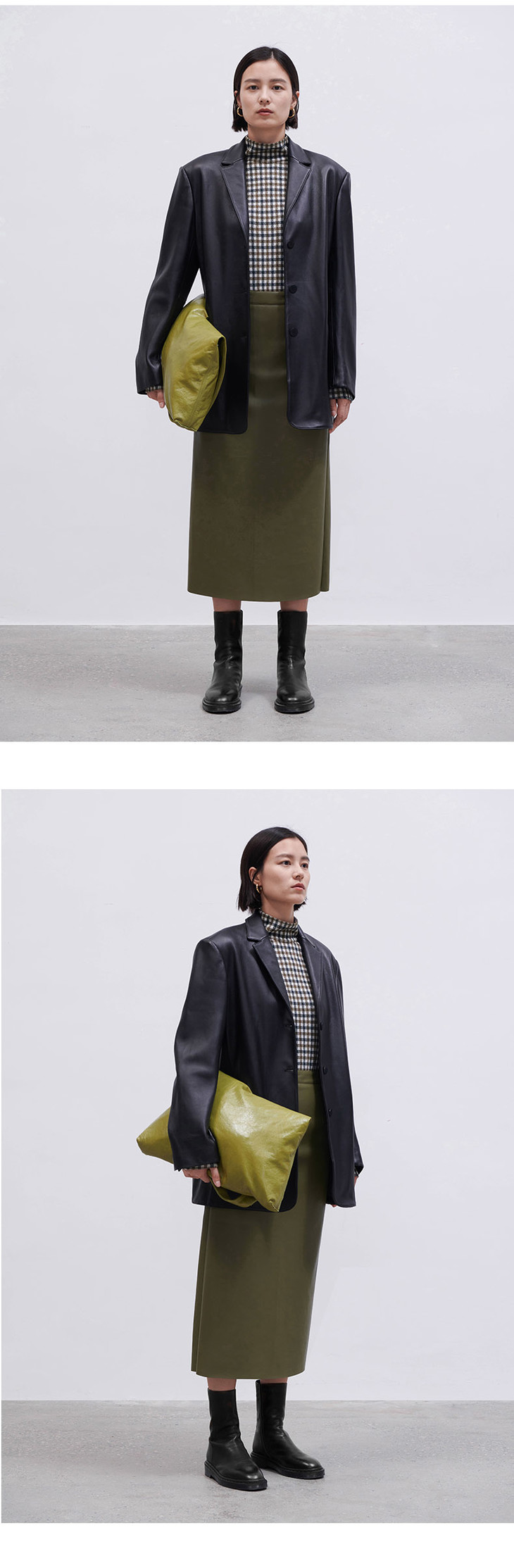 HIDEMI黑色小羊皮廓形西装