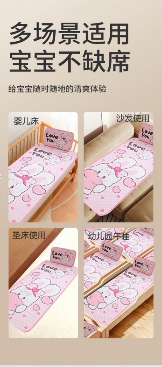 宝宝凉席 多场景使用 可以用作家里的沙发垫 婴儿床 还有宝宝床垫,幼儿园的小床, 简直不要太贴心!