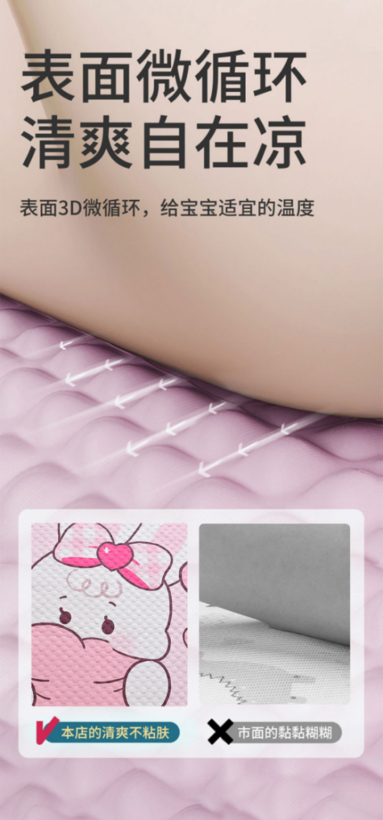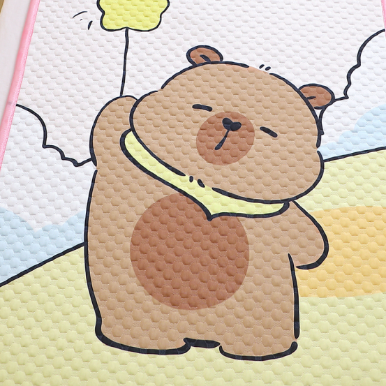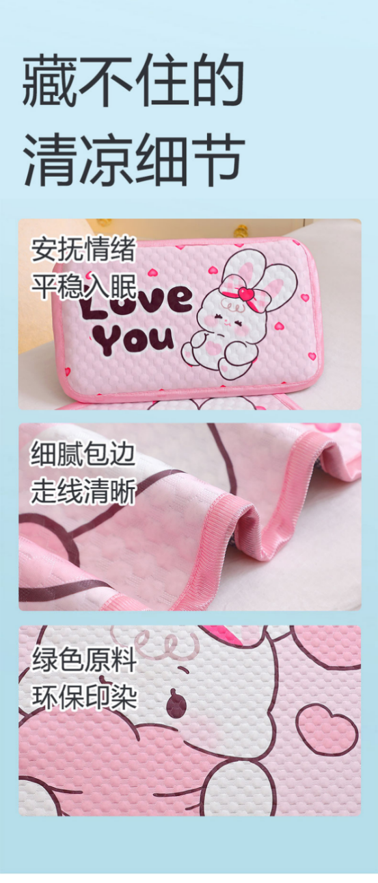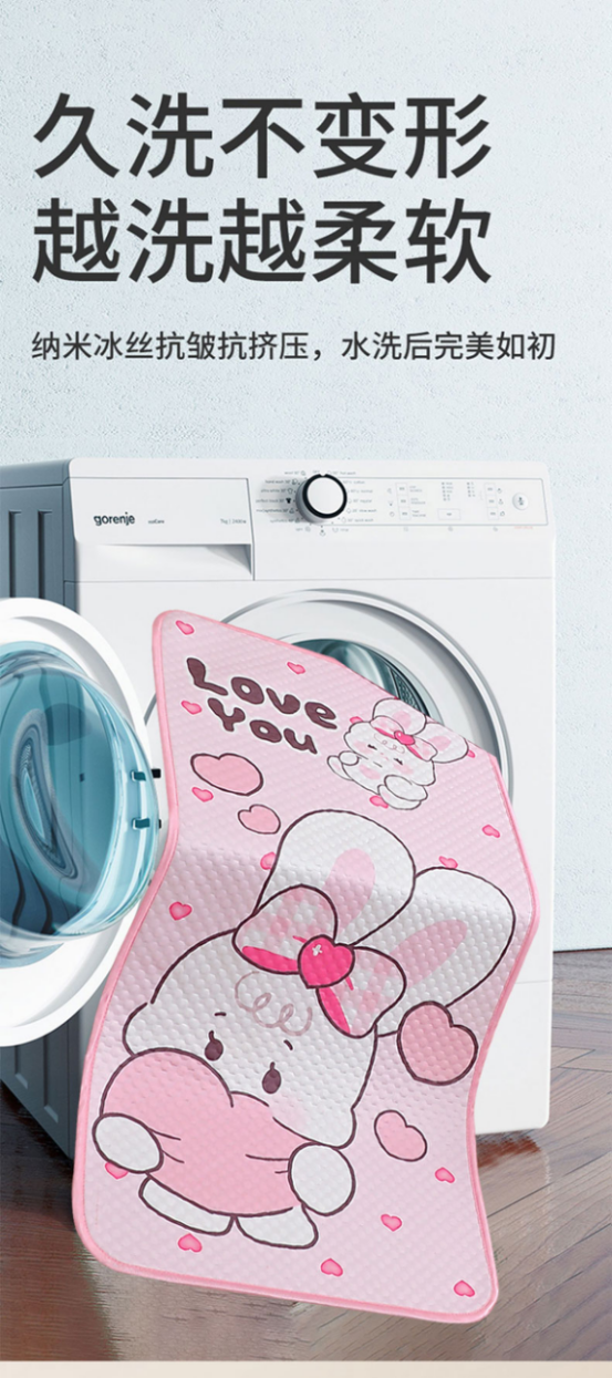 立体提花的一体成型织造工艺,简约的设计,加上可爱的卡通的图案,给你的夏日增添一抹清凉与可爱。 宝宝的最爱,而且这种是软凉席,可以直接扔进洗衣机里面,是洗不坏的。 洗完直接拿出来自然晾晒即可。(不可烘干哦)
