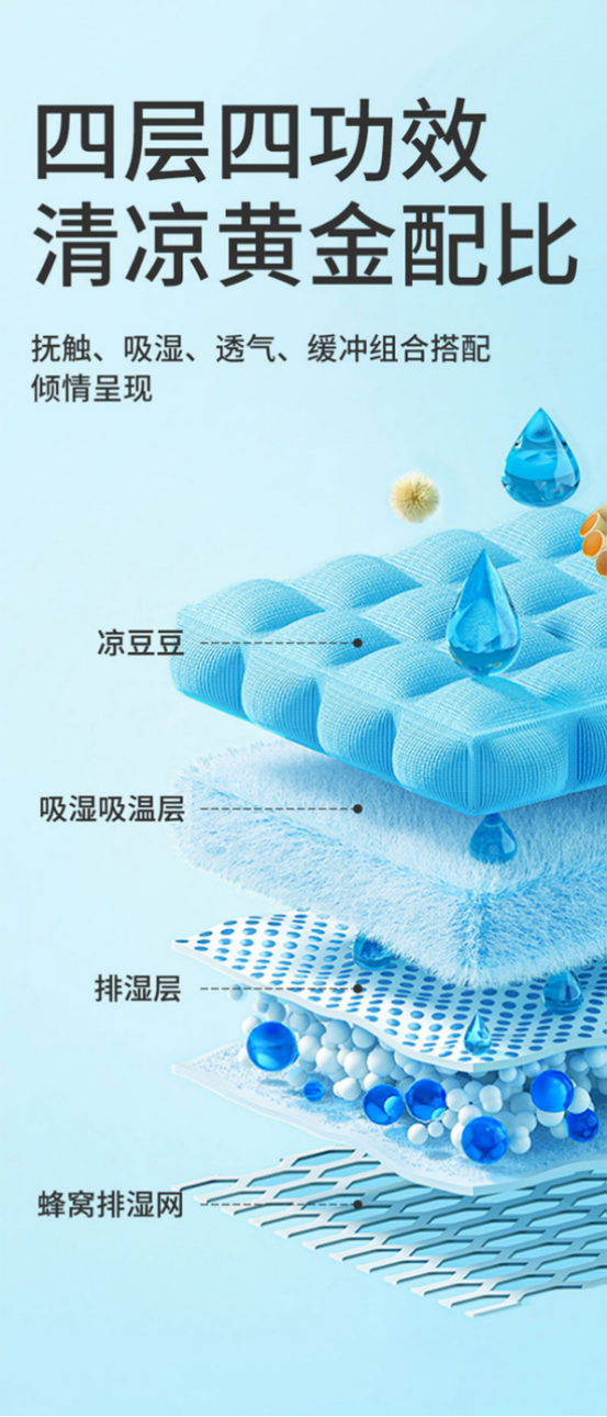 它凉爽却不冰冷,质地Q弹又柔软,这种极致的舒适体验,只有亲身体验过才知道有多棒! 只要一躺上去,它就能帮你舒缓全身肌肉的紧张,有效减轻精神压力,让你更快进入梦乡。
