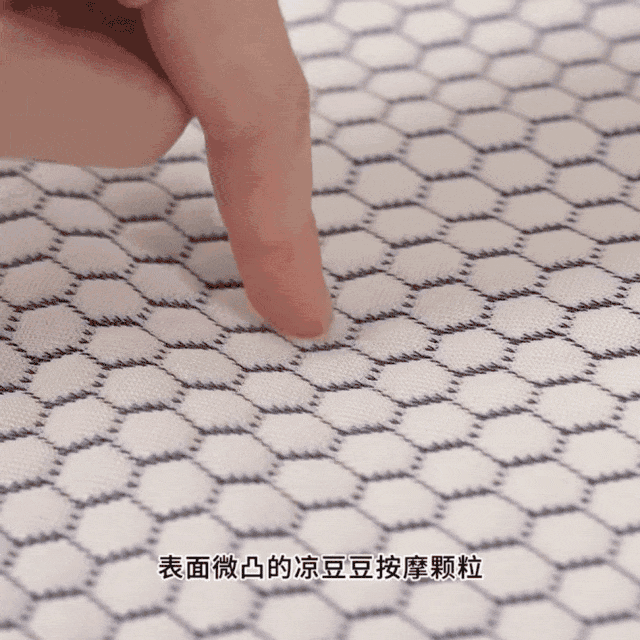这些冰豆豆可不只是带来凉感这么简单哦。每一颗冰豆豆都像是一个小小的按摩师,当你躺在上面,它们会轻柔地按摩你的肌肤。 在你疲惫了一天后,往这凉席上一躺,冰豆豆们就开始发挥作用啦, 它们轻轻地刺激着你的肌肤,缓解你全身的疲劳,让你在睡眠中享受一场极致的舒适体验。 这种独特的触感,带来了多层次的享受,让睡觉不再只是简单的休息,而是一场全身心的放松盛宴。