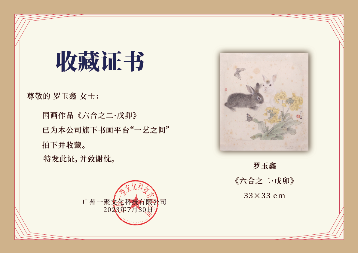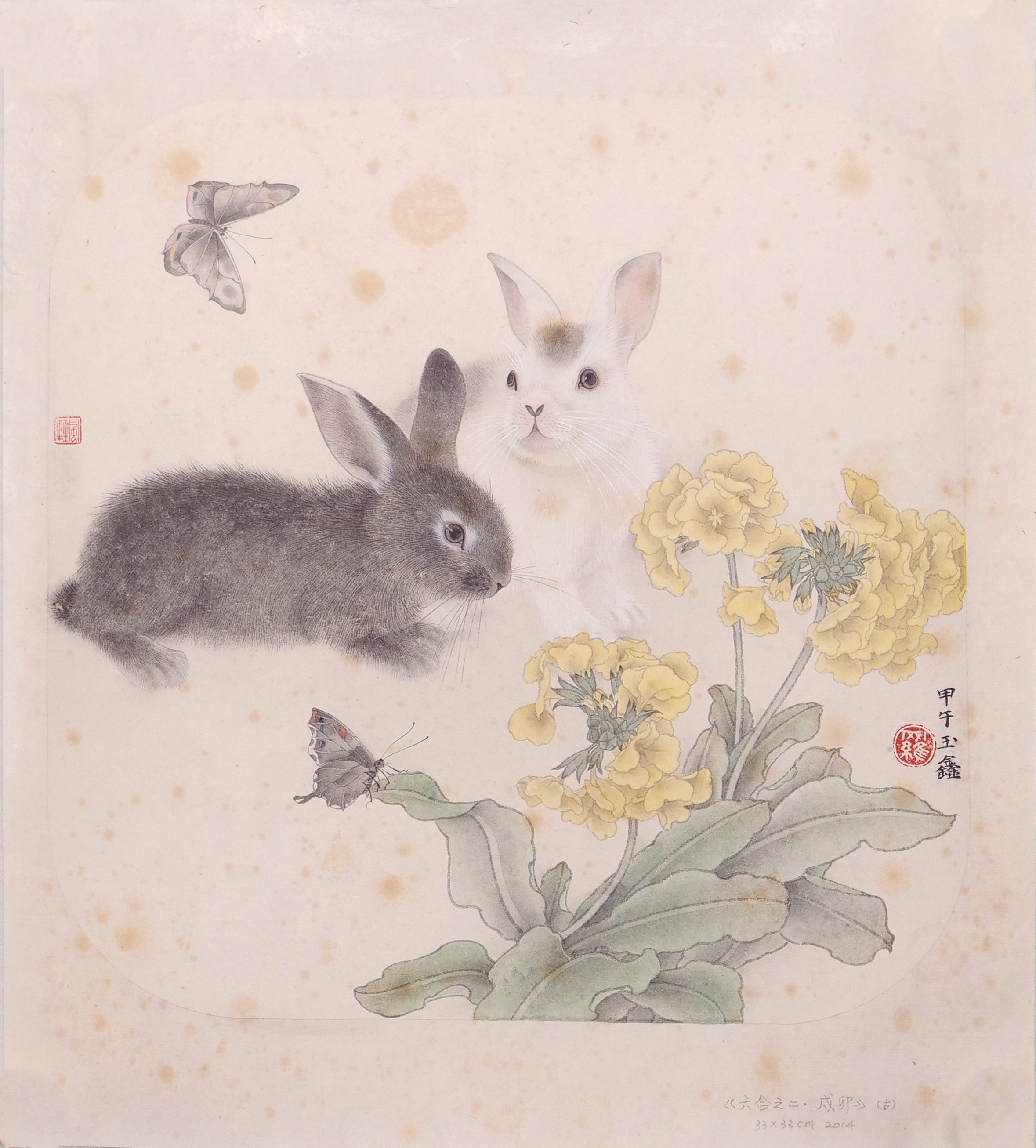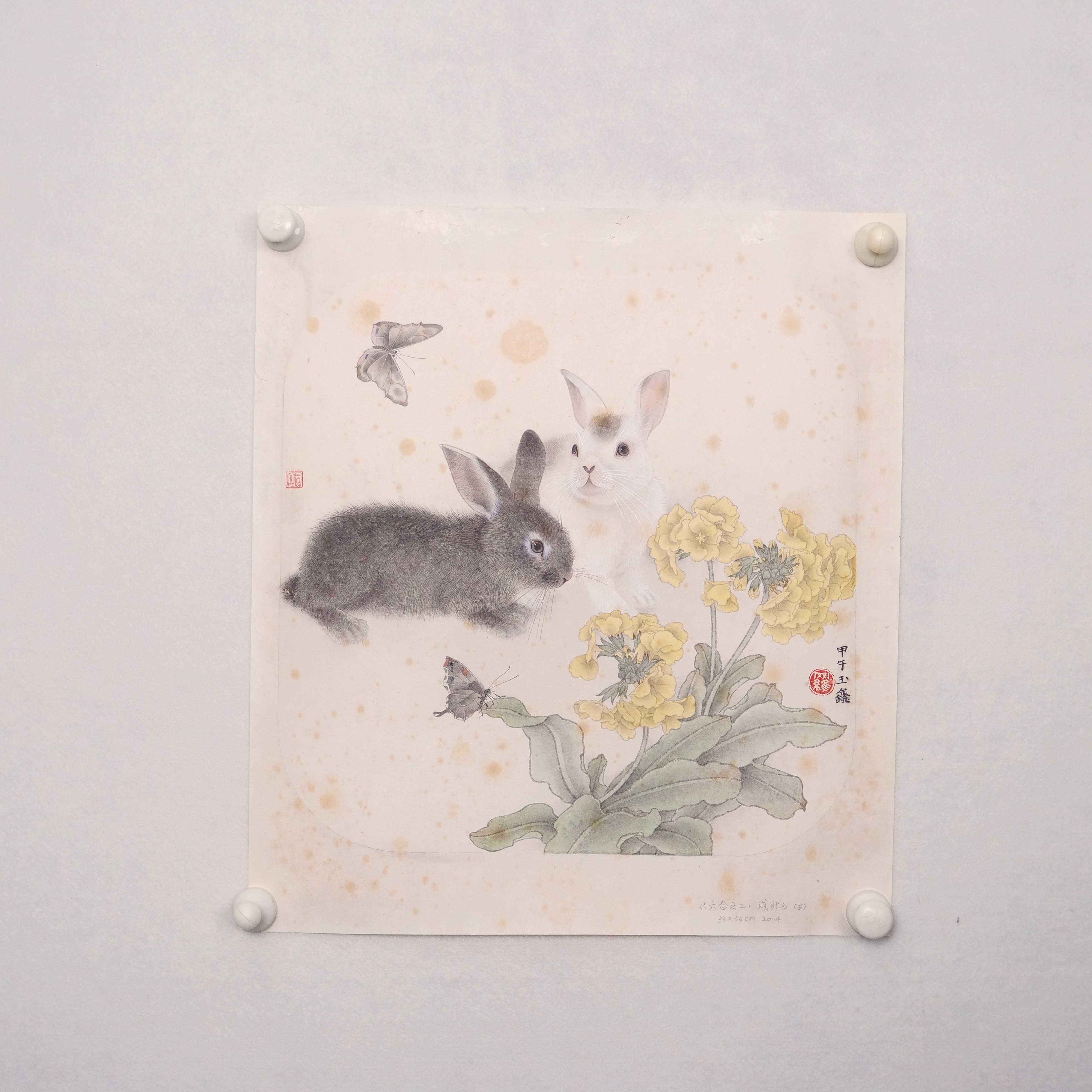 罗玉鑫国画33x33CM《六合之二·戊卯(兔)》一1平尺手绘纸本工笔国画作品[原作编号GH0391]