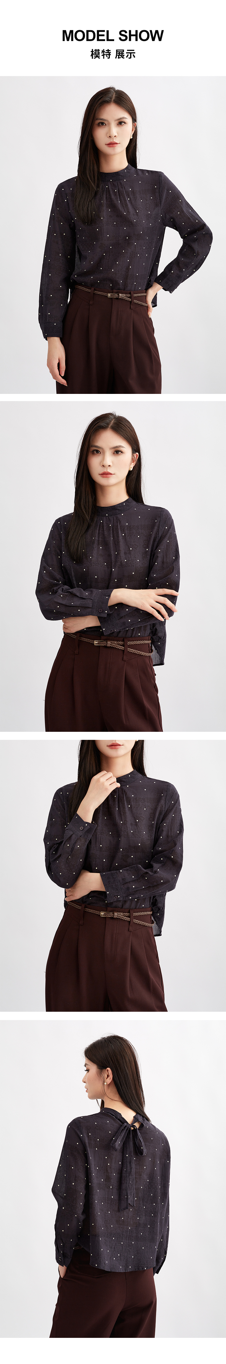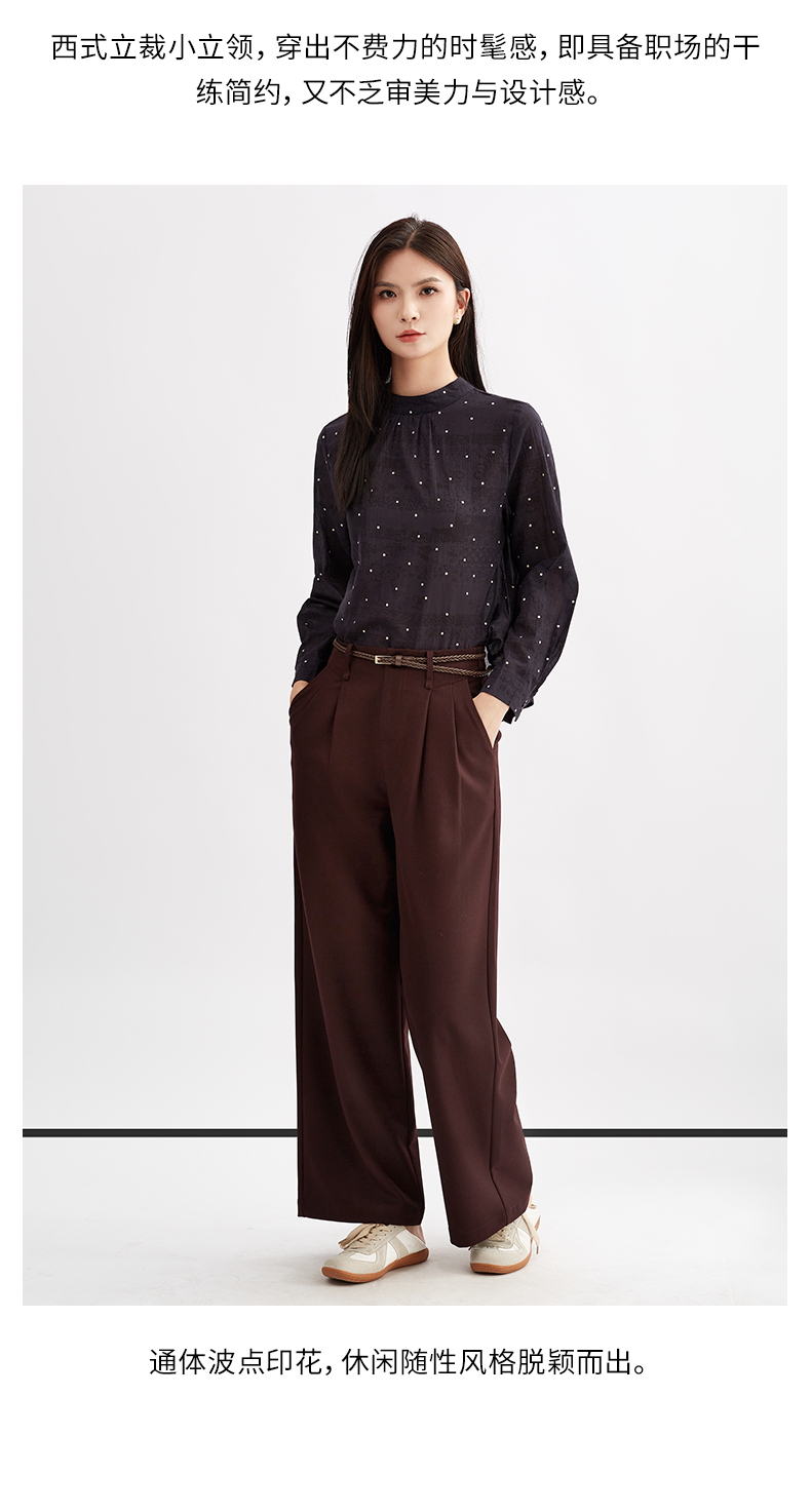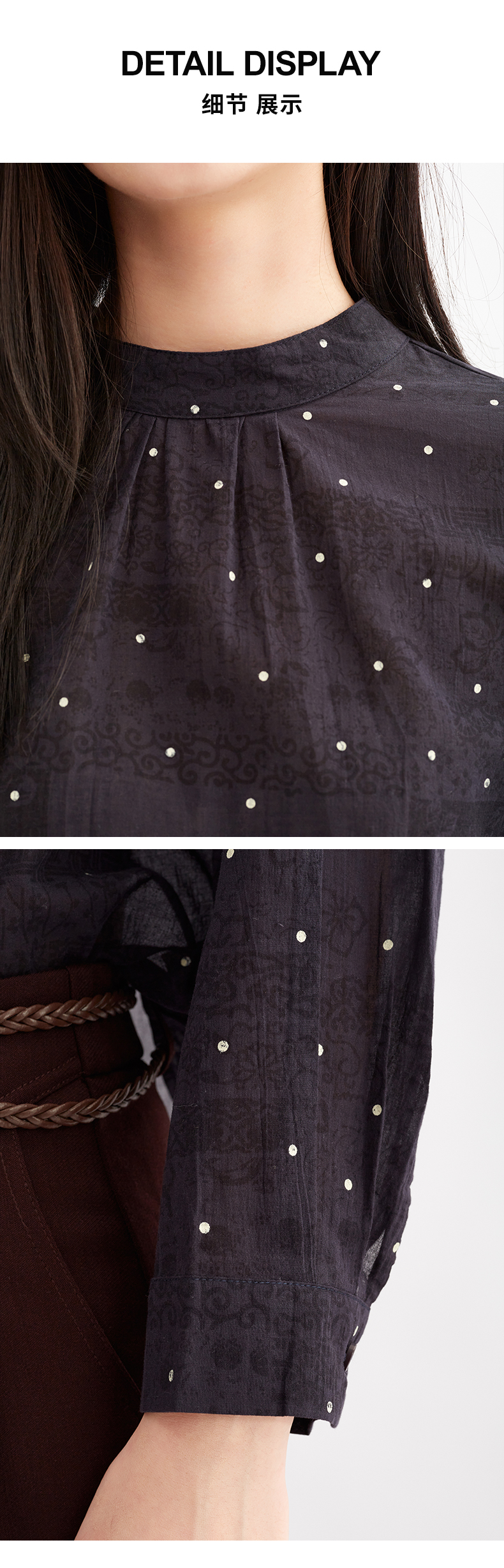 【休闲随性】阿菁娜都市浪漫波点印花小立领衬衫F30Q202008